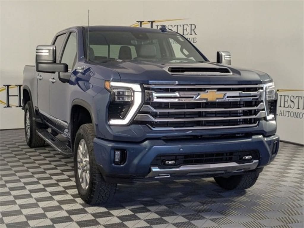 Lakeshore Blue Metallic 2024 Chevrolet Silverado 2500HD High Country 4WD 10-Speed Automatic Duramax 6.6L V8 Turbodiesel*GM CERTIFIED*, ONE OWNER ACCIDENT FREE CARFAX, 4WD/AWD, POWER SUNROOF/MOONROOF, APPLE CARPLAY/ANDROID AUTO, HEATED/VENTILATED SEATS, REAR BACKUP CAMERA, Bluetooth® HANDS FREE, NAVIGATION/GPS, LEATHER, PASSED OUR RIGOROUS SERVICE INSPECTION, FAST AND EASY FINANCING, ***SAVE MORE WHEN YOU TRADE WITH HIESTER CHEVROLET!***, GM Certified Certified, 10-Speed Automatic, 4WD, Jet Black Leather, 120-Volt Bed Mounted Power Outlet, 120-Volt Interior Power Outlet, 15 Diagonal Multicolor Head-Up Display, 170 Amp Alternator, 6 Rectangular Chromed Tubular Assist Steps, Adaptive Cruise Control, Auto-Dimming Inside Rear-View Mirror, Bed View Camera w/2 Trailer Camera Provisions, Black Chevytec Spray-On Bedliner, Bluetooth® For Phone, Chevrolet Connected Access Capable, Chrome Door Handles, Chrome Mirror Caps, Color-Keyed Carpeting Floor Covering, Compass, Deep-Tinted Glass, Electric Rear-Window Defogger, Electronic Cruise Control w/Set & Resume Speed, Front Carpeted Floor Mats, Front Chrome Recovery Hooks, Front LED Fog Lamps, Front Rain-Sensing Wipers, Heated 2nd Row Outboard Seats, Heated Steering Wheel, Hill Descent Control, Hitch Guidance w/Hitch View, In-Vehicle Trailering App System, Keyless Open & Start, LED Cargo Area Lighting, Manual Tilt & Telescoping Steering Column, Off-Road Suspension, OnStar & Chevrolet Connected Services Capable, Polished Exhaust Tip, Power Door Locks, Power Front Windows w/Driver Express Up/Down, Power Front Windows w/Passenger Express Up/Down, Power Rear Windows w/Express Down, Power Sliding Rear Window w/Defogger, Preferred Equipment Group 3LZ, Push Button Start, Pwr Up/Down Tailgate Function w/Pwr Lock & Release, Rear Camera Mirror, Rear Carpeted Floor Mats, Rear Cross Traffic Alert, Rear Wheelhouse Liners, Remote Vehicle Starter System, SiriusXM w/360L, Standard Tailgate, Steering Wheel Audio Controls, Suspension Package, Technology Package, Trailer Camera Provisions, Ultrasonic Front & Rear Park Assist, Unauthorized Entry Theft-Deterrent System, Universal Home Remote, Up-Level Rear Seat w/Storage Package, Wi-Fi Hotspot Capable, Wireless Charging, Wireless Phone Projection, Wrapped Steering Wheel, Z71 Off-Road Package, 10-Way Power Driver Seat Adjuster w/Lumbar, 10-Way Power Passenger Seat Adjuster w/Lumbar, 220 Amp Alternator, 4-Wheel Disc Brakes, 7 Speakers, 720 Cold-Cranking Amps Heavy-Duty Battery, ABS brakes, Air Conditioning, Alloy wheels, AM/FM radio: SiriusXM with 360L, Apple CarPlay/Android Auto, Auto High-beam Headlights, Auto-dimming door mirrors, Auto-dimming Rear-View mirror, Automatic temperature control, Body-Color Front Bumper, Body-Color Rear Bumper, Bodyside moldings, BOSE Premium 7-Speaker Sound System, Brake assist, Bumpers: body-color, Delay-off headlights, Driver door bin, Driver Memory, Driver vanity mirror, Dual front impact airbags, Dual front side impact airbags, Durabed Pickup Bed, Electronic Stability Control, Engine Block Heater, Exhaust Brake, EZ Lift Power Lock & Release Tailgate, Floor-Mounted Center Console, Front anti-roll bar, Front Bucket Seats, Front Center Armrest, Front dual zone A/C, Front fog lights, Front reading lights, Front wheel independent suspension, Fully automatic headlights, Garage door transmitter, Genuine wood console insert, Genuine wood dashboard insert, Genuine wood door panel insert, Heated door mirrors, Heated Driver & Front Outboard Passenger Seating, Heated front seats, Heated rear seats, Heated steering wheel, Illuminated entry, Low tire pressure warning, Memory seat, Multi-Flex Tailgate, Occupant sensing airbag, Outside temperature display, Overhead airbag, Overhead console, Panic alarm, Passenger door bin, Passenger vanity mirror, Perforated Leather Seat Trim, Power door mirrors, Power driver seat, Power passenger seat, Power steering, Power Sunroof, Power windows, Premium audio system: Chevrolet Infotainment 3 Premiu