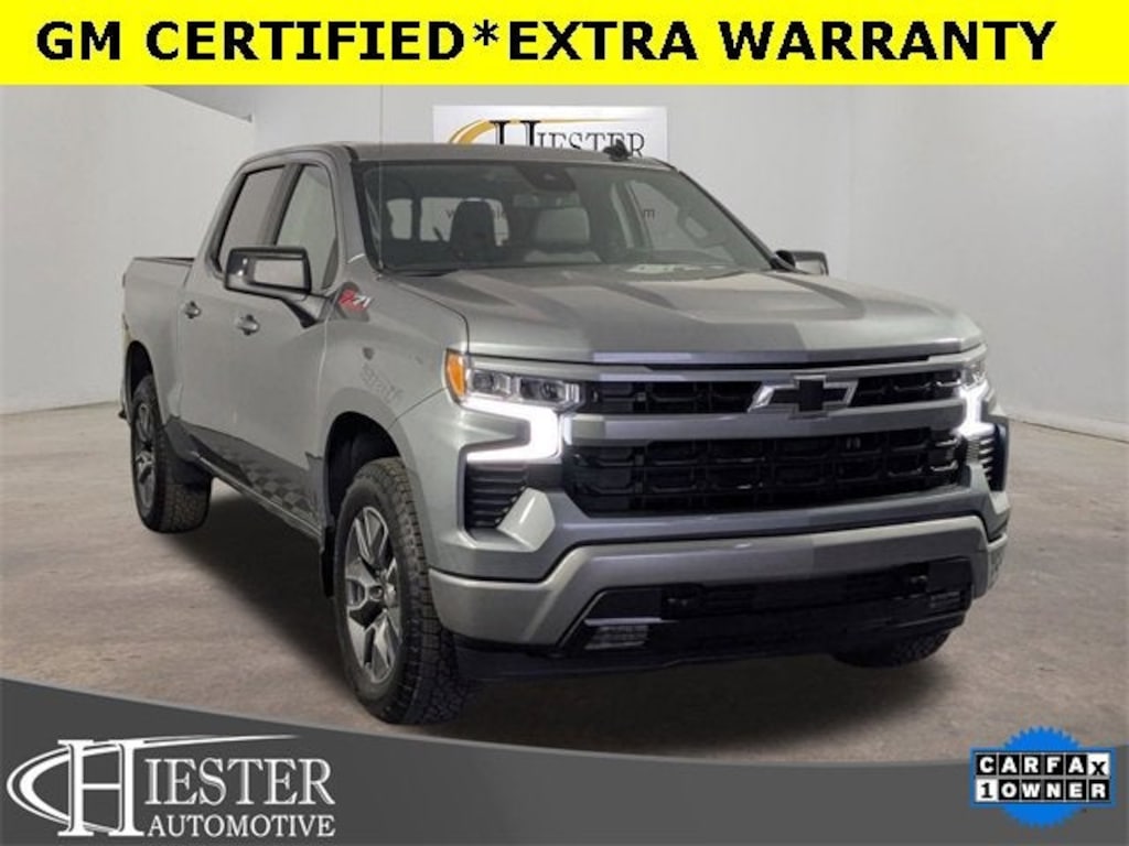Sterling Gray Metallic 2025 Chevrolet Silverado 1500 RST 4WD 8-Speed Automatic EcoTec3 5.3L V8*GM CERTIFIED*, ONE OWNER ACCIDENT FREE CARFAX, LIFETIME ENGINE GUARANTEE, 4WD/AWD, POWER SUNROOF/MOONROOF, THIRD ROW SEATING, APPLE CARPLAY/ANDROID AUTO, HEATED SEATS, REAR BACKUP CAMERA, Bluetooth® HANDS FREE, NAVIGATION/GPS, LEATHER, PASSED OUR RIGOROUS SERVICE INSPECTION, FAST AND EASY FINANCING, ***SAVE MORE WHEN YOU TRADE WITH HIESTER CHEVROLET!***, GM Certified Certified, 8-Speed Automatic, 4WD, Black Leather, 10-Way Power Driver Seat w/Lumbar, 12.3 Multicolor Reconfigurable Digital Display, 120-Volt Bed Mounted Power Outlet, 120-Volt Interior Power Outlet, 6-Speaker Audio System, All Star Edition Plus, All-Star Edition, Auto-Locking Rear Differential, Bluetooth® For Phone, Color-Keyed Carpeting Floor Covering, Convenience Package, Convenience Package II, Deep-Tinted Glass, Dual Exhaust w/Polished Outlets, Dual Rear USB Ports (Charge Only), Dual-Zone Automatic Climate Control, Electric Rear-Window Defogger, Electronic Cruise Control, EZ Lift Power Lock & Release Tailgate, Front Frame-Mounted Black Recovery Hooks, Front LED Fog Lamps, Front Rubberized Vinyl Floor Mats, HD Rear Vision Camera, Heated Driver & Front Outboard Passenger Seats, Heated Power-Adjustable Outside Mirrors, Heated Steering Wheel, Heavy-Duty Air Filter, High Gloss Black Mirror Caps, Hill Descent Control, Hitch Guidance, Hitch Guidance w/Hitch View, In-Vehicle Trailering System App, Inside Rear-View Mirror w/Tilt, Integrated Trailer Brake Controller, Keyless Open & Start, Leather Package, Leather-Appointed Front Seat Trim, LED Cargo Area Lighting, Manual Tilt/Telescoping Steering Column, Off-Road Suspension, OnStar Services Capable, Power Front Windows w/Driver Express Up/Down, Power Front Windows w/Passenger Express Down, Power Rear Windows w/Express Down, Power Sliding Rear Window w/Rear Defogger, Preferred Equipment Group 1SP, Premium Bose 7-Speaker Sound System, Rear 60/40 Folding Bench Seat (Folds Up), Rear Rubberized-Vinyl Floor Mats, Remote Vehicle Starter System, SiriusXM w/360L Trial Subscription, Standard Suspension Package, Standard Tailgate, Steering Wheel Audio Controls, Teen Driver, Theft Deterrent System (Unauthorized Entry), Tire Pressure Monitoring System, Trailering Package, Universal Home Remote, Up-Level Rear Seat w/Storage Package, Wheels: 20 x 9 Painted Aluminum, Wi-Fi Hot Spot Capable, Wrapped Steering Wheel, Z71 Off-Road Package, 170 Amp Alternator, 2 USB Data Ports, 220 Amp Alternator, 3.23 Rear Axle Ratio, 4-Wheel Disc Brakes, 40/20/40 Front Split-Bench Seat, 6 Speakers, ABS brakes, Air Conditioning, Alloy wheels, AM/FM radio: SiriusXM with 360L, Apple CarPlay/Android Auto, Auto High-beam Headlights, Automatic Emergency Braking, Automatic temperature control, Auxiliary External Transmission Oil Cooler, Brake assist, Bumpers: body-color, Cloth Seat Trim, Compass, Delay-off headlights, Driver door bin, Driver vanity mirror, Dual Exhaust w/Black Exhaust Tips, Dual front impact airbags, Dual front side impact airbags, Electronic Stability Control, Electronic Transmission Range Selector Shifter, Emergency communication system: OnStar, External Engine Oil Cooler, Floor Mounted Center Console, Following Distance Indicator, Forward Collision Alert, Front anti-roll bar, Front Bucket Seats, Front Center Armrest w/Storage, Front dual zone A/C, Front fog lights, Front Pedestrian Braking, Front reading lights, Front wheel independent suspension, Fully automatic headlights, Heated door mirrors, Heated front seats, Heated steering wheel, Illuminated entry, IntelliBeam Automatic High Beam On/Off, Lane Keep Assist w/Lane Departure Warning, Low tire pressure warning, Multi-Flex Tailgate, Occupant sensing airbag, Outside temperature display, Overhead airbag, Overhead console, Panic alarm, Passenger door bin, Passenger vanity mirror, Power door mirrors, Power driver seat, Power steering, Power Sunroof, Power windows, Premium audio system: Che