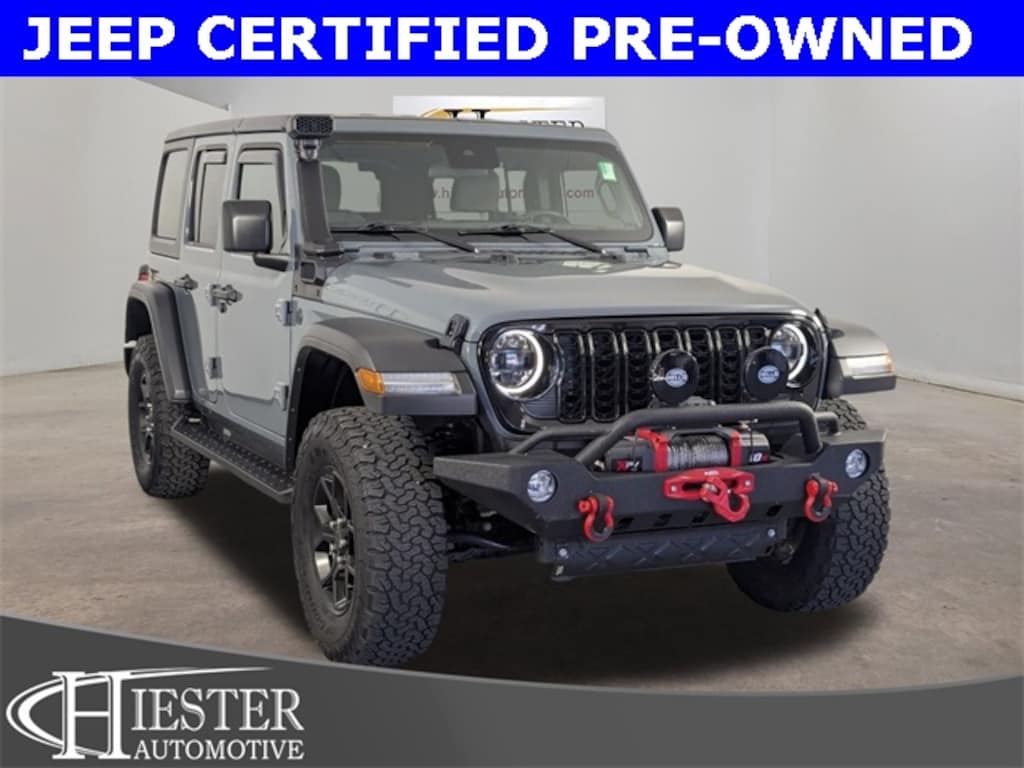 Well equipped with: Convenience Group (2-Door Passive Entry, Front Door Locks, Air Conditioning w/Auto Temperature Control, Air Filtering, Cluster 7.0" TFT Color Display, Emergency/Assistance Call, Heated Front Seats, Heated Steering Wheel, Remote Start System, and Universal Garage Door Opener), Quick Order Package 24W Willys (240 Amp Alternator, 4-Wheel Drive Swing Gate Decal, 4.10 Rear Axle Ratio, 7 & 4 Pin Wiring Harness, 97 MPH Vehicle Max Speed Calibration, Advanced Brake Assist, Automatic Headlamps, Auxiliary Switches, Black Grille, Class II Receiver Hitch, Conventional Differential Front Axle, Corning Gorilla Glass, Dana M210 Wide HD Tube Front Axle, Dana M220 Wide Rear Axle, Daytime Running Lamps LED Accents, Deep Tint Sunscreen Windows, E-Locker Rear Axle, Enhanced Adaptive Cruise Control, Front 1-Touch Down Power Windows, Front LED Fog Lamps, Full Speed Forward Collision Warning Plus, Injection Molded Black Rear Bumper, LED Premium Reflector Headlamps, Mold In Color Bumper w/Gloss Black, Molded in Color Rubicon Highline Flare, MOPAR All-Weather Floor Mats, Off-Road Plus Mode, Power Heated Mirrors, Premium Wrapped Steering Wheel, Remote Keyless Entry, Security Alarm, Speed Sensitive Power Locks, Sun Visors w/Illuminated Vanity Mirrors, Wheels: 17" x 7.5" Painted Black, Willy's Suspension, Willys, and Willys Hood Decal), FCA US LLC Certified Pre-Owned Certified, 110 MPH Vehicle Max Speed Calibration, 4-Wheel Disc Brakes, 8 Speakers, ABS brakes, Air Conditioning, AM/FM radio, Apple CarPlay/Android Auto, Aux Battery, Black 3-Piece Hard Top, Brake assist, Cloth Low-Back Bucket Seats, Compass, Delay-off headlights, Driver door bin, Driver vanity mirror, Dual front impact airbags, Dual front side impact airbags, Electronic Stability Control, Freedom Panel Storage Bag, Front anti-roll bar, Front Bucket Seats, Front Center Armrest w/Storage, Front fog lights, Front reading lights, Integrated roll-over protection, Low tire pressure warning, No Soft Top, Non-Lock Fuel Cap w/o Discriminator, Normal Duty Suspension, Occupant sensing airbag, Outside temperature display, Overhead airbag, ParkView Rear Back-Up Camera, Passenger door bin, Passenger vanity mirror, Power steering, Radio data system, Radio: Uconnect 5 w/12.3" Display, Rear anti-roll bar, Rear reading lights, Rear Window Defroster, Rear Window Wiper/Washer, Speed control, Split folding rear seat, Steering wheel mounted audio controls, Stop-Start Dual Battery System, Tachometer, Telescoping steering wheel, Tilt steering wheel, Traction control, Trip computer, Variably intermittent wipers, and Wheels: 17" x 7.5" Black Steel Styled. ***FACTORY CHRYSLER CERTIFIED***, ACCIDENT FREE CARFAX, LIFETIME ENGINE GUARANTEE, BALANCE OF FACTORY WARRANTY, 4WD, LOCAL TRADE, FAST AND EASY FINANCING, THE NEW PRICE OUTLET, FCA US LLC Certified Pre-Owned Certified, 2-Door Passive Entry, Front Door Locks, 240 Amp Alternator, 4-Wheel Drive Swing Gate Decal, 4.10 Rear Axle Ratio, 7 & 4 Pin Wiring Harness, 97 MPH Vehicle Max Speed Calibration, Advanced Brake Assist, Air Conditioning w/Auto Temperature Control, Air Filtering, Automatic Headlamps, Auxiliary Switches, Black Grille, Class II Receiver Hitch, Cluster 7.0" TFT Color Display, Convenience Group, Conventional Differential Front Axle, Corning Gorilla Glass, Dana M210 Wide HD Tube Front Axle, Dana M220 Wide Rear Axle, Daytime Running Lamps LED Accents, Deep Tint Sunscreen Windows, E-Locker Rear Axle, Emergency/Assistance Call, Enhanced Adaptive Cruise Control, Front 1-Touch Down Power Windows, Front LED Fog Lamps, Full Speed Forward Collision Warning Plus, Heated Front Seats, Heated Steering Wheel, Injection Molded Black Rear Bumper, LED Premium Reflector Headlamps, Mold In Color Bumper w/Gloss Black, Molded in Color Rubicon Highline Flare, MOPAR All-Weather Floor Mats, Off-Road Plus Mode, Power Heated Mirrors, Premium Wrapped Steering Wheel, Quick Order