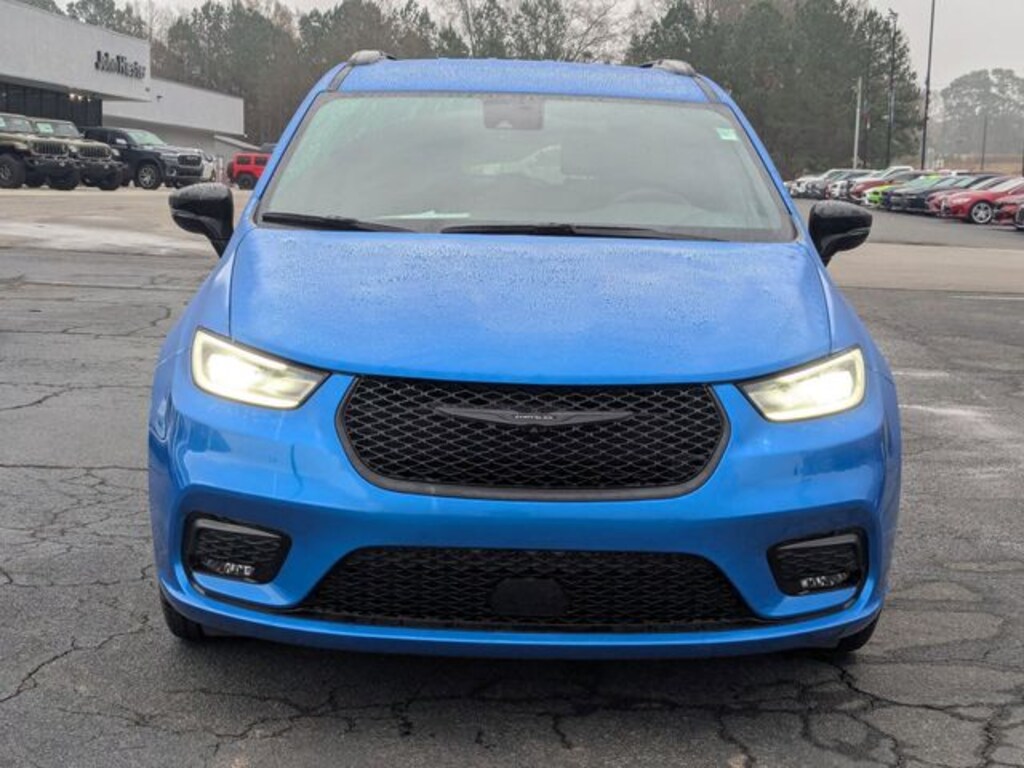 Hydro Blue Pearlcoat 2026 Chrysler Pacifica Select FWD 9-Speed 948TE Automatic 3.6L V6 24V VVT 10.1" Touchscreen Display, 17" x 7.0" Aluminum Wheels, 3.25 Axle Ratio, 3rd row seats: split-bench, 4-Wheel Disc Brakes, 4G LTE Wi-Fi Hot Spot, 6 Speakers, ABS brakes, Air Conditioning, Alloy wheels, AM/FM radio: SiriusXM, Anodized Ink Badging, Apple CarPlay, Apple CarPlay/Android Auto, Auto-dimming Rear-View mirror, Automatic temperature control, Black Day Light Opening Moldings, Black Stow 'N Place Roof Rack, Brake assist, Bumpers: body-color, Caprice Leatherette Bucket Seats, Compass, Connectivity - US/Canada, Delay-off headlights, Disassociated Touchscreen Display, Driver door bin, Driver vanity mirror, Driver's Seat Mounted Armrest, Dual front impact airbags, Dual front side impact airbags, Electronic Stability Control, Emergency communication system: Chrysler Connect, For Details, Visit DriveUconnect.com, Four wheel independent suspension, Front anti-roll bar, Front Bucket Seats, Front dual zone A/C, Front fog lights, Front reading lights, Fully automatic headlights, Garage door transmitter, Google Android Auto, GPS Antenna Input, Heated door mirrors, Heated front seats, Heated steering wheel, Illuminated entry, Integrated Active Noise Cancellation, Integrated Center Stack Radio, Knee airbag, Low tire pressure warning, Memory seat, MyFlexCare Service Plan, Occupant sensing airbag, Outside temperature display, Overhead airbag, Overhead console, Panic alarm, ParkView Rear Back-Up Camera, Passenger door bin, Passenger seat mounted armrest, Passenger vanity mirror, Piano Black Interior Accents, Power door mirrors, Power driver seat, Power Liftgate, Power steering, Power windows, Premium Rear Fascia Black, Quick Order Package 27L, Radio data system, Rain sensing wipers, Rear air conditioning, Rear reading lights, Rear window defroster, Rear window wiper, Reclining 3rd row seat, Remote keyless entry, S Appearance Package, S Badge, Security system, Speed control, Split folding rear seat, Spoiler, Steering wheel mounted audio controls, Tachometer, Telescoping steering wheel, Tilt steering wheel, Touring Suspension, Traction control, Trip computer, Turn signal indicator mirrors, USB Host Flip, Variably intermittent wipers, Voltmeter, Wheels: 20" x 7.5" S-Model Aluminum Design 1.