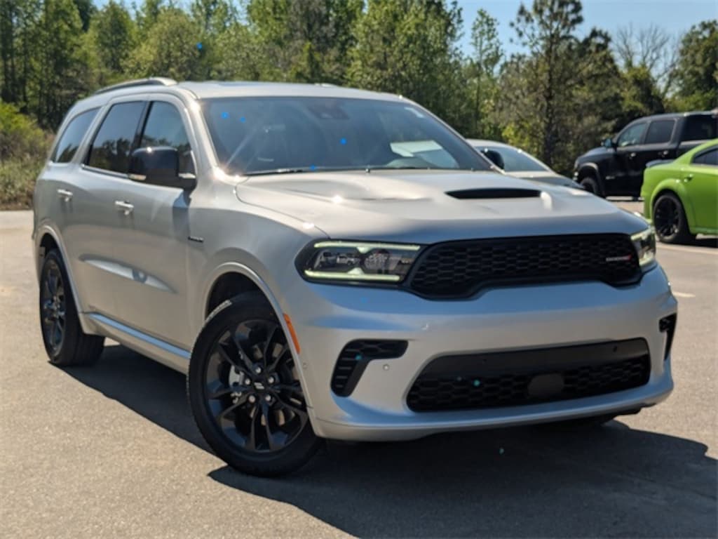 Triple Nickel 2025 Dodge Durango R/T Plus AWD 8-Speed Automatic HEMI 5.7L V8 Multi Displacement VVT AWD, 115V Auxiliary Power Outlet, 2nd Row Fold/Tumble Captain Chairs, 2nd Row Mini Console w/Cupholders, 2nd Row Seat Mounted Inboard Armrests, 3.09 Rear Axle Ratio, 3rd Row Floor Mat & Mini Console, 3rd row seats: split-bench, 4-Wheel Disc Brakes, 6-Passenger Seating, 7 & 4 Pin Wiring Harness, 9 Speakers, ABS brakes, Adaptive Cruise Control w/Stop, Air Conditioning, Alloy wheels, AM/FM radio: SiriusXM w/360L, Apple CarPlay/Android Auto, Auto High Beam Headlamp Control, Auto-Dimming Exterior Driver Mirror, Auto-dimming Rear-View mirror, Auto-leveling suspension, Automatic temperature control, Black Roof Rails, Blacktop Package, Blind Spot w/Trailer Detection, Brake assist, Bumpers: body-color, Class IV Receiver Hitch, Cloth Bucket Seats w/Shift Insert, Compass, Delay-off headlights, Driver door bin, Driver vanity mirror, Dual front impact airbags, Dual front side impact airbags, Dual Remote USB Port - Charge Only, Electronic Stability Control, Emergency communication system: Dodge Connect, Exterior Mirrors w/Heating Element, Exterior Mirrors w/Memory, Exterior Mirrors w/Supplemental Signals, Floor Console w/Leather Armrest, Four wheel independent suspension, Front anti-roll bar, Front Bucket Seats, Front Center Armrest w/Storage, Front dual zone A/C, Front reading lights, Full Speed Forward Collision Warning Plus, Fully automatic headlights, Garage door transmitter, Gloss Black Badges, Gloss Black Exterior Mirrors, Heated door mirrors, Heated front seats, Heated Second Row Seats, Heated steering wheel, Illuminated entry, Integrated Roof Rail Crossbars, Knee airbag, Leather steering wheel, Leather Trimmed Bucket Seats, Leather Wrapped Door Panels, LED Auxiliary Low Beam & Turn Signal, Low tire pressure warning, Navigation System, Occupant sensing airbag, Outside temperature display, Overhead airbag, Overhead console, Panic alarm, ParkView Rear Back-Up Camera, Passenger door bin, Passenger vanity mirror, Power 6x9 Multi-Function Foldaway Mirrors, Power 8-Way Driver Memory 8-Way Passenger Seats, Power door mirrors, Power driver seat, Power Driver/Passenger 4-Way Lumbar Adjust, Power Liftgate, Power steering, Power Sunroof, Power Tilt & Telescopic Steering Column, Power windows, Quick Order Package 22T R/T Plus, Radio data system, Radio: Uconnect 5 Nav w/10.1" Display, Radio/Driver Seat/Mirrors Memory, Rain sensing wipers, Rear air conditioning, Rear anti-roll bar, Rear Load Leveling Suspension, Rear reading lights, Rear seat center armrest, Rear window defroster, Rear window wiper, Red Accent Stitching, Remote keyless entry, Satin Black Dodge Tail Lamp Badge, Security system, Speed control, Speed-sensing steering, Speed-Sensitive Wipers, Split folding rear seat, Spoiler, Sport steering wheel, Steering wheel mounted audio controls, Tachometer, Telescoping steering wheel, Tilt steering wheel, Traction control, Trailer Brake Control, Trip computer, Variably intermittent wipers, Ventilated Front Seats, Voltmeter, Wheels: 20" x 8.0" Black Noise Aluminum, Wheels: 20" x 8.0" Fine Silver, AWD.