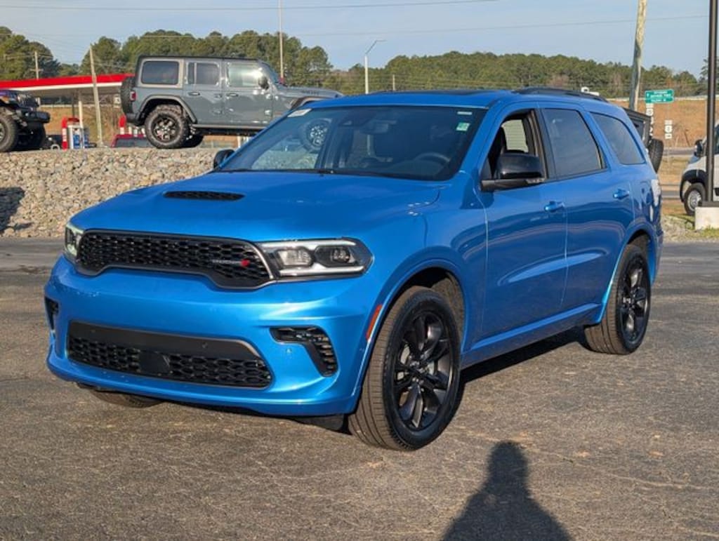 B5 Blue 2026 Dodge Durango GT Plus AWD 8-Speed Automatic 3.6L V6 24V VVT AWD, 115V Auxiliary Power Outlet, 180 Amp Alternator, 19 Harman/Kardon Amplified Speakers with Subwoofer, 3.45 Rear Axle Ratio, 3rd row seats: split-bench, 4-Wheel Disc Brakes, 506 Watt Amplifier, 6 Speakers, 7 and 4 Pin Wiring Harness, 825 Watt Amplifier, 9 Alpine Amplified Speakers with Subwoofer, ABS brakes, Adaptive Cruise Control with Stop, Advanced Brake Assist, Air Conditioning, Alloy wheels, AM/FM radio: SiriusXM w/360L, Apple CarPlay/Android Auto, Auto High Beam Headlamp Control, Auto-Dimming Exterior Driver Mirror, Auto-dimming Rear-View mirror, Automatic temperature control, Black Roof Rails, Blacktop Package, Blind Spot with Trailer Detection, Brake assist, Bright Cargo Area Scuff Pads, Bumpers: body-color, Class IV Receiver Hitch, Cloth Bucket Seats with Shift Insert, Compass, Delay-off headlights, Driver door bin, Driver vanity mirror, Dual front impact airbags, Dual front side impact airbags, Dual Remote USB Port - Charge Only, Electronic Stability Control, Emergency communication system: Dodge Connect, Exterior Mirrors with Heating Element, Exterior Mirrors with Memory, Exterior Mirrors with Supplemental Signals, Four wheel independent suspension, Front anti-roll bar, Front Bucket Seats, Front Center Armrest w/Storage, Front dual zone A/C, Front License Plate Bracket, Front reading lights, Full Speed Forward Collision Warning Plus, Fully automatic headlights, Garage door transmitter, Gloss Black Badges, Gloss Black Exterior Mirrors, GT Gloss Black Badging, Heated door mirrors, Heated front seats, Heated Second Row Seats, Heated steering wheel, Heavy-Duty Engine Cooling, Illuminated entry, Integrated Roof Rail Crossbars, Knee airbag, Lane Departure Warning Plus, Leather steering wheel, Leather Trimmed Bucket Seats, Leather Wrapped Door Panels, LED Auxiliary Low Beam and Turn Signal, Low tire pressure warning, MyFlexCare Service Plan, Navigation System, Occupant sensing airbag, Outside temperature display, Overhead airbag, Overhead console, Panic alarm, ParkSense Front/Rear Park Assist with Stop, ParkView Rear Back-Up Camera, Passenger door bin, Passenger vanity mirror, Power 6x9 Multi-Function Foldaway Mirrors, Power 8-Way Driver Memory 8-Way Passenger Seats, Power door mirrors, Power driver seat, Power Driver/Passenger 4-Way Lumbar Adjust, Power Liftgate, Power steering, Power Sunroof, Power Tilt and Telescopic Steering Column, Power windows, Quick Order Package 2BH GT Plus, Radio data system, Radio: Uconnect 5 Nav with 10.1" Display, Rear air conditioning, Rear anti-roll bar, Rear Load Leveling Suspension, Rear reading lights, Rear seat center armrest, Rear window defroster, Rear window wiper, Red Accent Stitching, Remote keyless entry, Satin Black Dodge Tail Lamp Badge, Security Alarm, Speed control, Speed-sensing steering, Speed-Sensitive Wipers, Split folding rear seat, Spoiler, Sport steering wheel, Steering wheel mounted audio controls, Sun Visors with Illuminated Vanity Mirrors, Tachometer, Telescoping steering wheel, Tilt steering wheel, Traction control, Trailer Brake Control, Trip computer, Variably intermittent wipers, Ventilated Front Seats, Voltmeter, Wheels: 20" x 8" Black Noise Aluminum, Wheels: 20" x 8" Fine Silver, Wireless Charging Pad, AWD.