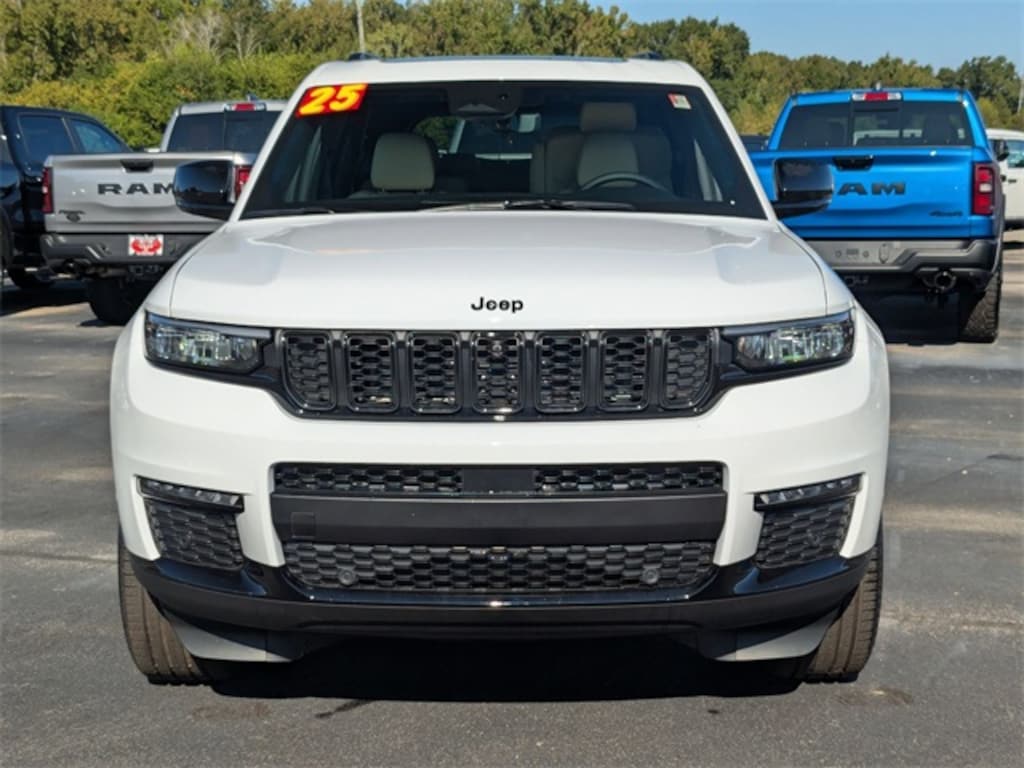 Well equipped with: Black Appearance Package (Gloss Black Exterior Accents and Wheels: 20" x 8.5" Gloss Black Painted Aluminum), Luxury Tech Group II (2nd Row Manual Window Shades, Auto-Dimming Exterior Driver Mirror, Capri Leatherette w/Axis II Seats, Integrated Off-Road Camera, Intersection Collision Assist System, Memory Steering Column, ParkSense Front/Rear Park Assist w/Stop, Passive Entry - Front/Rear Doors, Liftgate, Power Tilt/Telescope Steering Column, Rain Sensitive Windshield Wipers, Rear Back Up Camera Washer, Rearview Autodim Digital Display Mirror, Surround View Camera System, Ventilated Front Seats, and Wireless Charging Pad), Quick Order Package 22E, Trailer Tow Package (220 Amp Alternator, 7 & 4 Pin Wiring Harness, Automatic Headlamp Leveling System, Class IV Receiver Hitch, Dual Exhaust Tips, Heavy-Duty Engine Cooling, Rear Load Leveling Suspension, and Trailer Hitch Zoom), 3.45 Rear Axle Ratio, 3rd row seats: split-bench, 4-Wheel Disc Brakes, 506 Watt Amplifier, 6 Speakers, 9 Amplified Speakers w/Subwoofer, ABS brakes, Active Noise Control System, Air Conditioning, Alloy wheels, AM/FM radio: SiriusXM with 360L, Anti-whiplash front head restraints, Audio memory, Auto High-beam Headlights, Automatic temperature control, Brake assist, Bumpers: body-color, Capri Leatherette Seats, Compass, Delay-off headlights, Driver door bin, Driver vanity mirror, Dual front impact airbags, Dual front side impact airbags, Dual-Pane Panoramic Sunroof, Electronic Stability Control, Emergency communication system, Four wheel independent suspension, Front anti-roll bar, Front Bucket Seats, Front Center Armrest w/Storage, Front dual zone A/C, Front fog lights, Front License Plate Bracket, Front reading lights, Fully automatic headlights, Garage door transmitter, Heated door mirrors, Heated front seats, Heated rear seats, Heated steering wheel, Illuminated entry, Interior Rear Facing Camera, Knee airbag, Low tire pressure warning, Manual Fold Seatbacks, Memory seat, Model Year Tracking, Navigation System, Normal Duty Suspension, Occupant sensing airbag, Outside temperature display, Overhead airbag, Overhead console, Panic alarm, ParkView Rear Back-Up Camera, Passenger door bin, Passenger vanity mirror, Power door mirrors, Power driver seat, Power Liftgate, Power passenger seat, Power steering, Power windows, Radio data system, Radio: Uconnect 5 Nav w/10.1" Display, Rear air conditioning, Rear anti-roll bar, Rear reading lights, Rear window defroster, Rear window wiper, Reclining 3rd row seat, Remote keyless entry, Security system, Speed control, Speed-Sensitive Wipers, Split folding rear seat, Spoiler, Steering wheel mounted audio controls, Tachometer, Telescoping steering wheel, Tilt steering wheel, Traction control, Trip computer, Turn signal indicator mirrors, Variably intermittent wipers, Voltmeter, and Wheels: 18" x 8.0" Polished/Painted Aluminum. Price includes: $1750 - 2025 South BC Retail Bonus Cash . Exp. 11/03/2025 $2000 - 2025 National Retail Bonus Cash . Exp. 11/03/2025 $500 - 2025 National Jeep Monopoly Money Bonus Cash . Exp. 11/03/2025 $750 - 2025 South BC SFS Retail Bonus Cash. Exp. 11/03/2025