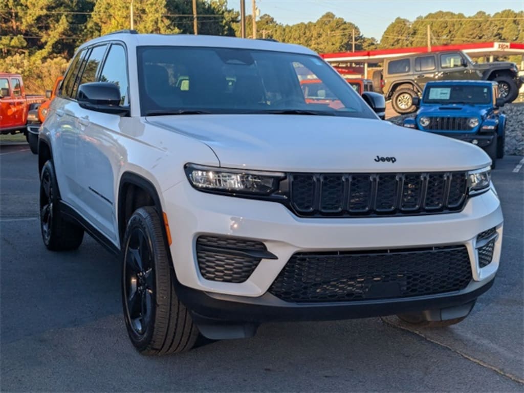 Bright White Clearcoat 2025 Jeep Grand Cherokee Altitude X 4WD 8-Speed Automatic 3.6L V6 24V VVT 4WD, 115V Auxiliary Power Outlet, 4-Wheel Disc Brakes, 6 Speakers, ABS brakes, Air Conditioning, Alloy wheels, Altitude X, AM/FM radio: SiriusXM, Anti-whiplash front head restraints, Automatic temperature control, Black Headliner, Brake assist, Bumpers: body-color, Capri Leatherette/Suede Seats, Cloth Seats, Compass, Delay-off headlights, Delete Laredo Badge, Driver door bin, Driver vanity mirror, Dual front impact airbags, Dual front side impact airbags, Electronic Stability Control, Emergency communication system, Four wheel independent suspension, Front anti-roll bar, Front Bucket Seats, Front Center Armrest w/Storage, Front dual zone A/C, Front License Plate Bracket, Front reading lights, Fully automatic headlights, Gloss Black Exterior Accents, Heated door mirrors, Heated Front Seats, Heated Steering Wheel, Illuminated entry, Knee airbag, Low tire pressure warning, Model Year Tracking, Normal Duty Suspension, Occupant sensing airbag, Outside temperature display, Overhead airbag, Overhead console, Panic alarm, ParkView Rear Back-Up Camera, Passenger door bin, Passenger vanity mirror, Power door mirrors, Power driver seat, Power Liftgate, Power steering, Power Sunroof, Power windows, Quick Order Package 23M Altitude X, Radio data system, Rain Sensitive Windshield Wipers, Rear anti-roll bar, Rear reading lights, Rear window defroster, Rear window wiper, Remote keyless entry, Remote Start System, Security system, Selectable Tire Fill Alert, Speed control, Speed-Sensitive Wipers, Split folding rear seat, Spoiler, Steering wheel mounted audio controls, Tachometer, Telescoping steering wheel, Tilt steering wheel, Traction control, Trip computer, Variably intermittent wipers, Voltmeter, Wheels: 17" x 6.5" Fully Painted Aluminum, Wheels: 18" x 8" Fully Painted Aluminum 1, Wheels: 20" x 8.5" Gloss Black Painted Aluminum, Wireless Charging Pad, 4WD.