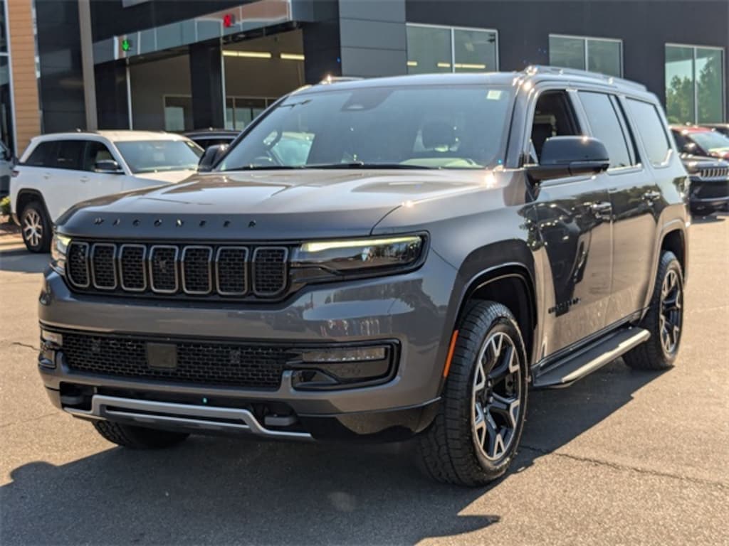 Well equipped with: Overland Appearance Package, Quick Order Package 25P Overland (2 Speed On Demand Transfer Case, 3 Panel Sunroof, 3.92 Rear Axle Ratio, 60/40 Power Recline 3rd Row Seat, Adjustable Roof Rail Crossbars, All-Season Floor Mats, Auto Adjust In Reverse Exterior Mirrors, Auto High Beam Headlamp Control, Auto Power Folding Exterior Mirrors, Auto Power-Folding Mirrors, Auto-Dimming Exterior Driver Mirror, Black Exterior Accents, Black Roof, Cargo Tray, Electronic Rear Limited Slip Differential, Exterior Mirrors Approach Lamps, Exterior Mirrors w/Memory, Exterior Mirrors w/Supplemental Signals, Fuel Tank Skid Plate Shield, Heated Exterior Mirrors, Heavy-Duty Engine Cooling, Overland Exterior Accents, P&P Park & Unpark Assist w/Stop System, Quadra-Lift Air Suspension, Removable Rear Tow Hook, Selec-Speed Control, Semi Active Damping, Side Distance Warning, Surround View Camera System, Trailer Brake Control, Trailer Hitch Zoom, Vapor Tow Hooks, and Wheels: 20" x 9.0" Machine Face Painted Aluminum), 10 Speakers, 118 MPH Maximum Speed Calibration, 3.55 Rear Axle Ratio, 3rd row seats: bench, 4-Wheel Disc Brakes, ABS brakes, Air Conditioning, Alloy wheels, AM/FM radio: SiriusXM with 360L, Anti-whiplash front head restraints, Apple CarPlay/Android Auto, Audio memory, Auto-dimming door mirrors, Auto-dimming Rear-View mirror, Auto-leveling suspension, Automatic temperature control, Brake assist, Bumpers: body-color, Compass, Delay-off headlights, Driver door bin, Driver vanity mirror, Driver's Seat Mounted Armrest, Dual front impact airbags, Dual front side impact airbags, Electronic Stability Control, Emergency communication system: Jeep Connect, Four wheel independent suspension, Front anti-roll bar, Front Bucket Seats, Front Center Armrest w/Storage, Front dual zone A/C, Front fog lights, Front License Plate Bracket, Front reading lights, Fully automatic headlights, Garage door transmitter, Genuine wood console insert, Genuine wood dashboard insert, Genuine wood door panel insert, Heated door mirrors, Heated front seats, Heated rear seats, Heated steering wheel, Illuminated entry, Knee airbag, Leather Trimmed Bucket Seats, Low tire pressure warning, Memory seat, Navigation System, Normal Duty Suspension, Occupant sensing airbag, Outside temperature display, Overhead airbag, Overhead console, Panic alarm, ParkView Rear Back-Up Camera, Passenger door bin, Passenger seat mounted armrest, Passenger vanity mirror, Power adjustable front head restraints, Power door mirrors, Power driver seat, Power Liftgate, Power passenger seat, Power steering, Power windows, Radio data system, Radio: Uconnect 5 Nav w/10.1" Display, Rain sensing wipers, Rear air conditioning, Rear anti-roll bar, Rear dual zone A/C, Rear reading lights, Rear seat center armrest, Rear window defroster, Rear window wiper, Reclining 3rd row seat, Remote keyless entry, Security system, Speed control, Speed-sensing steering, Speed-Sensitive Wipers, Split folding rear seat, Steering wheel memory, Steering wheel mounted audio controls, Tachometer, Telescoping steering wheel, Tilt steering wheel, Traction control, Trip computer, Turn signal indicator mirrors, Variably intermittent wipers, Ventilated front seats, Voltmeter, and Wheels: 20" x 9.0" Premium 2 Aluminum.