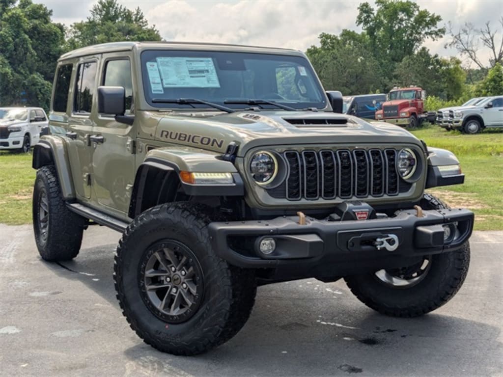 41 2025 Jeep Wrangler Rubicon 392 4WD 8-Speed Automatic SRT HEMI 6.4L V8 MDS 392 Final Edition Nappa Leather Seat, 392 Suspension, 4-Wheel Disc Brakes, 4.56 Rear Axle Ratio, 9 Speakers, ABS brakes, Air Conditioning, Alloy wheels, AM/FM radio: SiriusXM with 360L, Apple CarPlay/Android Auto, Auto High-beam Headlights, Auto-dimming Rear-View mirror, Automatic temperature control, Brake assist, Compass, Convertible HardTop, Delay-off headlights, Driver door bin, Driver vanity mirror, Dual front impact airbags, Dual front side impact airbags, Electronic Stability Control, Emergency communication system: Jeep Connect, Front anti-roll bar, Front Bucket Seats, Front Center Armrest w/Storage, Front dual zone A/C, Front fog lights, Front reading lights, Fully automatic headlights, Garage door transmitter, Glass rear window, Heated door mirrors, Heated front seats, Heated steering wheel, Illuminated entry, Integrated roll-over protection, Leather Shift Knob, Leather steering wheel, Low tire pressure warning, Navigation System, Occupant sensing airbag, Outside temperature display, Overhead airbag, Panic alarm, ParkView Rear Back-Up Camera, Passenger door bin, Passenger vanity mirror, Power door mirrors, Power driver seat, Power passenger seat, Power steering, Power Top Quarter Window Storage Bag, Power windows, Quick Order Package 27J 392 Final Edition, Radio data system, Radio: Uconnect 5 Nav w/12.3" Display, Rear anti-roll bar, Rear reading lights, Rear seat center armrest, Rear Window Defroster, Rear window defroster, Rear window wiper, Rear Window Wiper/Washer, Remote keyless entry, Removable Rear Quarter Windows, Security system, Sky 1-Touch Power Top, Speed control, Split folding rear seat, Steering wheel mounted audio controls, Tachometer, Telescoping steering wheel, Tilt steering wheel, Traction control, Trip computer, Variably intermittent wipers, Voltmeter, Wheels: 17" x 8" Bronze Beadlock Capable.