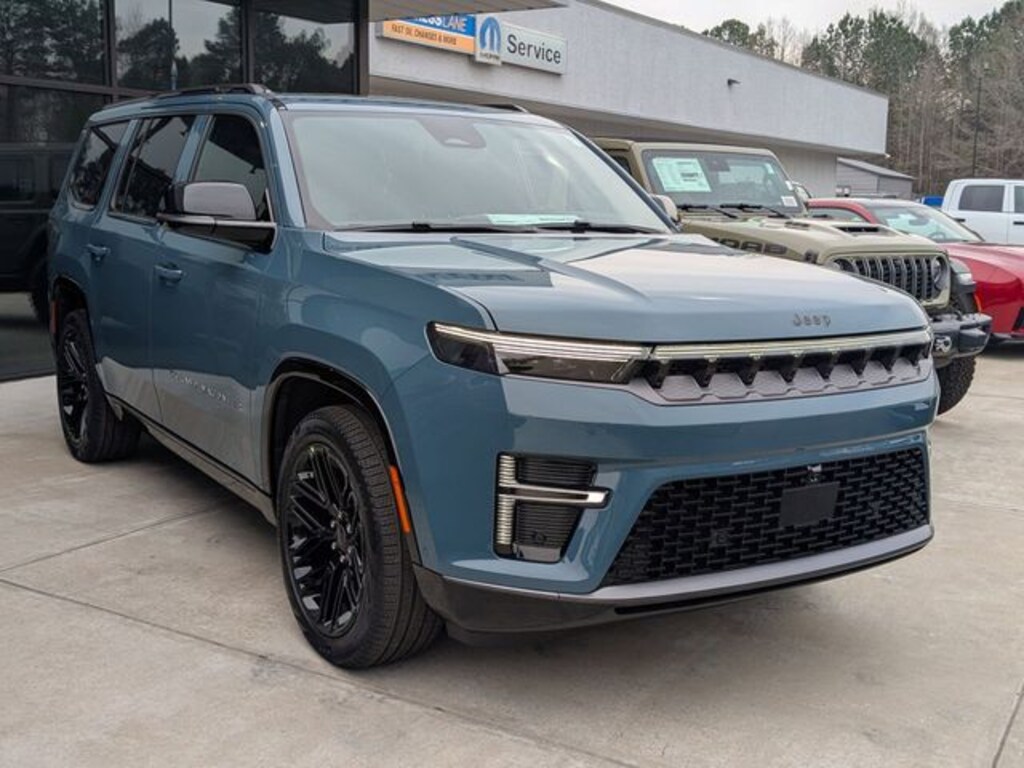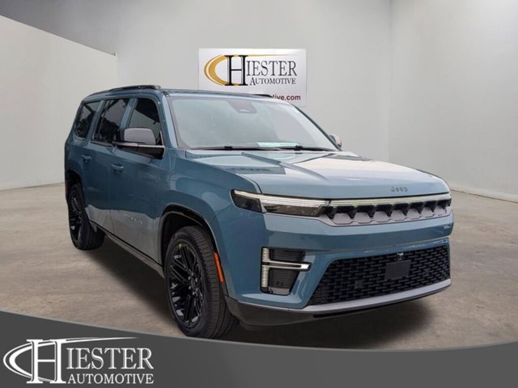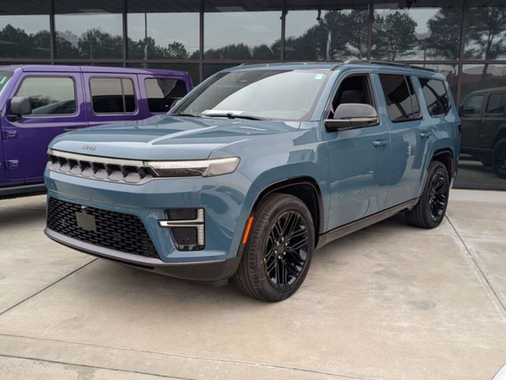 Steel Blue 2026 Jeep Grand Wagoneer 4WD 8-Speed Automatic 3.0L I6 118 Mph Maximum Speed Calibration, 19 Speaker McIntosh Audio System, 2nd Row Manual Window Shades, 3 Panel Sunroof, 3.55 Rear Axle Ratio, 3rd row seats: bench, 4-Wheel Disc Brakes, 9 Speakers, ABS brakes, Air Conditioning, Alloy wheels, AM/FM radio: SiriusXM with 360L, Anti-whiplash front head restraints, Apple CarPlay/Android Auto, Audio memory, Auto Adjust in Reverse Exterior Mirrors, Auto High-beam Headlights, Auto-dimming door mirrors, Auto-Dimming Exterior Driver Mirror, Auto-dimming Rear-View mirror, Auto-leveling suspension, Automatic temperature control, Black Appearance Package, Black Exterior Accents, Brake assist, Bumpers: body-color, Cargo Cover, Cluster 12" TFT Color Display, Compass, Delay-off headlights, Driver door bin, Driver vanity mirror, Driver's Seat Mounted Armrest, Dual front impact airbags, Dual front side impact airbags, Electronic Stability Control, Emergency communication system: Jeep Connect, Exterior Mirrors Approach Lamps, Exterior Mirrors with Memory, Exterior Mirrors with Supplemental Signals, Exterior Parking Camera Rear, Four wheel independent suspension, Front anti-roll bar, Front Bucket Seats, Front Center Armrest w/Storage, Front dual zone A/C, Front fog lights, Front reading lights, Fully automatic headlights, Garage door transmitter, Heated door mirrors, Heated Exterior Mirrors, Heated front seats, Heated rear seats, Heated steering wheel, Illuminated entry, Instrument Panel, Interior Rear Facing Camera, Knee airbag, Leather Trimmed Bucket Seats, Limited Reserve Package, Low tire pressure warning, Luxury Front and Rear Floor Mats, Memory seat, MyFlexCare Service Plan, Navigation System, Normal Duty Suspension, Occupant sensing airbag, Outside temperature display, Overhead airbag, Overhead console, P and P Park and Unpark Assist with Stop System, Panic alarm, Passenger door bin, Passenger seat mounted armrest, Passenger vanity mirror, Power Deployable Running Boards, Power door mirrors, Power driver seat, Power Liftgate, Power passenger seat, Power steering, Power windows, Quadra-Lift Air Suspension, Quick Order Package 29D Reserve, Radio data system, Radio: Uconnect 5 Nav with 12.0" Display, Rain sensing wipers, Rear air conditioning, Rear anti-roll bar, Rear reading lights, Rear seat center armrest, Rear window defroster, Rear window wiper, Reclining 3rd row seat, Remote keyless entry, Reversible Carpet/Vinyl Cargo Mat, Security system, Semi Active Damping, Side Distance Warning, Smartphone as a Key Prep, Speed control, Speed-sensing steering, Speed-Sensitive Wipers, Split folding rear seat, Steering wheel memory, Steering wheel mounted audio controls, Surround View Camera System, Tachometer, Telescoping steering wheel, Tilt steering wheel, Titanium Daylight Opening Upper, Titanium Upper Grille Applique, Traction control, Trip computer, Turn signal indicator mirrors, Variably intermittent wipers, Ventilated front seats, Ventilated rear seats, Voltmeter, Wheels: 22" x 9" Painted Gloss Black.
