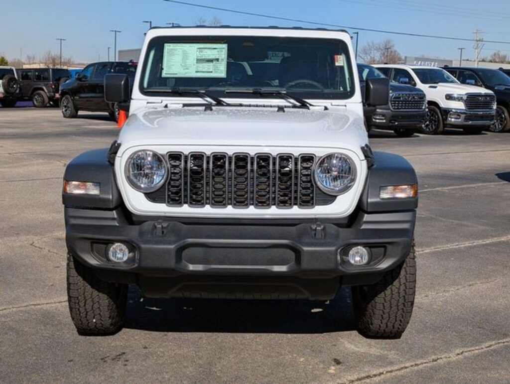 Well equipped with: Quick Order Package 24S Sport S (Advanced Brake Assist, Automatic Headlamps, Corning Gorilla Glass, Deep Tint Sunscreen Windows, Enhanced Adaptive Cruise Control, Full Speed Forward Collision Warning Plus, Power Heated Mirrors, Premium Wrapped Steering Wheel, Security Alarm, Sun Visors with Illuminated Vanity Mirrors, and Wheels: 17" x 7.5" Gray), 12.3" Touchscreen Display, 3.45 Overall Top Gear Ratio, 4-Wheel Disc Brakes, 4G LTE Wi-Fi Hot Spot, 8 Speakers, ABS brakes, Air Conditioning, AM/FM radio: SiriusXM with 360L, Apple CarPlay, Apple CarPlay/Android Auto, Aux Battery, Black 3-Piece Hard Top, Brake assist, Cloth Low-Back Bucket Seats, Compass, Connectivity - US/Canada, Delay-off headlights, Driver door bin, Driver vanity mirror, Dual front impact airbags, Dual front side impact airbags, Electronic Stability Control, For More Info, Call 800-643-2112, Freedom Panel Storage Bag, Front anti-roll bar, Front Bucket Seats, Front Center Armrest w/Storage, Front fog lights, Front reading lights, Google Android Auto, Illuminated entry, Integrated Center Stack Radio, Integrated roll-over protection, Low tire pressure warning, MOPAR All-Weather Floor Mats, MOPAR Solid Sunbonnet Top, Non-Lock Fuel Cap Without Discriminator, Normal Duty Suspension, Occupant sensing airbag, Outside temperature display, Overhead airbag, Panic alarm, ParkView Rear Back-Up Camera, Passenger door bin, Passenger vanity mirror, Power steering, Power windows, Radio data system, Radio: Uconnect 5 with 12.3" Display, Rear anti-roll bar, Rear reading lights, Rear Window Defroster, Rear Window Wiper/Washer, Remote keyless entry, SiriusXM Radio Service, SiriusXM with 360L, Speed control, Split folding rear seat, Steering wheel mounted audio controls, Stop-Start Dual Battery System, Tachometer, Telescoping steering wheel, Tilt steering wheel, Traction control, Trip computer, Variably intermittent wipers, and Wheels: 17" x 7.5" Black Steel Styled. Price includes: $1000 - 2026 National Retail Bonus Cash . Exp. 03/31/2026 $1000 - 2026 National Stellantis Loyalty Bonus Cash . Exp. 03/31/2026