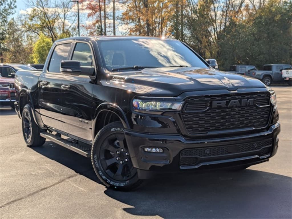 Well equipped with: Big Horn Level 2 Equipment Group (115V Auxiliary Power Outlet, 115V Auxiliary Rear Power Outlet, 12" Touchscreen Display, 2nd Row In Floor Storage Bins, 400W Inverter, 4G LTE Wi-Fi Hot Spot, 9 Amplified Speakers w/Subwoofer, Air Conditioning ATC w/Dual Zone Control, Apple CarPlay, Auto Power-Folding Mirrors, Auto-Dimming Exterior Driver Mirror, Auto-Dimming Rear-View Mirror, Black Exterior Mirrors, Black Premium Power Mirrors, Cluster 7.0" TFT Color Display, Configurable Drive Mode, Connected Travel & Traffic Services, Connectivity - US/Canada, Convex Wide-Angle Exterior Mirror Insert, Exterior Mirrors Courtesy Lamps, Exterior Mirrors w/Heating Element, Exterior Mirrors w/Supplemental Signals, Glove Box Lamp, Google Android Auto, GPS Antenna Input, GPS Navigation, HD Radio, Heated Front Seats, Heated Steering Wheel, Integrated Voice Command w/Bluetooth, Leather Wrapped Steering Wheel, LED Dome Lamp w/On/Off Switch, LED Footwell Lighting, Media Hub w/2 Charge Only USBs, Overhead LED Lamps, Power 2-Way Driver Lumbar Adjust, Power Adjust 8-Way Driver Seat, Power Adjustable Pedals, Premium Overhead Console, Radio: Uconnect 5 Nav w/12.0" Display, Rear Power Sliding Window, Rear Window Defroster, Remote Tailgate Release, Security Alarm, SiriusXM w/360L, Steering Wheel Mounted Audio Controls, Sun Visors w/Illuminated Vanity Mirrors, Universal Garage Door Opener, and USB Host Flip), Night Edition (3 Rear Seat Head Restraints, 4 Way Front Headrests, Accent Color Door Handles, Accent Color Premium Power Mirrors, Accent Color Tailgate Handle, Anti-Spin Differential Rear Axle, Black Exterior Truck Badging, Black Headlamp Bezels, Black Interior Accents, Black Painted Exterior Mirrors Caps, Black Tail Lamp Bezels, Body Color Front Bumper, Body Color Rear Bumper w/Step Pads, Bucket Seats, Deluxe Cloth Bucket Seats, Front Seat Back Map Pockets, Full Length Floor Console, Grille Black Surround Black Mesh, Manual Adjust 4-Way Front Passenger Seat, RAM Grille Badge - Black, Rear 60/40 Folding Seat, Rear Center Armrest, Rear Wheelhouse Liners, and Wheels: 20" x 9.0" Aluminum Painted Clad), Quick Order Package 23Z Big Horn, 3.21 Rear Axle Ratio, 4-Wheel Disc Brakes, 6 Speakers, ABS brakes, Air Conditioning, Alloy wheels, AM/FM radio, Apple CarPlay/Android Auto, Auto High-beam Headlights, Brake assist, Bumpers: chrome, Cloth Bench Seat, Compass, Delay-off headlights, Driver door bin, Dual front impact airbags, Dual front side impact airbags, Electronic Stability Control, Exterior Parking Camera Rear, Front anti-roll bar, Front Center Armrest w/Storage, Front fog lights, Front reading lights, Front wheel independent suspension, Fully automatic headlights, Heated door mirrors, Illuminated entry, Low tire pressure warning, Manual Folding Exterior Mirrors, Occupant sensing airbag, Outside temperature display, Overhead airbag, Overhead console, Panic alarm, Passenger door bin, Passenger vanity mirror, Power door mirrors, Power steering, Power windows, Radio data system, Radio: Uconnect 5 W w/8.4" Display, RAM Grille Badge - Chrome, Rear anti-roll bar, Rear seat center armrest, Rear step bumper, Remote keyless entry, Speed control, Split folding rear seat, Supplier Part Tracking (J-1), Tachometer, Telescoping steering wheel, Tilt steering wheel, Traction control, Trip computer, Variably intermittent wipers, Voltmeter, and Wheels: 18" x 8" Cast-Aluminum Painted. Price includes: 10% Msrp - 2025 National 10% Below MSRP . Exp. 12/01/2025