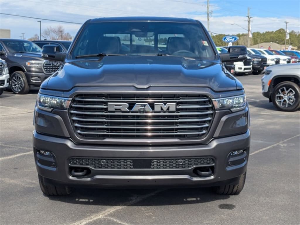 Well equipped with: Laramie Level 1 Equipment Group (Rain Sensitive Windshield Wipers and Remote Tailgate Release), Laramie Preferred Package (Accent Color Premium Power Mirrors, Auto Power-Folding Mirrors, Auto-Dimming Exterior Driver Mirror, Black Painted Exterior Mirrors Caps, Body Color Front Bumper, Body Color Rear Bumper with Step Pads, Convex Wide-Angle Exterior Mirror Insert, Dome Dual LED Reading Lamp, Dual-Pane Panoramic Sunroof, Exterior Mirrors Courtesy Lamps, Exterior Mirrors with Heating Element, Exterior Mirrors with Memory, Exterior Mirrors with Supplemental Signals, Grille Surround 3 Body Color Tex 4 Chrome, LED Dome/Reading Lamp, Power Deployable Running Boards, RAM Grille Badge - Chrome, Tow Hooks, and Trailer Brake Control), Quick Order Package 27H Laramie, 10 Speakers, 4-Wheel Disc Brakes, 4G LTE Wi-Fi Hot Spot, ABS brakes, Active Noise Control System, Air Conditioning, Alloy wheels, AM/FM radio: SiriusXM with 360L, Apple CarPlay/Android Auto, Audio memory, Auto High-beam Headlights, Auto-dimming door mirrors, Auto-dimming Rear-View mirror, Automatic temperature control, Brake assist, Bumpers: chrome, Chrome Exterior Mirrors, Compass, Connected Travel and Traffic Services, Connectivity - US/Canada, Delay-off headlights, Driver door bin, Driver vanity mirror, Dual front impact airbags, Dual front side impact airbags, Electronic Stability Control, Front anti-roll bar, Front Bucket Seats, Front Center Armrest w/Storage, Front dual zone A/C, Front fog lights, Front License Plate Bracket, Front reading lights, Front wheel independent suspension, Fully automatic headlights, Garage door transmitter, GPS Navigation, Heated door mirrors, Heated front seats, Heated rear seats, Heated steering wheel, Illuminated entry, Integrated Center Stack Radio, Integrated Voice Command with Bluetooth, Leather steering wheel, Leather Trimmed Bucket Seats, Low tire pressure warning, Memory seat, MyFlexCare Service Plan, Navigation System, Occupant sensing airbag, Off-Road Information Pages, Outside temperature display, Overhead airbag, Overhead console, Panic alarm, ParkView Rear Back-Up Camera, Passenger door bin, Passenger vanity mirror, Power door mirrors, Power driver seat, Power passenger seat, Power steering, Power windows, Radio data system, Radio: Uconnect 5 Navigation with 12.0" Display, Rear anti-roll bar, Rear reading lights, Rear seat center armrest, Rear step bumper, Remote keyless entry, Security system, SiriusXM Radio Service, SiriusXM with 360L, Speed control, Split folding rear seat, Steering wheel mounted audio controls, Tachometer, Telescoping steering wheel, Tilt steering wheel, Traction control, Trip computer, Turn signal indicator mirrors, USB Host Flip, Variably intermittent wipers, Ventilated front seats, Voltmeter, and Wheels: 20" x 9" Premium Paint/Polish. Price includes: $1000 - 2026 National Bonus Cash . Exp. 03/02/2026 $3500 - 2026 National Retail Consumer Cash . Exp. 03/02/2026