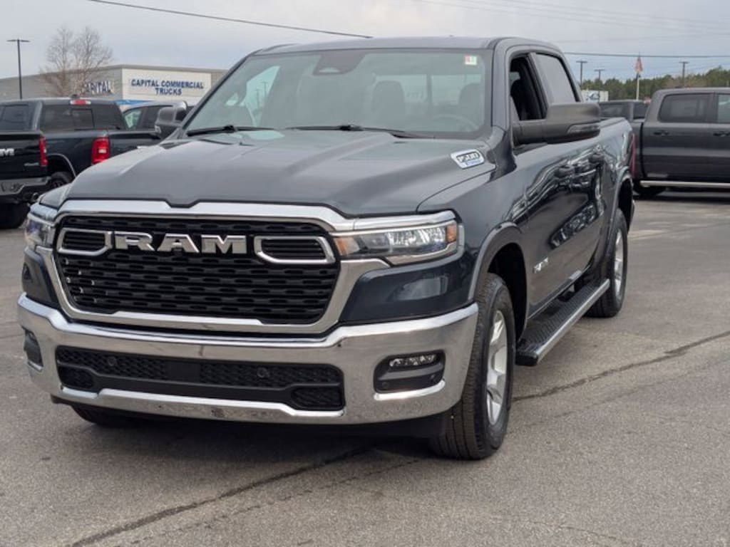 Well equipped with: Big Horn Level 1 Equipment Group (115V Auxiliary Power Outlet, 2nd Row in Floor Storage Bins, 3 Rear Seat Head Restraints, 4 Way Front Headrests, 400W Inverter, Auto Power-Folding Mirrors, Auto-Dimming Exterior Driver Mirror, Auto-Dimming Rear-View Mirror, Black Exterior Mirrors, Black Premium Power Mirrors, Body Color Fender Flares, Bucket Seats, Center Console Parts Module, Convex Wide-Angle Exterior Mirror Insert, Deluxe Cloth Bucket Seats, Exterior Mirrors Courtesy Lamps, Exterior Mirrors with Heating Element, Exterior Mirrors with Supplemental Signals, Front Seat Back Map Pockets, Full Length Floor Console, Glove Box Lamp, Heated Front Seats, Heated Steering Wheel, Leather Wrapped Steering Wheel, Manual Adjust 4-Way Front Passenger Seat, Power 2-Way Driver Lumbar Adjust, Power Adjust 8-Way Driver Seat, Power Adjustable Pedals, Rear 60/40 Folding Seat, Rear Center Armrest, Rear Dome with on/Off Switch Lamp, Rear Power Sliding Window, Rear Window Defroster, SiriusXM Radio Service, SiriusXM Satellite Radio, Steering Wheel Mounted Audio Controls, Sun Visors with Illuminated Vanity Mirrors, and Universal Garage Door Opener), Quick Order Package 23Z Big Horn, 3.21 Rear Axle Ratio, 4-Wheel Disc Brakes, 48V Belt Starter Generator, 4G LTE Wi-Fi Hot Spot, 6 Speakers, ABS brakes, Air Conditioning, Alloy wheels, AM/FM radio, Apple CarPlay, Apple CarPlay/Android Auto, Auto High-beam Headlights, Brake assist, Bumpers: chrome, Cloth Bucket Seats, Compass, Connectivity - US/Canada, Delay-off headlights, Driver door bin, Dual front impact airbags, Dual front side impact airbags, Electronic Stability Control, Exterior Parking Camera Rear, Front anti-roll bar, Front Bucket Seats, Front Center Armrest w/Storage, Front fog lights, Front reading lights, Front wheel independent suspension, Fully automatic headlights, Global Telematics Box Module, Google Android Auto, GPS Antenna Input, Heated door mirrors, Illuminated entry, Integrated Center Stack Radio, Integrated Voice Command with Bluetooth, Low tire pressure warning, Manual Adjust 4-Way Driver Seat, Manual Folding Exterior Mirrors, MyFlexCare Service Plan, Occupant sensing airbag, Outside temperature display, Overhead airbag, Overhead console, Panic alarm, Passenger door bin, Passenger vanity mirror, Power door mirrors, Power steering, Power windows, Radio data system, Radio: Uconnect 5 W with 8.4" Display, RAM Grille Badge - Chrome, Rear anti-roll bar, Rear step bumper, Remote keyless entry, Speed control, Supplier Part Tracking (J-1), Tachometer, Telescoping steering wheel, Tilt steering wheel, Traction control, Trip computer, USB Host Flip, Variably intermittent wipers, Voltmeter, and Wheels: 18" x 8" Cast-Aluminum Painted. Price includes: $1000 - 2026 Southeast BC Retail Bonus Cash. Exp. 04/30/2026 $3500 - 2026 National Retail Bonus Cash . Exp. 04/30/2026