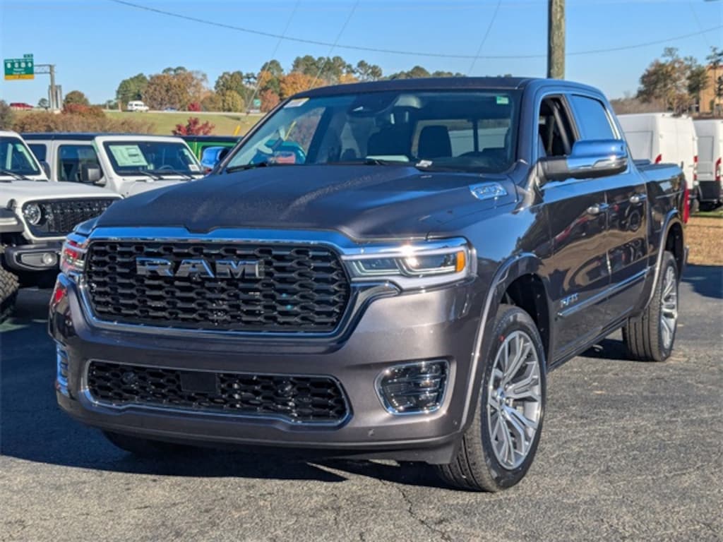Granite Crystal Metallic Clearcoat 2026 Ram 1500 Tungsten 4WD 8-Speed Automatic 3.0L I6 12-Way/1-Way Trailer Connector, 3.92 Rear Axle Ratio, 4-Wheel Disc Brakes, ABS brakes, Adjustable pedals, Air Conditioning, Alloy wheels, AM/FM radio, Apple CarPlay/Android Auto, Audio memory, Auto High-beam Headlights, Auto Power-Folding Mirrors, Auto-dimming door mirrors, Auto-Dimming Exterior Driver Mirror, Auto-dimming Rear-View mirror, Auto-leveling suspension, Automatic temperature control, Bodyside moldings, Brake assist, Bumpers: body-color, Chrome Exterior Mirrors, Compass, Delay-off headlights, Driver door bin, Driver vanity mirror, Dual front impact airbags, Dual front side impact airbags, Electronic Stability Control, Exterior Mirrors Courtesy Lamps, Exterior Parking Camera Rear, Front anti-roll bar, Front Bucket Seats, Front Center Armrest w/Storage, Front dual zone A/C, Front fog lights, Front License Plate Bracket, Front reading lights, Front wheel independent suspension, Fully automatic headlights, Garage door transmitter, Heads-Up Display, Heated door mirrors, Heated front seats, Heated rear seats, Heated steering wheel, Illuminated entry, Leather steering wheel, Low tire pressure warning, Memory seat, Multi-Function Tailgate, MyFlexCare Service Plan, Navigation System, Occupant sensing airbag, Outside temperature display, Overhead airbag, Overhead console, Panic alarm, Passenger door bin, Passenger vanity mirror, Pedal memory, Power adjustable front head restraints, Power door mirrors, Power driver seat, Power moonroof, Power passenger seat, Power steering, Power windows, Premium Leather Bucket Seats, Quick Order Package 22V Tungsten, Radio data system, Rain sensing wipers, RAM's Head Badge, Rear anti-roll bar, Rear reading lights, Rear seat center armrest, Rear step bumper, Rear window defroster, Remote keyless entry, Remote Tailgate Release, Security system, Speed control, Split folding rear seat, Steering wheel mounted audio controls, Tachometer, Telescoping steering wheel, Tilt steering wheel, Traction control, Trailer Brake Control, Trip computer, Turn signal indicator mirrors, Variably intermittent wipers, Ventilated front seats, Ventilated rear seats, Voltmeter.
