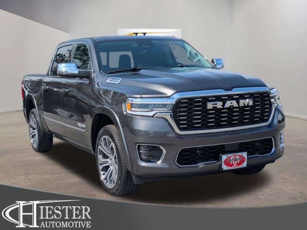 Well equipped with: Bed Utility Group (Exterior 115V AC Outlet, MOPAR 4 Adjustable Cargo Tie-Down Hooks, and Truck Bed Cargo Divider), Quick Order Package 22V Tungsten, 12-Way/1-Way Trailer Connector, 3.92 Rear Axle Ratio, 4-Wheel Disc Brakes, ABS brakes, Adjustable pedals, Air Conditioning, Alloy wheels, AM/FM radio, Apple CarPlay/Android Auto, Audio memory, Auto High-beam Headlights, Auto Power-Folding Mirrors, Auto-dimming door mirrors, Auto-Dimming Exterior Driver Mirror, Auto-dimming Rear-View mirror, Auto-leveling suspension, Automatic temperature control, Bodyside moldings, Brake assist, Bumpers: body-color, Chrome Exterior Mirrors, Compass, Delay-off headlights, Driver door bin, Driver vanity mirror, Dual front impact airbags, Dual front side impact airbags, Electronic Stability Control, Exterior Mirrors Courtesy Lamps, Exterior Mirrors with Heating Element, Exterior Mirrors with Memory, Exterior Mirrors with Supplemental Signals, Exterior Parking Camera Rear, Front anti-roll bar, Front Bucket Seats, Front Center Armrest w/Storage, Front dual zone A/C, Front fog lights, Front License Plate Bracket, Front reading lights, Front wheel independent suspension, Fully automatic headlights, Garage door transmitter, Heads-Up Display, Heated door mirrors, Heated front seats, Heated rear seats, Heated steering wheel, Illuminated entry, Leather steering wheel, Low tire pressure warning, Memory seat, Multi-Function Tailgate, MyFlexCare Service Plan, Navigation System, Occupant sensing airbag, Outside temperature display, Overhead airbag, Overhead console, Panic alarm, Passenger door bin, Passenger vanity mirror, Pedal memory, Power adjustable front head restraints, Power door mirrors, Power driver seat, Power moonroof, Power passenger seat, Power steering, Power windows, Premium Leather Bucket Seats, Radio data system, Radio: Uconnect 5 Nav with 14.4" Display, Rain sensing wipers, RAM's Head Badge, Rear anti-roll bar, Rear reading lights, Rear seat center armrest, Rear step bumper, Rear window defroster, Remote keyless entry, Remote Tailgate Release, Security system, Speed control, Split folding rear seat, Steering wheel mounted audio controls, Tachometer, Telescoping steering wheel, Tilt steering wheel, Traction control, Trailer Brake Control, Trip computer, Turn signal indicator mirrors, Variably intermittent wipers, Ventilated front seats, Ventilated rear seats, Voltmeter, and Wheels: 22" x 9" Polish/Painted with Inserts.