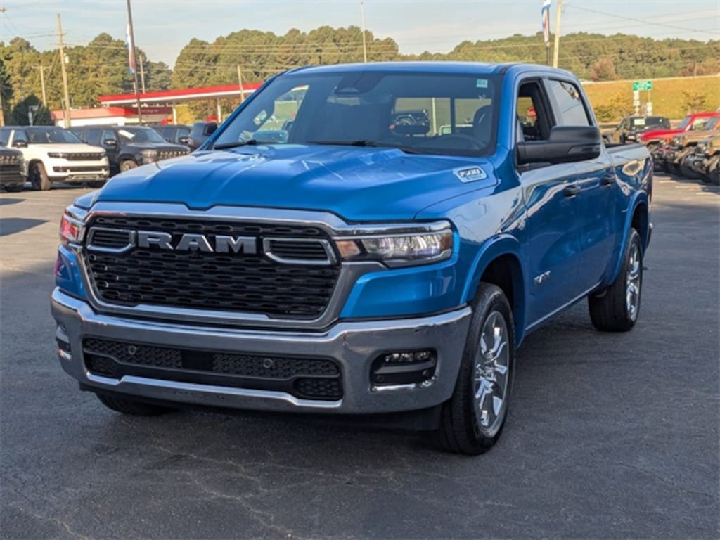 Hydro Blue Pearlcoat 2026 Ram 1500 Big Horn/Lone Star 4WD 8-Speed Automatic HEMI 5.7L V8 Multi Displacement VVT eTorque 115V Auxiliary Power Outlet, 3 Rear Seat Head Restraints, 33 Gallon Fuel Tank, 4 Way Front Headrests, 4-Wheel Disc Brakes, 400W Inverter, 48V Belt Starter Generator, 4G LTE Wi-Fi Hot Spot, 6 Speakers, ABS brakes, Air Conditioning, Alloy wheels, AM/FM radio, Apple CarPlay, Apple CarPlay/Android Auto, Auto High-beam Headlights, Auto Power-Folding Mirrors, Auto-Dimming Exterior Driver Mirror, Auto-Dimming Rear-View Mirror, Bed Utility Group, Big Horn Level 1 Equipment Group, Black Exterior Mirrors, Black Premium Power Mirrors, Body Color Fender Flares, Brake assist, Bucket Seats, Bumpers: chrome, Center Console Parts Module, Cloth Bucket Seats, Compass, Connectivity - US/Canada, Convex Wide-Angle Exterior Mirror Insert, Delay-off headlights, Deluxe Cloth Bucket Seats, Driver door bin, Dual front impact airbags, Dual front side impact airbags, Electronic Stability Control, Exterior 115V AC Outlet, Exterior Mirrors Courtesy Lamps, Front anti-roll bar, Front Bucket Seats, Front Center Armrest w/Storage, Front fog lights, Front reading lights, Front Seat Back Map Pockets, Front wheel independent suspension, Full Length Floor Console, Fully automatic headlights, Glove Box Lamp, Google Android Auto, GPS Antenna Input, Heated door mirrors, Heated Front Seats, Heated Steering Wheel, Illuminated entry, Integrated Center Stack Radio, Leather Wrapped Steering Wheel, Low tire pressure warning, Manual Adjust 4-Way Driver Seat, Manual Adjust 4-Way Front Passenger Seat, Manual Folding Exterior Mirrors, MOPAR 4 Adjustable Cargo Tie-Down Hooks, MyFlexCare Service Plan, Occupant sensing airbag, Outside temperature display, Overhead airbag, Overhead console, Panic alarm, ParkView Rear Back-Up Camera, Passenger door bin, Passenger vanity mirror, Pick-Up Box Lighting, Power 2-Way Driver Lumbar Adjust, Power Adjust 8-Way Driver Seat, Power Adjustable Pedals, Power door mirrors, Power steering, Power windows, Quick Order Package 27Z Big Horn, Radio data system, RAM Grille Badge - Chrome, Rear 60/40 Folding Seat, Rear anti-roll bar, Rear Center Armrest, Rear Power Sliding Window, Rear step bumper, Rear Wheelhouse Liners, Rear Window Defroster, Remote keyless entry, SiriusXM Radio Service, SiriusXM Satellite Radio, Speed control, Steering Wheel Mounted Audio Controls, Supplier Part Tracking (J-1), Tachometer, Telescoping steering wheel, Tilt steering wheel, Traction control, Trip computer, Universal Garage Door Opener, USB Host Flip, Variably intermittent wipers, Voltmeter, Wheels: 18" x 8" Cast-Aluminum Painted.