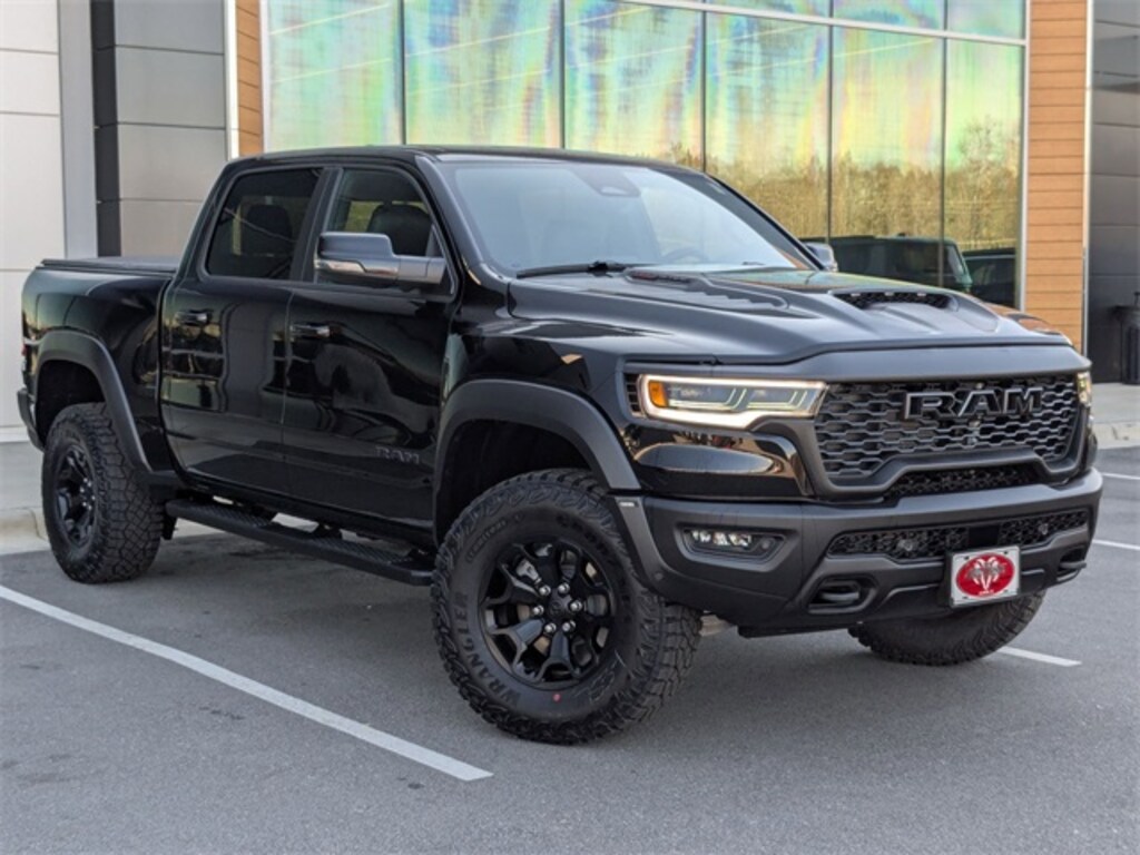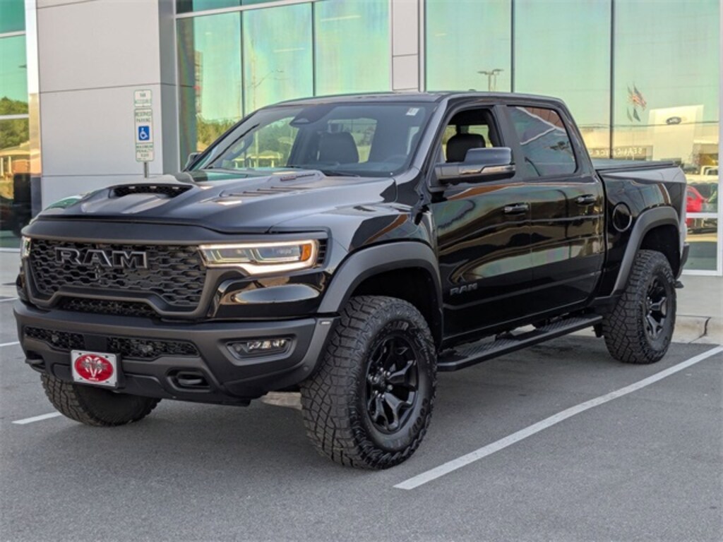 Well equipped with: Bed Utility Group (Exterior 115V AC Outlet, MOPAR 4 Adjustable Cargo Tie-Down Hooks, and MOPAR Deployable Bed Step), Quick Order Package 22Y RHO, RHO Level 1 Equipment Group (12-Way/1-Way Trailer Connector, 14.4" Touchscreen Display, 240 Amp Alternator, 4G LTE Wi-Fi Hot Spot, Connectivity - US/Canada, Disassociated Touchscreen Display, Driver Power Seat Back Massage, Driver Seat Memory, Driver/Passenger Wrapped Assist Handles, Drowsy Driver Detection, Dual Wireless Charging Pad, Evasive Steer Assist, Front Passenger Interactive Display, Front Passenger Power Seat Back Massage, Full Length Premium Upgraded Floor Console, GPS Navigation, Hands-Free Active Driving Assist System, HD Radio, Heads-Up Display, Heated Second Row Seats, Integrated Center Stack Radio, Intersection Collision Assist System, Leather/Carbon Flat-Bottom Steering Wheel, LED CHMSL Lamp, Luxury Front Door Trim Panel, Power Tailgate, Radio/Driver Seat/Mirrors/Pedals Memory, Rain Sensitive Windshield Wipers, Real Carbon Fiber Interior Accents, Rear 60/40 Folding Split Recline Seat, SiriusXM Radio Service, Surround View Camera System, Traffic Sign Recognition, USB Host Flip, Ventilated Front Seats, and Ventilated Rear Seats), 10 Speakers, 3.92 Rear Axle Ratio, 4-Wheel Disc Brakes, ABS brakes, Adaptive suspension, Adjustable pedals, Air Conditioning, Alloy wheels, AM/FM radio, Apple CarPlay/Android Auto, Auto High-beam Headlights, Auto Power-Folding Mirrors, Auto-dimming door mirrors, Auto-Dimming Exterior Driver Mirror, Auto-dimming Rear-View mirror, Automatic temperature control, Brake assist, Compass, Delay-off headlights, Dome Dual LED Reading Lamp, Driver door bin, Driver vanity mirror, Dual front impact airbags, Dual front side impact airbags, Dual-Pane Panoramic Sunroof, Electronic Stability Control, Exterior Mirrors Courtesy Lamps, Exterior Parking Camera Rear, Flareside Box, Front anti-roll bar, Front Bucket Seats, Front Center Armrest w/Storage, Front dual zone A/C, Front fog lights, Front License Plate Bracket, Front reading lights, Front wheel independent suspension, Fully automatic headlights, Garage door transmitter, Heated door mirrors, Heated front seats, Heated steering wheel, Illuminated entry, Leather Shift Knob, Leather steering wheel, Leather Trimmed Bucket Seats, Low tire pressure warning, MyFlexCare Service Plan, Navigation System, Occupant sensing airbag, Outside temperature display, Overhead airbag, Overhead console, Panic alarm, Passenger door bin, Passenger vanity mirror, Power door mirrors, Power driver seat, Power passenger seat, Power steering, Power windows, Radio data system, Rear reading lights, Rear seat center armrest, Rear step bumper, Rear window defroster, Remote keyless entry, Security system, Speed control, Split folding rear seat, Sport steering wheel, Steering wheel mounted audio controls, Tachometer, Telescoping steering wheel, Tilt steering wheel, Traction control, Tri-Fold Tonneau Cover, Trip computer, Turn signal indicator mirrors, Variably intermittent wipers, Voltmeter, and Wheels: 18" x 9" Black Paint/Polish Aluminum.