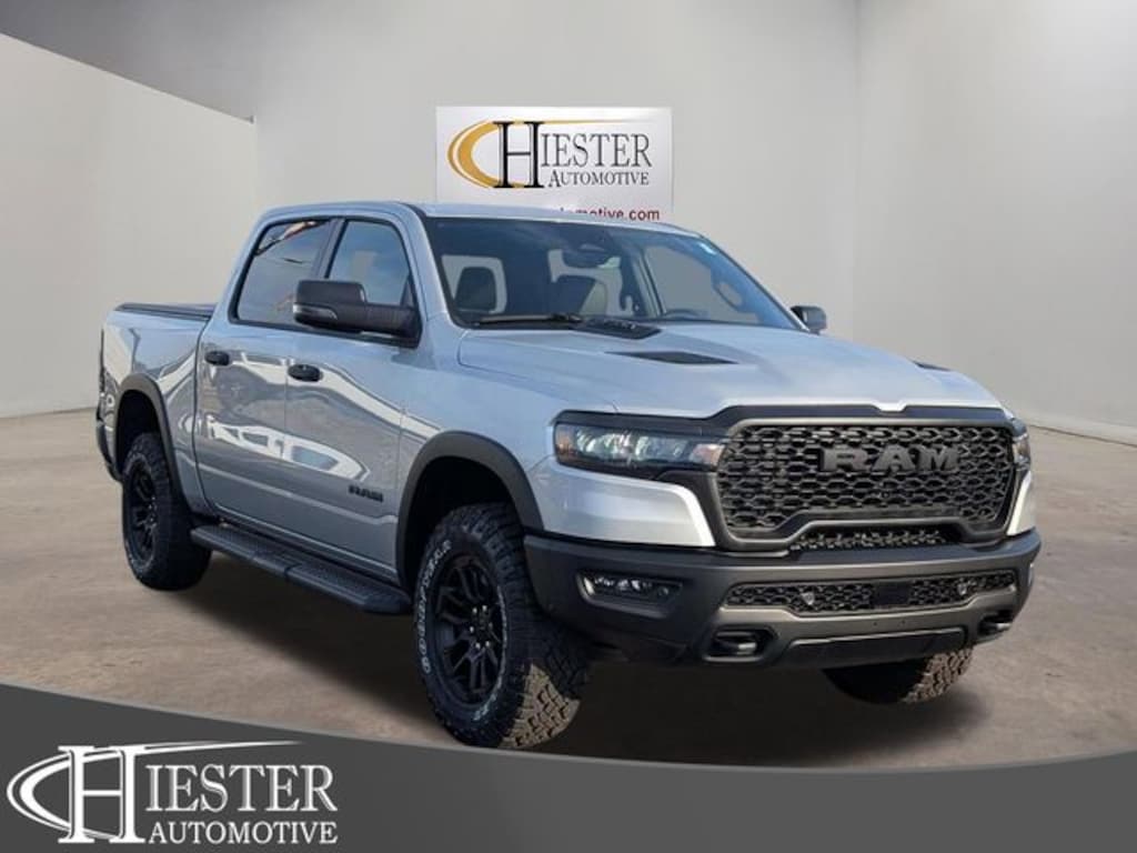 Silver Zynith 2026 Ram 1500 Rebel 4WD 8-Speed Automatic 3.0L I6 10 Speakers, 3.92 Rear Axle Ratio, 4 Way Front Headrests, 4-Wheel Disc Brakes, 4G LTE Wi-Fi Hot Spot, ABS brakes, Active Noise Control System, Air Conditioning, Alloy wheels, AM/FM radio: SiriusXM with 360L, Apple CarPlay, Apple CarPlay/Android Auto, Auto High-beam Headlights, Auto Power-Folding Mirrors, Auto-Dimming Exterior Driver Mirror, Auto-dimming Rear-View mirror, Automatic temperature control, Bed Utility Group, Black Exterior Mirrors, Black Premium Power Mirrors, Brake assist, Bucket Seats, Cloth/Vinyl Bucket Seats, Compass, Connected Travel and Traffic Services, Connectivity - US/Canada, Convex Wide-Angle Exterior Mirror Insert, Delay-off headlights, Disassociated Touchscreen Display, Driver door bin, Driver vanity mirror, Dual front impact airbags, Dual front side impact airbags, Electronic Stability Control, Exterior 115V AC Outlet, Exterior Mirrors Courtesy Lamps, Exterior Mirrors with Heating Element, Exterior Mirrors with Supplemental Signals, Front anti-roll bar, Front Bucket Seats, Front Center Armrest w/Storage, Front dual zone A/C, Front fog lights, Front reading lights, Front Seat Back Map Pockets, Front wheel independent suspension, Full Length Upgraded Floor Console, Fully automatic headlights, Garage door transmitter, Global Telematics Box Module, Google Android Auto, GPS Antenna Input, GPS Navigation, HD Radio, Heated door mirrors, Heated Front Seats, Heated front seats, Heated Steering Wheel, Heated steering wheel, Illuminated entry, Integrated Center Stack Radio, Integrated Voice Command with Bluetooth, Leather steering wheel, Low tire pressure warning, Manual Folding Exterior Mirrors, MOPAR 4 Adjustable Cargo Tie-Down Hooks, Mopar Black Tubular Side Steps, MOPAR Spray in Bedliner, MyFlexCare Service Plan, Navigation System, Occupant sensing airbag, Off-Road Information Pages, Outside temperature display, Overhead airbag, Overhead console, Panic alarm, ParkView Rear Back-Up Camera, Passenger door bin, Passenger vanity mirror, Power 2-Way Driver Lumbar Adjust, Power Adjust 8-Way Driver Seat, Power Adjustable Pedals, Power door mirrors, Power driver seat, Power steering, Power windows, Quick Order Package 21W Rebel, Radio data system, Radio: Uconnect 5 Navigation with 12.0" Display, Rear 60/40 Folding Seat, Rear anti-roll bar, Rear seat center armrest, Rear step bumper, Rear Window Defroster, Rebel Level 1 Equipment Group, Remote keyless entry, Remote Tailgate Release, SiriusXM Radio Service, SiriusXM with 360L, Speed control, Split folding rear seat, Steering wheel mounted audio controls, Tachometer, Telescoping steering wheel, Tilt steering wheel, Traction control, Tri-Fold Tonneau Cover, Trip computer, USB Host Flip, Variably intermittent wipers, Voltmeter, Wheels: 18" x 8.0" Painted Mid-Gloss Black, Wireless Charging Pad.