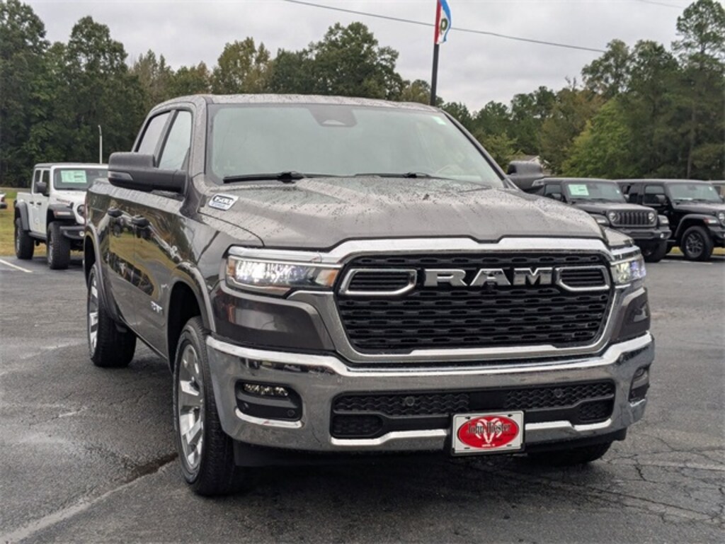 Granite Crystal Metallic Clearcoat 2026 Ram 1500 Big Horn/Lone Star 4WD 8-Speed Automatic HEMI 5.7L V8 Multi Displacement VVT eTorque 115V Auxiliary Power Outlet, 115V Auxiliary Rear Power Outlet, 12" Touchscreen Display, 3 Rear Seat Head Restraints, 33 Gallon Fuel Tank, 4 Way Front Headrests, 4-Wheel Disc Brakes, 400W Inverter, 48V Belt Starter Generator, 4G LTE Wi-Fi Hot Spot, 6 Speakers, ABS brakes, Air Conditioning, Alloy wheels, AM/FM radio, Apple CarPlay, Apple CarPlay/Android Auto, Auto High-beam Headlights, Auto Power-Folding Mirrors, Auto-Dimming Exterior Driver Mirror, Auto-Dimming Rear-View Mirror, Bed Utility Group, Big Horn Level 2 Equipment Group, Black Exterior Mirrors, Black Premium Power Mirrors, Body Color Fender Flares, Brake assist, Bucket Seats, Bumpers: chrome, Center Console Parts Module, Cloth Bucket Seats, Cluster 12" TFT Color Display, Cluster 7.0" TFT Color Display, Compass, Configurable Drive Mode, Connectivity - US/Canada, Convex Wide-Angle Exterior Mirror Insert, Delay-off headlights, Deluxe Cloth Bucket Seats, Disassociated Touchscreen Display, Driver door bin, Dual front impact airbags, Dual front side impact airbags, Electronic Stability Control, Exterior 115V AC Outlet, Exterior Mirrors Courtesy Lamps, Front anti-roll bar, Front Bucket Seats, Front Center Armrest w/Storage, Front fog lights, Front License Plate Bracket, Front reading lights, Front Seat Back Map Pockets, Front wheel independent suspension, Full Length Floor Console, Fully automatic headlights, Glove Box Lamp, Google Android Auto, GPS Antenna Input, GPS Navigation, HD Radio, Heated door mirrors, Heated Front Seats, Heated Steering Wheel, Illuminated entry, Integrated Center Stack Radio, Leather Wrapped Steering Wheel, LED Footwell Lighting, Low tire pressure warning, Manual Adjust 4-Way Driver Seat, Manual Adjust 4-Way Front Passenger Seat, Manual Folding Exterior Mirrors, MOPAR 4 Adjustable Cargo Tie-Down Hooks, MyFlexCare Service Plan, Occupant sensing airbag, Outside temperature display, Overhead airbag, Overhead console, Overhead LED Lamps, Panic alarm, ParkView Rear Back-Up Camera, Passenger door bin, Passenger vanity mirror, Pick-Up Box Lighting, Power 2-Way Driver Lumbar Adjust, Power Adjust 8-Way Driver Seat, Power Adjustable Pedals, Power door mirrors, Power steering, Power windows, Premium Overhead Console, Quick Order Package 27Z Big Horn, Radio data system, RAM Grille Badge - Chrome, RamBox Cargo Management System, Rear 60/40 Folding Seat, Rear anti-roll bar, Rear Center Armrest, Rear Power Sliding Window, Rear step bumper, Rear Wheelhouse Liners, Rear Window Defroster, Remote keyless entry, Remote Tailgate Release, Security Alarm, SiriusXM Radio Service, Speed control, Steering Wheel Mounted Audio Controls, Supplier Part Tracking (J-1), Tachometer, Telescoping steering wheel, Tilt steering wheel, Traction control, Trip computer, Universal Garage Door Opener, USB Host Flip, Variably intermittent wipers, Voltmeter, Wheels: 18" x 8" Cast-Aluminum Painted.