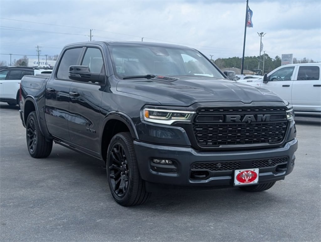Well equipped with: Bed Utility Group (Exterior 115V AC Outlet and MOPAR 4 Adjustable Cargo Tie-Down Hooks), Limited Level An Equipment Group (12-Way/1-Way Trailer Connector, 14.4" Touchscreen Display, 240 Amp Alternator, 4G LTE Wi-Fi Hot Spot, Apple CarPlay, Connected Travel and Traffic Services, Connectivity - US/Canada, Disassociated Touchscreen Display, Drowsy Driver Detection, Evasive Steer Assist, Global Telematics Box Module, Google Android Auto, GPS Antenna Input, GPS Navigation, Hands-Free Active Driving Assist System, HD Radio, Heads-Up Display, Integrated Center Stack Radio, Integrated Voice Command with Bluetooth, Intersection Collision Assist System, LED CHMSL Lamp, Radio: Uconnect 5 Nav with 14.4" Display, RamBox Cargo Management System, SiriusXM Radio Service, SiriusXM with 360L, Smartphone as a Key Capable, Surround View Camera System, Traffic Sign Recognition, Tri-Fold Tonneau Cover, and USB Host Flip), Night Edition (Accent Color Door Handles, Accent Color Premium Power Mirrors, Accent Color Tailgate Handle, Auto Power-Folding Mirrors, Auto-Dimming Exterior Driver Mirror, Black Day Light Opening Moldings, Black Exterior Truck Badging, Black Grille Surround Texture 7 Black, Black Headlamp Bezels, Black Painted Exterior Mirrors Caps, Black Tail Lamp Bezels, Body Color Front Bumper, Body Color Rear Bumper with Step Pads, Convex Wide-Angle Exterior Mirror Insert, Dual Exhaust with Black Tips, Exterior Mirrors Courtesy Lamps, Exterior Mirrors with Heating Element, Exterior Mirrors with Memory, Exterior Mirrors with Supplemental Signals, Pirelli Brand Tires, RAM Grille Badge - Black, Sport Performance Hood, and Wheels: 22" x 9" Premium Black Aluminum), Quick Order Package 22M Limited, 19 Speakers, 3.92 Rear Axle Ratio, 4-Wheel Disc Brakes, ABS brakes, Active Noise Control System, Adjustable pedals, Air Conditioning, Alloy wheels, AM/FM radio, Apple CarPlay/Android Auto, Audio memory, Auto High-beam Headlights, Auto-dimming door mirrors, Auto-dimming Rear-View mirror, Auto-leveling suspension, Automatic temperature control, Bodyside moldings, Brake assist, Bumpers: chrome, Chrome Exterior Mirrors, Compass, Delay-off headlights, Dome Dual LED Reading Lamp, Driver door bin, Driver vanity mirror, Dual front impact airbags, Dual front side impact airbags, Dual-Pane Panoramic Sunroof, Electronic Stability Control, Exterior Parking Camera Rear, Front anti-roll bar, Front Bucket Seats, Front Center Armrest w/Storage, Front dual zone A/C, Front fog lights, Front License Plate Bracket, Front reading lights, Front wheel independent suspension, Fully automatic headlights, Garage door transmitter, Genuine wood console insert, Genuine wood dashboard insert, Genuine wood door panel insert, Heated door mirrors, Heated front seats, Heated rear seats, Heated steering wheel, Illuminated entry, Leather steering wheel, LED Dome/Reading Lamp, Low tire pressure warning, Memory seat, Multi-Function Tailgate, MyFlexCare Service Plan, Navigation System, Occupant sensing airbag, Outside temperature display, Overhead airbag, Overhead console, Panic alarm, Passenger door bin, Passenger vanity mirror, Pedal memory, Power door mirrors, Power driver seat, Power passenger seat, Power steering, Power windows, Premium Quilted Leather Bucket Seats, Radio data system, Radio: Uconnect 5 Navigation with 12.0" Display, Rain sensing wipers, RAM's Head Badge, Rear anti-roll bar, Rear reading lights, Rear seat center armrest, Rear step bumper, Rear window defroster, Remote keyless entry, Remo Price includes: $1000 - 2026 National Bonus Cash . Exp. 03/02/2026 $3500 - 2026 National Retail Consumer Cash . Exp