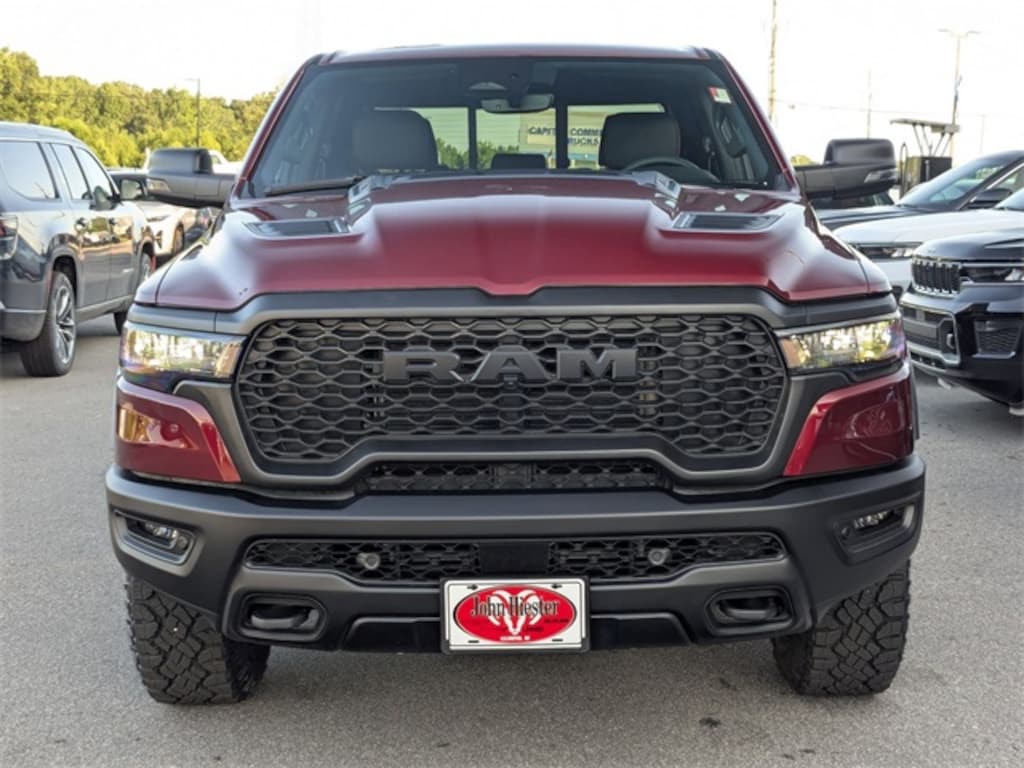 Well equipped with: Bed Utility Group (Exterior 115V AC Outlet and MOPAR 4 Adjustable Cargo Tie-Down Hooks), Quick Order Package 21W Rebel, Rebel Level 1 Equipment Group (Auto Power-Folding Mirrors, Auto-Dimming Exterior Driver Mirror, Black Exterior Mirrors, Black Premium Power Mirrors, Convex Wide-Angle Exterior Mirror Insert, Exterior Mirrors Courtesy Lamps, Exterior Mirrors w/Heating Element, Exterior Mirrors w/Supplemental Signals, Power Adjustable Pedals, Rear Window Defroster, Remote Tailgate Release, and Wireless Charging Pad), 10 Speakers, 3.92 Rear Axle Ratio, 4 Way Front Headrests, 4-Wheel Disc Brakes, 4G LTE Wi-Fi Hot Spot, ABS brakes, Air Conditioning, Alloy wheels, AM/FM radio: SiriusXM with 360L, Apple CarPlay, Apple CarPlay/Android Auto, Auto High-beam Headlights, Auto-dimming Rear-View mirror, Automatic temperature control, Brake assist, Bucket Seats, Cloth/Vinyl Bucket Seats, Compass, Connected Travel & Traffic Services, Connectivity - US/Canada, Delay-off headlights, Disassociated Touchscreen Display, Driver door bin, Driver vanity mirror, Dual front impact airbags, Dual front side impact airbags, Electronic Stability Control, Front anti-roll bar, Front Bucket Seats, Front Center Armrest w/Storage, Front dual zone A/C, Front fog lights, Front License Plate Bracket, Front reading lights, Front Seat Back Map Pockets, Front wheel independent suspension, Full Length Upgraded Floor Console, Fully automatic headlights, Garage door transmitter, Global Telematics Box Module (TBM), Google Android Auto, GPS Antenna Input, GPS Navigation, HD Radio, Heated door mirrors, Heated Front Seats, Heated front seats, Heated Steering Wheel, Heated steering wheel, Illuminated entry, Integrated Center Stack Radio, Integrated Voice Command w/Bluetooth, Leather steering wheel, Low tire pressure warning, Manual Folding Exterior Mirrors, Navigation System, Occupant sensing airbag, Off-Road Information Pages, Outside temperature display, Overhead airbag, Overhead console, Panic alarm, ParkView Rear Back-Up Camera, Passenger door bin, Passenger vanity mirror, Power 2-Way Driver Lumbar Adjust, Power Adjust 8-Way Driver Seat, Power door mirrors, Power driver seat, Power steering, Power windows, Radio data system, Radio: Uconnect 5 Nav w/12.0" Display, Rear 60/40 Folding Seat, Rear anti-roll bar, Rear seat center armrest, Rear step bumper, Remote keyless entry, SiriusXM Radio Service, SiriusXM w/360L, Speed control, Split folding rear seat, Steering wheel mounted audio controls, Tachometer, Telescoping steering wheel, Tilt steering wheel, Traction control, Trip computer, USB Host Flip, Variably intermittent wipers, Voltmeter, and Wheels: 18" x 8.0" Painted Mid-Gloss Black. Price includes: $3500 - 2026 National Retail Consumer Cash . Exp. 11/03/2025