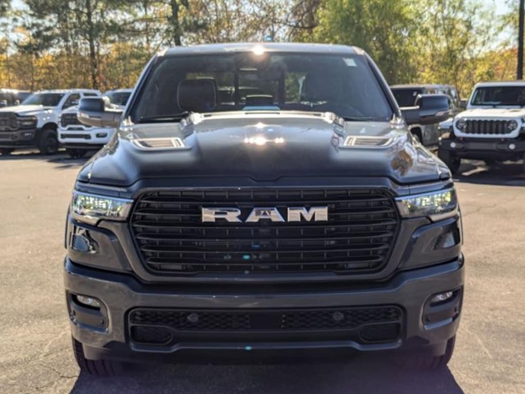 Well equipped with: Bed Utility Group (Exterior 115V AC Outlet and MOPAR 4 Adjustable Cargo Tie-Down Hooks), Laramie Level 2 Equipment Group (14.4" Touchscreen Display, 4G LTE Wi-Fi Hot Spot, Cluster 12" TFT Color Display, Connectivity - US/Canada, Front Passenger Interactive Display, GPS Navigation, Integrated Center Stack Radio, Power Tailgate, Rain Sensitive Windshield Wipers, SiriusXM Radio Service, and USB Host Flip), Quick Order Package 21H Laramie, Sport Appearance Package (Accent Color Premium Power Mirrors, Auto Power-Folding Mirrors, Auto-Dimming Exterior Driver Mirror, Black Interior Accents, Black Painted Exterior Mirrors Caps, Body Color Front Bumper, Bridgestone Brand Tires, Convex Wide-Angle Exterior Mirror Insert, Exterior Mirrors Courtesy Lamps, Grille Surround 3 Body Color Tex 2 Black, RAM Grille Badge - Chrome, and Sport Performance Hood), 10 Speakers, 3.55 Rear Axle Ratio, 4-Wheel Disc Brakes, ABS brakes, Active Noise Control System, Air Conditioning, Alloy wheels, AM/FM radio: SiriusXM with 360L, Apple CarPlay/Android Auto, Audio memory, Auto High-beam Headlights, Auto-dimming door mirrors, Auto-dimming Rear-View mirror, Automatic temperature control, Brake assist, Bumpers: chrome, Chrome Exterior Mirrors, Compass, Delay-off headlights, Dome Dual LED Reading Lamp, Driver door bin, Driver vanity mirror, Dual front impact airbags, Dual front side impact airbags, Dual-Pane Panoramic Sunroof, Electronic Stability Control, Front anti-roll bar, Front Bucket Seats, Front Center Armrest w/Storage, Front dual zone A/C, Front fog lights, Front License Plate Bracket, Front reading lights, Front wheel independent suspension, Fully automatic headlights, Garage door transmitter, Heated door mirrors, Heated front seats, Heated rear seats, Heated steering wheel, Illuminated entry, Leather steering wheel, Leather Trimmed Bucket Seats, LED Dome/Reading Lamp, Low tire pressure warning, Memory seat, MyFlexCare Service Plan, Navigation System, Occupant sensing airbag, Off-Road Information Pages, Outside temperature display, Overhead airbag, Overhead console, Panic alarm, ParkView Rear Back-Up Camera, Passenger door bin, Passenger vanity mirror, Power Deployable Running Boards, Power door mirrors, Power driver seat, Power passenger seat, Power steering, Power windows, Radio data system, Rear anti-roll bar, Rear reading lights, Rear seat center armrest, Rear step bumper, Remote keyless entry, Security system, Speed control, Split folding rear seat, Steering wheel mounted audio controls, Tachometer, Telescoping steering wheel, Tilt steering wheel, Traction control, Trailer Brake Control, Trip computer, Turn signal indicator mirrors, Variably intermittent wipers, Ventilated front seats, Voltmeter, and Wheels: 20" x 9" Premium Paint/Polish. Price includes: $1000 - 2026 National Bonus Cash . Exp. 03/31/2026 $3500 - 2026 National Retail Bonus Cash . Exp. 03/31/2026