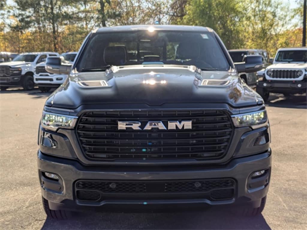 Well equipped with: Bed Utility Group (Exterior 115V AC Outlet and MOPAR 4 Adjustable Cargo Tie-Down Hooks), Laramie Level 2 Equipment Group (14.4" Touchscreen Display, 4G LTE Wi-Fi Hot Spot, Cluster 12" TFT Color Display, Connectivity - US/Canada, Front Passenger Interactive Display, GPS Navigation, Integrated Center Stack Radio, Power Tailgate, Rain Sensitive Windshield Wipers, SiriusXM Radio Service, and USB Host Flip), Quick Order Package 21H Laramie, Sport Appearance Package (Accent Color Premium Power Mirrors, Auto Power-Folding Mirrors, Auto-Dimming Exterior Driver Mirror, Black Interior Accents, Black Painted Exterior Mirrors Caps, Body Color Front Bumper, Bridgestone Brand Tires, Convex Wide-Angle Exterior Mirror Insert, Exterior Mirrors Courtesy Lamps, Grille Surround 3 Body Color Tex 2 Black, RAM Grille Badge - Chrome, and Sport Performance Hood), 10 Speakers, 3.55 Rear Axle Ratio, 4-Wheel Disc Brakes, ABS brakes, Active Noise Control System, Air Conditioning, Alloy wheels, AM/FM radio: SiriusXM with 360L, Apple CarPlay/Android Auto, Audio memory, Auto High-beam Headlights, Auto-dimming door mirrors, Auto-dimming Rear-View mirror, Automatic temperature control, Brake assist, Bumpers: chrome, Chrome Exterior Mirrors, Compass, Delay-off headlights, Dome Dual LED Reading Lamp, Driver door bin, Driver vanity mirror, Dual front impact airbags, Dual front side impact airbags, Dual-Pane Panoramic Sunroof, Electronic Stability Control, Front anti-roll bar, Front Bucket Seats, Front Center Armrest w/Storage, Front dual zone A/C, Front fog lights, Front License Plate Bracket, Front reading lights, Front wheel independent suspension, Fully automatic headlights, Garage door transmitter, Heated door mirrors, Heated front seats, Heated rear seats, Heated steering wheel, Illuminated entry, Leather steering wheel, Leather Trimmed Bucket Seats, LED Dome/Reading Lamp, Low tire pressure warning, Memory seat, MyFlexCare Service Plan, Navigation System, Occupant sensing airbag, Off-Road Information Pages, Outside temperature display, Overhead airbag, Overhead console, Panic alarm, ParkView Rear Back-Up Camera, Passenger door bin, Passenger vanity mirror, Power Deployable Running Boards, Power door mirrors, Power driver seat, Power passenger seat, Power steering, Power windows, Radio data system, Rear anti-roll bar, Rear reading lights, Rear seat center armrest, Rear step bumper, Remote keyless entry, Security system, Speed control, Split folding rear seat, Steering wheel mounted audio controls, Tachometer, Telescoping steering wheel, Tilt steering wheel, Traction control, Trailer Brake Control, Trip computer, Turn signal indicator mirrors, Variably intermittent wipers, Ventilated front seats, Voltmeter, and Wheels: 20" x 9" Premium Paint/Polish. Price includes: $3500 - 2026 National Retail Consumer Cash . Exp. 02/02/2026