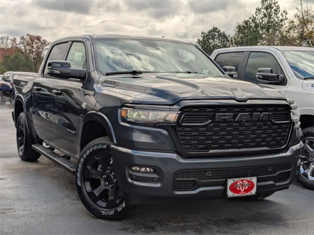 Well equipped with: Big Horn Level 2 Equipment Group (115V Auxiliary Power Outlet, 115V Auxiliary Rear Power Outlet, 12" Touchscreen Display, 2nd Row In Floor Storage Bins, 3 Rear Seat Head Restraints, 4 Way Front Headrests, 400W Inverter, 4G LTE Wi-Fi Hot Spot, 9 Amplified Speakers w/Subwoofer, Air Conditioning ATC w/Dual Zone Control, Apple CarPlay, Auto Power-Folding Mirrors, Auto-Dimming Exterior Driver Mirror, Auto-Dimming Rear-View Mirror, Black Exterior Mirrors, Black Premium Power Mirrors, Body Color Fender Flares, Bucket Seats, Center Console Parts Module, Cluster 7.0" TFT Color Display, Configurable Drive Mode, Connected Travel & Traffic Services, Connectivity - US/Canada, Convex Wide-Angle Exterior Mirror Insert, Deluxe Cloth Bucket Seats, Disassociated Touchscreen Display, Exterior Mirrors Courtesy Lamps, Exterior Mirrors w/Heating Element, Exterior Mirrors w/Supplemental Signals, Front Seat Back Map Pockets, Full Length Floor Console, Global Telematics Box Module (TBM), Glove Box Lamp, Google Android Auto, GPS Antenna Input, GPS Navigation, HD Radio, Heated Front Seats, Heated Steering Wheel, Integrated Center Stack Radio, Integrated Voice Command w/Bluetooth, Leather Wrapped Steering Wheel, LED Dome Lamp w/On/Off Switch, LED Footwell Lighting, Manual Adjust 4-Way Front Passenger Seat, Media Hub w/2 Charge Only USBs, Overhead LED Lamps, Power 2-Way Driver Lumbar Adjust, Power Adjust 8-Way Driver Seat, Power Adjustable Pedals, Premium Overhead Console, Radio: Uconnect 5 Nav w/12.0" Display, Rear 60/40 Folding Seat, Rear Center Armrest, Rear Power Sliding Window, Rear Window Defroster, Remote Tailgate Release, Security Alarm, SiriusXM Radio Service, SiriusXM w/360L, Steering Wheel Mounted Audio Controls, Sun Visors w/Illuminated Vanity Mirrors, Universal Garage Door Opener, USB Host Flip, and Wheels: 20" x 9" Aluminum Chrome Clad (WRK)), Night Edition (Accent Color Door Handles, Accent Color Premium Power Mirrors, Accent Color Tailgate Handle, Anti-Spin Differential Rear Axle, Black Exterior Truck Badging, Black Headlamp Bezels, Black Interior Accents, Black Painted Exterior Mirrors Caps, Black Tail Lamp Bezels, Body Color Front Bumper, Body Color Rear Bumper w/Step Pads, Dual Exhaust w/Black Tips, Grille Black Surround Black Mesh, RAM Grille Badge - Black, and Wheels: 20" x 9.0" Aluminum Painted Clad), Quick Order Package 27Z Big Horn, 33 Gallon Fuel Tank, 4-Wheel Disc Brakes, 48V Belt Starter Generator, 6 Speakers, ABS brakes, Air Conditioning, Alloy wheels, AM/FM radio, Apple CarPlay/Android Auto, Auto High-beam Headlights, Brake assist, Bumpers: chrome, Cloth Bucket Seats, Compass, Delay-off headlights, Dome Dual LED Reading Lamp, Driver door bin, Dual front impact airbags, Dual front side impact airbags, Dual-Pane Panoramic Sunroof, Electronic Stability Control, Exterior 115V AC Outlet, Front anti-roll bar, Front Bucket Seats, Front Center Armrest w/Storage, Front fog lights, Front License Plate Bracket, Front reading lights, Front wheel independent suspension, Fully automatic headlights, Heated door mirrors, Illuminated entry, Low tire pressure warning, Manual Adjust 4-Way Driver Seat, Manual Folding Exterior Mirrors, MyFlexCare Service Plan, Occupant sensing airbag, Outside temperature display, Overhead airbag, Overhead console, Panic alarm, ParkView Rear Back-Up Camera, Passenger door bin, Passenger vanity mirror, Power door mirrors, Power steering, Power windows, Radio data system, Radio: Price includes: $1000 - 2026 South BC Retail Bonus Cash . Exp. 12/01/2025 $3500 - 2026 National Retail Consumer Cash . Exp