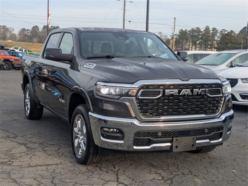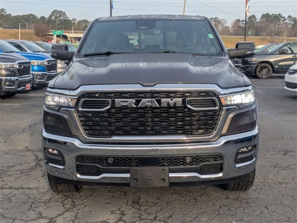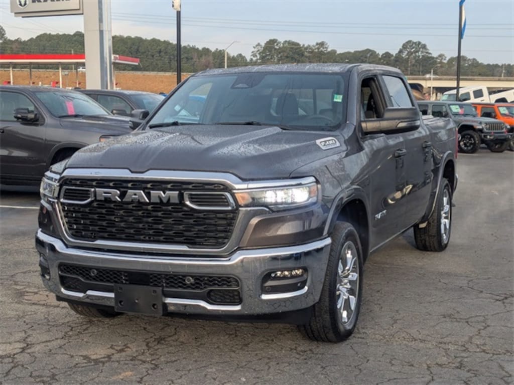 Granite Crystal Metallic Clearcoat 2026 Ram 1500 Big Horn/Lone Star 4WD 8-Speed Automatic 3.0L I6 115V Auxiliary Power Outlet, 115V Auxiliary Rear Power Outlet, 12" Touchscreen Display, 2nd Row in Floor Storage Bins, 3 Rear Seat Head Restraints, 4 Way Front Headrests, 4-Wheel Disc Brakes, 400W Inverter, 48V Belt Starter Generator, 4G LTE Wi-Fi Hot Spot, 6 Speakers, 9 Amplified Speakers with Subwoofer, ABS brakes, Air Conditioning, Air Conditioning ATC with Dual Zone Control, Alloy wheels, AM/FM radio, Apple CarPlay, Apple CarPlay/Android Auto, Auto High-beam Headlights, Auto Power-Folding Mirrors, Auto-Dimming Exterior Driver Mirror, Auto-Dimming Rear-View Mirror, Bed Utility Group, Big Horn Level 2 Equipment Group, Black Exterior Mirrors, Black Premium Power Mirrors, Body Color Fender Flares, Brake assist, Bucket Seats, Bumpers: chrome, Center Console Parts Module, Cloth Bucket Seats, Cluster 12" TFT Color Display, Cluster 7.0" TFT Color Display, Compass, Configurable Drive Mode, Connected Travel and Traffic Services, Connectivity - US/Canada, Convex Wide-Angle Exterior Mirror Insert, Delay-off headlights, Deluxe Cloth Bucket Seats, Disassociated Touchscreen Display, Driver door bin, Dual front impact airbags, Dual front side impact airbags, Electronic Stability Control, Exterior 115V AC Outlet, Exterior Mirrors Courtesy Lamps, Exterior Mirrors with Heating Element, Exterior Mirrors with Supplemental Signals, Front anti-roll bar, Front Bucket Seats, Front Center Armrest w/Storage, Front fog lights, Front License Plate Bracket, Front reading lights, Front Seat Back Map Pockets, Front wheel independent suspension, Full Length Floor Console, Fully automatic headlights, Global Telematics Box Module, Glove Box Lamp, Google Android Auto, GPS Antenna Input, GPS Navigation, HD Radio, Heated door mirrors, Heated Front Seats, Heated Steering Wheel, Illuminated entry, Integrated Center Stack Radio, Integrated Voice Command with Bluetooth, Leather Wrapped Steering Wheel, LED Dome Lamp with on/Off Switch, LED Footwell Lighting, Low tire pressure warning, Manual Adjust 4-Way Driver Seat, Manual Adjust 4-Way Front Passenger Seat, Manual Folding Exterior Mirrors, Media Hub with 2 Charge Only USBs, MOPAR 4 Adjustable Cargo Tie-Down Hooks, MOPAR Spray in Bedliner, MyFlexCare Service Plan, Occupant sensing airbag, Outside temperature display, Overhead airbag, Overhead console, Overhead LED Lamps, Panic alarm, ParkView Rear Back-Up Camera, Passenger door bin, Passenger vanity mirror, Pick-Up Box Lighting, Power 2-Way Driver Lumbar Adjust, Power Adjust 8-Way Driver Seat, Power Adjustable Pedals, Power door mirrors, Power steering, Power windows, Premium Overhead Console, Quick Order Package 21Z Big Horn, Radio data system, Radio: Uconnect 5 Navigation with 12.0" Display, Radio: Uconnect 5 W with 8.4" Display, RAM Grille Badge - Chrome, RamBox Cargo Management System, Rear 60/40 Folding Seat, Rear anti-roll bar, Rear Center Armrest, Rear Power Sliding Window, Rear step bumper, Rear Wheelhouse Liners, Rear Window Defroster, Remote keyless entry, Remote Tailgate Release, Security Alarm, SiriusXM Radio Service, SiriusXM with 360L, Speed control, Steering Wheel Mounted Audio Controls, Sun Visors with Illuminated Vanity Mirrors, Supplier Part Tracking (J-1), Tachometer, Telescoping steering wheel, Tilt steering wheel, Traction control, Trailer Brake Control, Tri-Fold Tonneau Cover, Trip computer, Universal Garage Door Opener, USB Host Flip, Variably intermittent wipers, Voltmeter, Wheels: 20" x 9" Aluminum Chrome Clad.