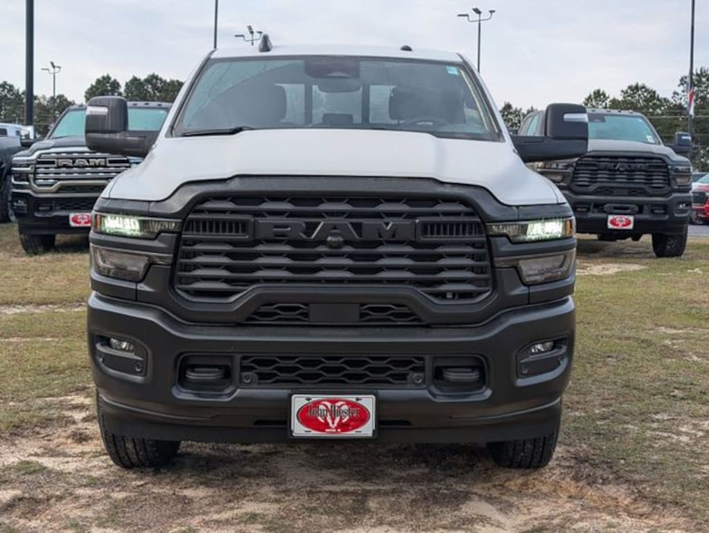 Bright White Clearcoat 2026 Ram 2500 Tradesman 4WD 8-Speed Automatic 6.7L I6 115-Volt Auxiliary Front Power Outlet, 12" Touchscreen Display, 2 Way Rear Headrest Seat, 4 Way Front Headrests, 4-Wheel Disc Brakes, 40/20/40 Split Bench Seat, 400W Inverter, 4G LTE Wi-Fi Hot Spot, 5th Wheel/Gooseneck Towing Prep Group, 6 Speakers, ABS brakes, Add Vinyl Seat, Air Conditioning, Air Conditioning ATC with Dual Zone Control, Alexa Built-in, AM/FM radio: SiriusXM, Anti-Spin Differential Rear Axle, Apple CarPlay, Apple CarPlay/Android Auto, Auto-Dimming Rear-View Mirror, Bed Convenience Group, Black Exterior Mirrors, Black Wheel Center Hub, Brake assist, Compass, Connected Travel and Traffic Services, Connectivity - US/Canada, Delay-off headlights, Disassociated Touchscreen Display, Driver door bin, Dual front impact airbags, Dual front side impact airbags, Electronic Stability Control, Emergency Vehicle Alert System (EVAS), Exterior 115V AC Outlet, For Details, Visit DriveUconnect.com, For More Info, Call 800-643-2112, Front anti-roll bar, Front Armrest with Cupholders, Front Center Armrest w/Storage, Front fog lights, Front License Plate Bracket, Front reading lights, Fully automatic headlights, Global Telematics Box Module, Google Android Auto, GPS Antenna Input, GPS Navigation, HD Radio, Illuminated entry, Integrated Voice Command with Bluetooth, LED Bed Lighting, Low tire pressure warning, Manual Adjust 4-Way Driver Seat, Manual Adjust 4-Way Front Passenger Seat, Manual Folding Exterior Mirrors, Manual Telescoping Mirrors, Mopar Black Tubular Side Steps, MOPAR Spray in Bedliner, MyFlexCare Service Diesel, Occupant sensing airbag, Off-Road Info Pages, Outside temperature display, Overhead airbag, Overhead console, Panic alarm, ParkView Rear Back-Up Camera, Passenger door bin, Passenger vanity mirror, Power steering, Power windows, Quick Order Package 24A Tradesman, Radio data system, Radio: Uconnect 5 Navigation with 12.0" Display, Radio: Uconnect 5 with 8.4" Display, Rear anti-roll bar, Rear Folding Seat, Rear Power Sliding Window, Rear step bumper, Rear window defroster, Remote keyless entry, Remote USB Port - Charge Only, Selectable Tire Fill Alert, SiriusXM Radio Service, SiriusXM with 360L, Speed control, Storage Tray, Tachometer, Tilt steering wheel, Tinted Acoustic Windshield Glass, Traction control, Tradesman Level 1 Equipment Group, Trailer Tow Pages, Variably intermittent wipers, Voltmeter, Wheels: 17" x 7.5" Black Steel Styled, Wheels: 18" x 8.0" Black Painted Steel.