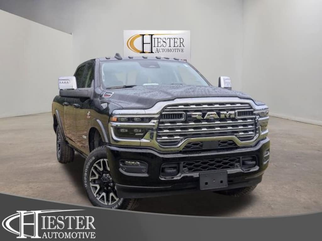 Diamond Black Crystal Pearlcoat 2026 Ram 2500 Limited 4WD 8-Speed Automatic 6.7L I6 ABS brakes, Active Cruise Control, Alloy wheels, Compass, Electronic Stability Control, Front dual zone A/C, Heated door mirrors, Heated front seats, Heated rear seats, Illuminated entry, Low tire pressure warning, Navigation System, ParkView Rear Back-Up Camera, Remote keyless entry, Traction control, 17 Speakers, 3.73 Axle Ratio, 4-Wheel Disc Brakes, Adjustable pedals, Air Conditioning, AM/FM radio: SiriusXM with 360L, Apple CarPlay/Android Auto, Audio memory, Auto High-beam Headlights, Auto-dimming door mirrors, Auto-dimming Rear-View mirror, Automatic temperature control, Black Wheel Center Hub, Bodyside moldings, Brake assist, Bumpers: body-color, Delay-off headlights, Driver door bin, Driver vanity mirror, Dual front impact airbags, Dual front side impact airbags, Front anti-roll bar, Front Bucket Seats, Front Center Armrest w/Storage, Front fog lights, Front reading lights, Front Seat Back Map Pockets, Fully automatic headlights, Garage door transmitter, Genuine wood console insert, Genuine wood dashboard insert, Genuine wood door panel insert, harman/kardon® Speakers, Heated steering wheel, Leather steering wheel, LED Bed Lighting, Memory seat, Occupant sensing airbag, Outside temperature display, Overhead airbag, Overhead console, Panic alarm, Passenger door bin, Passenger vanity mirror, Pedal memory, Power door mirrors, Power driver seat, Power passenger seat, Power steering, Power windows, Radio data system, Radio: Uconnect 5 Nav with 14.4" Display, Rain sensing wipers, Rear anti-roll bar, Rear reading lights, Rear seat center armrest, Rear step bumper, Rear window defroster, Security system, Speed control, Split folding rear seat, Steering wheel mounted audio controls, Tachometer, Tilt steering wheel, Trip computer, Turn signal indicator mirrors, Ultra Premium Leather Seats, Variably intermittent wipers, Vendor Painted Cargo Box, Vendor Painted Cargo Box Tracking, Ventilated Front Seats, Ventilated front seats, Voltmeter, Wheels: 20" x 8.0" Diamond Cut Aluminum with Black Pt Pockets, ABS brakes, Active Cruise Control, Alloy wheels, Compass, Electronic Stability Control, Front dual zone A/C, Heated door mirrors, Heated front seats, Heated rear seats, Illuminated entry, Low tire pressure warning, Navigation System, ParkView Rear Back-Up Camera, Remote keyless entry, Traction control.
