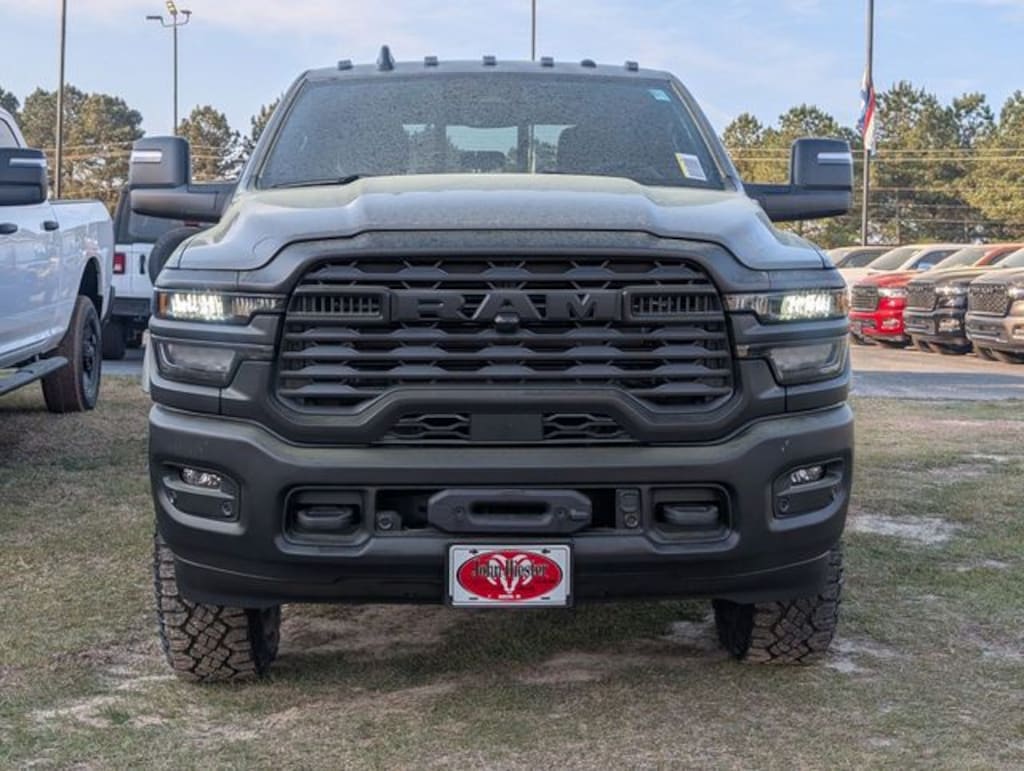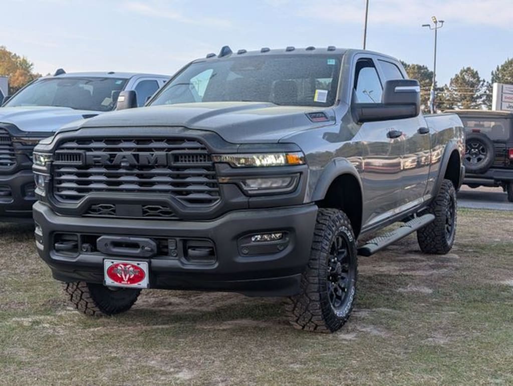Ceramic Gray Clearcoat 2026 Ram 2500 Tradesman 4WD 8-Speed Automatic 6.4L V8 115-Volt Auxiliary Front Power Outlet, 12" Touchscreen Display, 2 Way Rear Headrest Seat, 4 Way Front Headrests, 4-Wheel Disc Brakes, 40/20/40 Split Bench Seat, 400W Inverter, 4G LTE Wi-Fi Hot Spot, 6 Speakers, ABS brakes, Air Conditioning, Air Conditioning ATC with Dual Zone Control, Alexa Built-in, AM/FM radio: SiriusXM, Apple CarPlay, Apple CarPlay/Android Auto, Auto-Dimming Rear-View Mirror, Base Engine Controller, Bed Convenience Group, Black Exterior Mirrors, Black Wheel Center Hub, Black Wheel Flares, Brake assist, Clearance Lamps, Compass, Connected Travel and Traffic Services, Connectivity - US/Canada, Delay-off headlights, Disassociated Touchscreen Display, Driver door bin, Dual front impact airbags, Dual front side impact airbags, Electronic Stability Control, Emergency Vehicle Alert System (EVAS), Exterior 115V AC Outlet, For Details, Visit DriveUconnect.com, For More Info, Call 800-643-2112, Front anti-roll bar, Front Armrest with Cupholders, Front Center Armrest w/Storage, Front Disconnecting Stabilizer Bar, Front Electric Winch, Front fog lights, Front License Plate Bracket, Front Performance Tuned Shock Absorbers, Front reading lights, Fuel Tank Skid Plate Shield, Fully automatic headlights, Global Telematics Box Module, Google Android Auto, GPS Antenna Input, GPS Navigation, HD Radio, Hill Descent Control, Illuminated entry, Integrated Voice Command with Bluetooth, LED Bed Lighting, Low tire pressure warning, Manual Adjust 4-Way Driver Seat, Manual Adjust 4-Way Front Passenger Seat, Manual Folding Exterior Mirrors, Manual Telescoping Mirrors, Mopar Black Tubular Side Steps, MOPAR Spray in Bedliner, MyFlexCare Service Plan, Occupant sensing airbag, Off-Road Info Pages, Outside temperature display, Overhead airbag, Overhead console, Panic alarm, ParkSense Front/Rear Park Assist System, ParkView Rear Back-Up Camera, Passenger door bin, Passenger vanity mirror, Powder Coated Front Bumper, Powder Coated Rear Bumper, Power steering, Power Wagon Package, Power windows, Quick Order Package 2UA Tradesman, Radio data system, Radio: Uconnect 5 Navigation with 12.0" Display, Radio: Uconnect 5 with 8.4" Display, Raised Ride Height, RAM Articulink Suspension, Rear anti-roll bar, Rear Folding Seat, Rear Performance Tuned Shock Absorbers, Rear Power Sliding Window, Rear step bumper, Rear Wheelhouse Liners, Rear window defroster, Remote keyless entry, Remote USB Port - Charge Only, Selectable Tire Fill Alert, SiriusXM Radio Service, SiriusXM with 360L, Speed control, Storage Tray, Tachometer, Tilt steering wheel, Tinted Acoustic Windshield Glass, Traction control, Tradesman Level 1 Equipment Group, Trailer Tow Pages, Tru-Lok Front and Rear Axles, Variably intermittent wipers, Voltmeter, Wheels: 17" x 7.5" Black Steel Styled, Wheels: 17" x 8.0" Black Painted Aluminum.