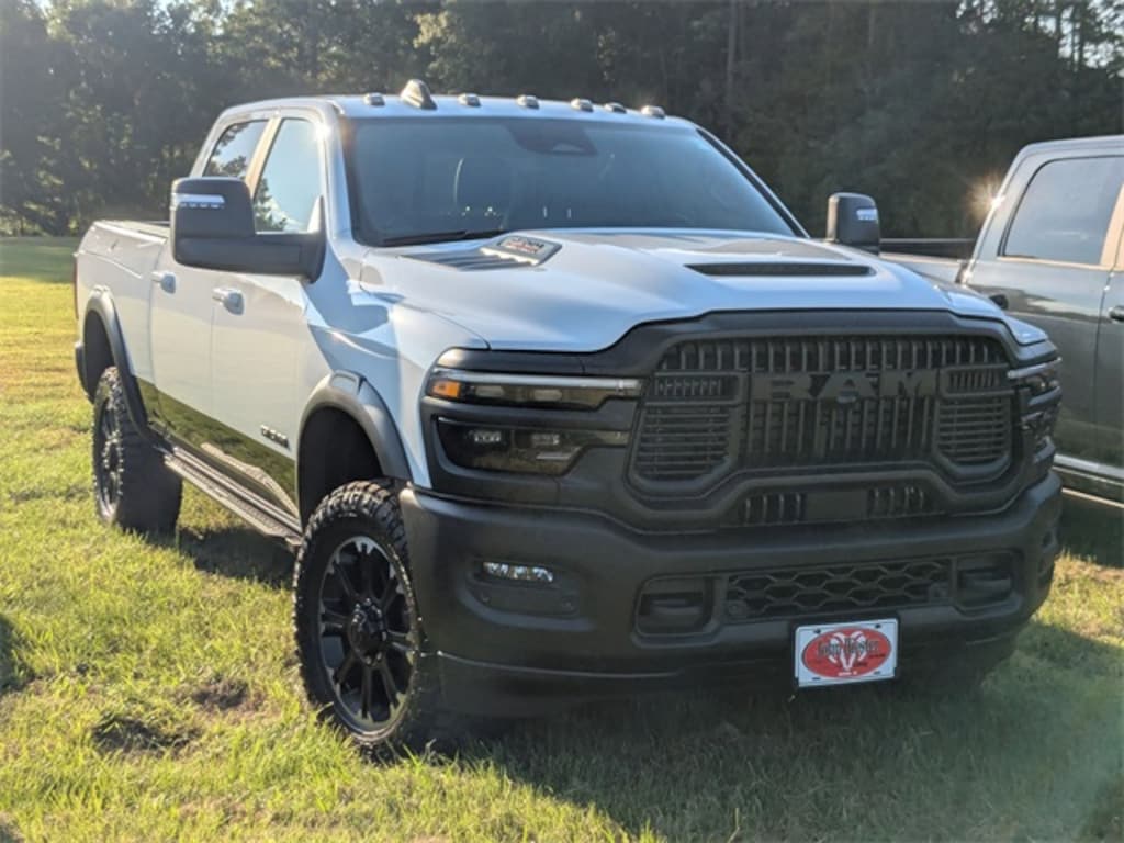 Bright White Clearcoat 2026 Ram 2500 Rebel 4WD 8-Speed Automatic 6.4L V8 115V Auxiliary Rear Power Outlet, 2 Way Rear Headrest Seat, 3.73 Axle Ratio, 4 Adjustable Cargo Tie-Down Hooks, 4 Way Front Headrests, 4-Wheel Disc Brakes, 4G LTE Wi-Fi Hot Spot, 6 Speakers, ABS brakes, Adjustable pedals, Air Conditioning, Alloy wheels, AM/FM radio: SiriusXM with 360L, Apple CarPlay, Apple CarPlay/Android Auto, Auto Dim Exterior Mirror, Auto High Beam Headlamp Control, Auto Power-Folding Mirrors, Auto-Dimming Exterior Passenger Mirror, Auto-dimming Rear-View mirror, Automatic temperature control, Bed Utility Group, Black Exterior Mirrors, Black Wheel Center Hub, Block heater, Body Color Door Handles, Brake assist, Bucket Seats, Cloth Heated Power Bench Seat, Compass, Connectivity - US/Canada, Delay-off headlights, Disassociated Touchscreen Display, Driver door bin, Dual front impact airbags, Dual front side impact airbags, Dual Wireless Charging Pad, Electronic Stability Control, Emergency Vehicle Alert System (EVAS), Exterior Mirrors Courtesy Lamps, Folding Flat Load Floor Storage, For Details, Visit DriveUconnect.com, For More Info, Call 800-643-2112, Front anti-roll bar, Front Center Armrest w/Storage, Front Door Locks 2-Door Passive Entry, Front dual zone A/C, Front fog lights, Front License Plate Bracket, Front reading lights, Front Seat Back Map Pockets, Full Length Upgraded Floor Console, Fully automatic headlights, Google Android Auto, GPS Antenna Input, GPS Navigation, HD Radio, Heated door mirrors, Heated Front Seats, Heated front seats, Heated Second Row Seats, Heated Steering Wheel, Heated steering wheel, High Back Seats, Illuminated entry, Leather steering wheel, LED Bed Lighting, LED Interior Lighting, Low tire pressure warning, Mirror Running Lights, MOPAR Deployable Bed Step, MyFlexCare Service Plan, Navigation System, Occupant sensing airbag, Off-Road Info Pages, Outside temperature display, Overhead airbag, Overhead console, Overhead LED Lamps, Panic alarm, ParkView Rear Back-Up Camera, Passenger door bin, Passenger vanity mirror, Power 2-Way Driver Lumbar Adjust, Power 2-Way Passenger Lumbar Adjust, Power Adjust 8-Way Driver Seat, Power Adjust 8-Way Front Passenger Seat, Power Adjust Mirrors, Power door mirrors, Power driver seat, Power steering, Power Telescoping Mirrors, Power windows, Power-Adjustable Convex Aux Mirrors, Premium Overhead Console, Quick Order Package 2UR Rebel, Radio data system, Radio/Driver Seat/Mirrors/Pedals Memory, Rain Sensitive Windshield Wipers, RamBox Cargo Management System, Rear 60/40 Folding Seat, Rear anti-roll bar, Rear seat center armrest, Rear step bumper, Rear window defroster, Rebel Level 1 Equipment Group, Remote keyless entry, Security system, Selectable Tire Fill Alert, SiriusXM Radio Service, Speed control, Split folding rear seat, Sport Performance Hood, Steering wheel mounted audio controls, Tachometer, Tilt steering wheel, Traction control, Trailer Tow Pages, Trip computer, Truck Bed Cargo Divider, Turn signal indicator mirrors, Universal Garage Door Opener, Variably intermittent wipers, Vendor Painted Cargo Box, Vendor Painted Cargo Box Tracking, Ventilated Front Seats, Ventilated front seats, Voltmeter, Wheels: 20" x 8.0" Black Diamond Cut Aluminum.