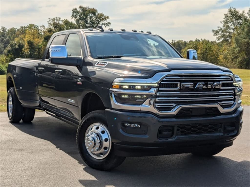 Well equipped with: Laramie Level 2 Plus Equipment Group (#1 Seat Foam Cushion, 115V Auxiliary Rear Power Outlet, 14.4" Touchscreen Display, 17 Speaker harman/kardon Premium Sound, 2 Way Rear Headrest Seat, 2nd Row In Floor Storage Bins, 4 Way Front Headrests, 4G LTE Wi-Fi Hot Spot, Active Lane Management System, Adaptive Steering System, Alexa Built-In, Apple CarPlay, Auto Adjust In Reverse Exterior Mirrors, Auto Dimming Exterior Passenger Mirror, Auto High Beam Headlamp Control, Auto Power-Folding Mirrors, Auto-Dimming Exterior Mirrors, Bucket Seats, Chrome Exterior Mirrors, Connected Travel & Traffic Services, Connectivity - US/Canada, CTR Stop Lamp w/Cargo View Camera, Disassociated Touchscreen Display, Drowsy Driver Detection, Dual Wireless Charging Pad, Emergency Vehicle Alert System (EVAS), Exterior Mirrors Courtesy Lamps, Exterior Mirrors w/Heating Element, Exterior Mirrors w/Memory, Exterior Mirrors w/Supplemental Signals, Foam Bottle Insert (Door Trim Panel), Folding Flat Load Floor Storage, For Details Visit DriveUconnect.com, For More Info, Call 800-643-2112, Forward & Reverse Utility Lights, Front Seat Back Map Pockets, Full Length Upgraded Floor Console, Global Telematics Box Module (TBM), Google Android Auto, GPS Antenna Input, GPS Navigation, HD Radio, Heated Front Seats, Heated Steering Wheel, High Back Seats, Integrated Voice Command w/Bluetooth, Leather Trimmed Bucket Seats, LED Bed Lighting, Mirror Running Lights, MOPAR Deployable Bed Step, MOPAR Spray In Bedliner, Off-Road Information Pages, Power 2-Way Driver Lumbar Adjust, Power 2-Way Passenger Lumbar Adjust, Power Adjust 8-Way Driver Seat, Power Adjust 8-Way Front Passenger Seat, Power Adjust Mirrors, Power Adjustable Pedals w/Memory, Power Deployable Running Boards, Power Heat Fold Memory Telescopic Mirrors, Power Telescoping Mirrors, Power-Adjustable Convex Aux Mirrors, Radio: Uconnect 5 Nav w/14.4" Display, Rain Sensitive Windshield Wipers, Rear 60/40 Folding Seat, Remote Tailgate Release, Selectable Tire Fill Alert, SiriusXM Radio Service, SiriusXM w/360L, Traffic Sign Recognition, and Trailer Tow Pages), Quick Order Package 24H Laramie, 10 Speakers, 3.73 Axle Ratio, 4-Wheel Disc Brakes, 50 Gallon Fuel Tank, 5th Wheel/Gooseneck Towing Prep Group, 6000# Front Axle w/Hub Ext, ABS brakes, Air Conditioning, Alloy wheels, AM/FM radio: SiriusXM with 360L, Apple CarPlay/Android Auto, Auto Level Rear Air Suspension, Auto-dimming Rear-View mirror, Automatic temperature control, Black Wheel Center Hub, Box & Rear Fender Clearance Lamps, Brake assist, Bumpers: body-color, Center Hub, Clearance Lamps, Compass, Dash Pass Thru Wire Circuits, Delay-off headlights, Delete Deployable Bed Step, Driver door bin, Driver vanity mirror, Dual front impact airbags, Dual front side impact airbags, Dual Rear Wheels, Electronic Stability Control, Front anti-roll bar, Front Center Armrest w/Storage, Front dual zone A/C, Front fog lights, Front License Plate Bracket, Front reading lights, Fully automatic headlights, Garage door transmitter, Heated door mirrors, Heated front seats, Heated steering wheel, I/P Mounted Auxiliary Switches, Illuminated entry, Leather Trim 40/20/40 Bench Seat, Low tire pressure warning, MyFlexCare Service Diesel, Navigation System, Nexen Brand Tires, Occupant sensing airbag, Outside temperature display, Overhead airbag, Overhead console, Panic alarm, ParkView Rear Back-Up Camera, Passenger door bin, Passenger vanity mirror, Power door mirrors, Power driver seat, Power passenger seat, Power steering, Power Sunroof, Power windows, Radio data system Price includes: $1000 - 2026 National Bonus Cash . Exp