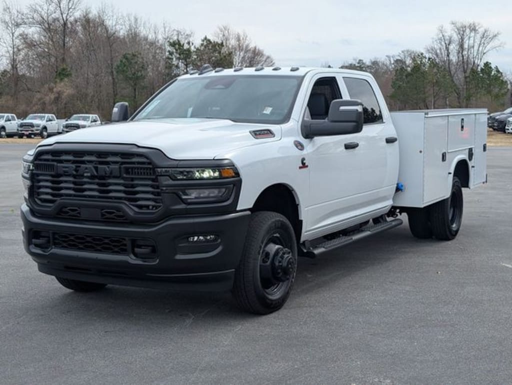 Well equipped with: Quick Order Package 25A Tradesman, Tradesman Level 1 Equipment Group (Black Exterior Mirrors, Black Power Heated Fold Telescope Mirrors, Exterior Mirrors Courtesy Lamps, Manual Folding Exterior Mirrors, Manual Telescoping Mirrors, Mirror Running Lights, Power Adjust Mirrors, Power-Adjustable Convex Aux Mirrors, Rear Window Defroster, Trailer Brake Control, and Trailer Light Check), 11.50" Dual Wheels Rear Axle, 2 Way Rear Headrest Seat, 4-Wheel Disc Brakes, 40/20/40 Split Bench Seat, 4G LTE Wi-Fi Hot Spot, 6 Speakers, ABS brakes, Air Conditioning, AM/FM radio: SiriusXM, Apple CarPlay, Apple CarPlay/Android Auto, Black Wheel Center Hub, Center Hub, Compass, Connectivity - US/Canada, Delay-off headlights, Driver door bin, Dual front impact airbags, Dual Rear Wheels, Electronic Stability Control, Emergency communication system: RAM Connect, For Details, Visit DriveUconnect.com, Front anti-roll bar, Front Center Armrest w/Storage, Front fog lights, Front License Plate Bracket, Front reading lights, Fully automatic headlights, Google Android Auto, GPS Antenna Input, HD Vinyl 40/20/40 Split Bench Seat, Illuminated entry, Manual Adjust 4-Way Driver Seat, Manual Adjust 4-Way Front Passenger Seat, MyFlexCare Service Diesel, Nexen Brand Tires, Occupant sensing airbag, Outside temperature display, Overhead console, Panic alarm, ParkView Rear Back-Up Camera, Passenger door bin, Passenger vanity mirror, Power steering, Power windows, Radio data system, Rear anti-roll bar, Rear Folding Seat, Remote keyless entry, Remote USB Port - Charge Only, Speed control, Storage Tray, Tachometer, Tilt steering wheel, Traction control, Variably intermittent wipers, Voltmeter, Wheels: 17" x 6.0" Black Painted Steel, and Wheels: 18" x 8.0" Steel PainteD. Price includes: $2500 - 2026 National Bonus Cash . Exp. 03/31/2026