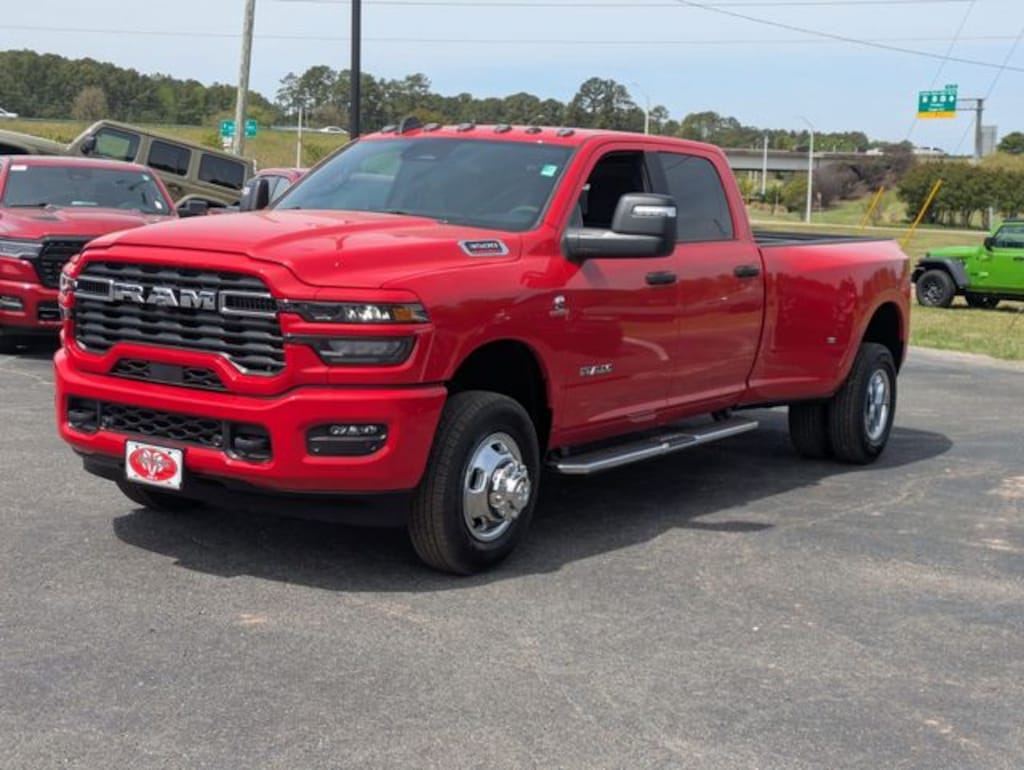 Flame Red Clearcoat 2026 Ram 3500 Big Horn 4WD 8-Speed Automatic 6.7L I6 12" Touchscreen Display, 2 Way Rear Headrest Seat, 2nd Row in Floor Storage Bins, 4 Way Front Headrests, 4-Wheel Disc Brakes, 40/20/40 Split Bench Seat, 4G LTE Wi-Fi Hot Spot, 50 Gallon Fuel Tank, 5th Wheel/Gooseneck Towing Prep Group, 6 Speakers, 6000# Front Axle with Hub Extension, 9 Alpine Speakers with Subwoofer, ABS brakes, Air Conditioning, Air Conditioning ATC with Dual Zone Control, Alexa Built-in, Alloy wheels, AM/FM radio: SiriusXM, Apple CarPlay, Apple CarPlay/Android Auto, Auto Power-Folding Mirrors, Auto-Dimming Rear-View Mirror, Big Horn Level 1 Plus Equipment Group, Black Exterior Mirrors, Black Interior Accents, Body Color Grille Surround, Box and Rear Fender Clearance Lamps, Brake assist, Bright Wheel Skins, Bumpers: chrome, Center Hub, Chrome Flat Cab-Length Side Steps, Clearance Lamps, Cloth 40/20/40 Bench Seat, Cloth 40/20/40 Premium Bench Seat, Compass, Connected Travel and Traffic Services, Connectivity - US/Canada, Dash Pass Thru Wire Circuits, Delay-off headlights, Disassociated Touchscreen Display, Driver door bin, Dual front impact airbags, Dual front side impact airbags, Dual Glove Boxes, Dual Rear Wheels, Electronic Stability Control, Emergency Vehicle Alert System (EVAS), Exterior Mirrors Courtesy Lamps, Exterior Mirrors with Heating Element, Exterior Mirrors with Supplemental Signals, Foam Bottle Insert (door Trim Panel), Folding Flat Load Floor Storage, Footwell Courtesy Lamp, For Details Visit DriveUconnect.com, For More Info, Call 800-643-2112, Forward and Reverse Utility Lights, Front anti-roll bar, Front Armrest with Cupholders, Front Center Armrest w/Storage, Front Center Seat Cushion Storage, Front fog lights, Front License Plate Bracket, Front reading lights, Front Seat Back Map Pockets, Fully automatic headlights, Global Telematics Box Module, Glove Box Lamp, Google Android Auto, GPS Antenna Input, GPS Navigation, HD Radio, Heated door mirrors, Heated Front Seats, Heated Seats and Wheel Group, Heated Steering Wheel, Illuminated entry, Instrument Panel Mounted Auxiliary Switches, Integrated Voice Command with Bluetooth, LED Bed Lighting, Locking Lower Glove Box, Low tire pressure warning, Luxury Steering Wheel, Manual Adjust 4-Way Driver Seat, Manual Adjust 4-Way Front Passenger Seat, Mirror Running Lights, MOPAR Deployable Bed Step, MOPAR Spray in Bedliner, MyFlexCare Service Diesel, Nexen Brand Tires, Occupant sensing airbag, Off-Road Information Pages, Outside temperature display, Overhead airbag, Overhead console, Painted Front Bumper, Painted Rear Bumper, Panic alarm, ParkView Rear Back-Up Camera, Passenger door bin, Passenger vanity mirror, Power 2-Way Driver Lumbar Adjust, Power Adjust 8-Way Driver Seat, Power Adjust Mirrors, Power door mirrors, Power Heated Fold Telescopic Mirrors, Power steering, Power Telescoping Mirrors, Power windows, Power-Adjustable Convex Aux Mirrors, Quick Order Package 24Z Big Horn, Radio data system, Radio: Uconnect 5 Navigation with 12.0" Display, Radio: Uconnect 5 with 8.4" Display, Rear 60/40 Folding Seat, Rear Dome with on/Off Switch Lamp, Rear Folding Seat, Rear seat center armrest, Rear step bumper, Rear Wheelhouse Liners, Rear window defroster, Remote keyless entry, Remote Start System, Remote USB Port - Charge Only, Selectable Tire Fill Alert, SiriusXM Radio Service, SiriusXM with 360L, Speed control, Sport Appearance Package, Sport Decal, Steering Wheel Mounted Audio Controls, Storage Tray, Tachometer, Tilt steering wheel, Traction control, Trailer Tow Pages, Trip computer, Turn signal indicator mirrors, Variably intermittent wipers, Voltmeter, Wheels: 17" x 6.0" Polished Aluminum, Wheels: 17" x 6.0" Steel Chrome Clad, Wheels: 18" x 8.0" Polished Aluminum.