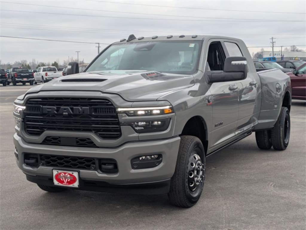 Well equipped with: Laramie Level 2 Plus Equipment Group (#1 Seat Foam Cushion, 115V Auxiliary Rear Power Outlet, 14.4" Touchscreen Display, 17 Speaker Harman/Kardon Premium Sound, 2 Way Rear Headrest Seat, 4 Way Front Headrests, 4G LTE Wi-Fi Hot Spot, Active Lane Management System, Adaptive Steering System, Alexa Built-in, Apple CarPlay, Auto Adjust in Reverse Exterior Mirrors, Auto Dim Exterior Mirror, Auto High Beam Headlamp Control, Auto Power-Folding Mirrors, Auto-Dimming Exterior Passenger Mirror, Bucket Seats, Center Stop Lamp with Cargo View Camera, Connected Travel and Traffic Services, Connectivity - US/Canada, Disassociated Touchscreen Display, Drowsy Driver Detection, Dual Wireless Charging Pad, Emergency Vehicle Alert System (EVAS), Exterior Mirrors Courtesy Lamps, Exterior Mirrors with Heating Element, Exterior Mirrors with Memory, Exterior Mirrors with Supplemental Signals, Foam Bottle Insert (door Trim Panel), For Details Visit DriveUconnect.com, For More Info, Call 800-643-2112, Forward and Reverse Utility Lights, Front Seat Back Map Pockets, Full Length Upgraded Floor Console, Global Telematics Box Module, Google Android Auto, GPS Antenna Input, GPS Navigation, HD Radio, Heated Front Seats, Heated Steering Wheel, High Back Seats, Integrated Voice Command with Bluetooth, Leather Trimmed Bucket Seats, LED Bed Lighting, Mirror Running Lights, MOPAR Deployable Bed Step, MOPAR Spray in Bedliner, Off-Road Information Pages, Power 2-Way Driver Lumbar Adjust, Power 2-Way Passenger Lumbar Adjust, Power Adjust 8-Way Driver Seat, Power Adjust 8-Way Front Passenger Seat, Power Adjust Mirrors, Power Adjustable Pedals with Memory, Power Deployable Running Boards, Power Heated Folding Telescopic Mirrors with Memory, Power Telescoping Mirrors, Power-Adjustable Convex Aux Mirrors, Radio: Uconnect 5 Nav with 14.4" Display, Radio/Driver Seat/Mirrors/Pedals Memory, Rain Sensitive Windshield Wipers, Rear 60/40 Folding Seat, Remote Tailgate Release, Selectable Tire Fill Alert, SiriusXM Radio Service, SiriusXM with 360L, Traffic Sign Recognition, Trailer Tow Pages, and Ventilated Front Seats), Night Edition (Black Exterior Truck Badging, Black Wheel Center Hub, Body Color Grille Surround, Gloss Black Grille Billets/Accents, and Sport Performance Hood), Quick Order Package 24H Laramie, 10 Speakers, 3.42 Axle Ratio, 4-Wheel Disc Brakes, 5th Wheel/Gooseneck Towing Prep Group, 6,000 lbs Front Axle with Hub Extension, ABS brakes, Air Conditioning, Alloy wheels, AM/FM radio: SiriusXM with 360L, Apple CarPlay/Android Auto, Auto-dimming Rear-View mirror, Automatic temperature control, Box and Rear Fender Clearance Lamps, Brake assist, Bumpers: body-color, Center Hub, Chrome Exterior Mirrors, Clearance Lamps, Compass, Dash Pass Thru Wire Circuits, Delay-off headlights, Driver door bin, Driver vanity mirror, Dual front impact airbags, Dual front side impact airbags, Dual Rear Wheels, Electronic Stability Control, Front anti-roll bar, Front Center Armrest w/Storage, Front dual zone A/C, Front fog lights, Front License Plate Bracket, Front reading lights, Fully automatic headlights, Garage door transmitter, Heated door mirrors, Heated front seats, Heated steering wheel, Illuminated entry, Instrument Panel Mounted Auxiliary Switches, Leather Trim 40/20/40 Bench Seat, Low tire pressure warning, My FlexCare Service Diesel, Navigation System, Occupant sensing airbag, Outside temperature display, Overhead airbag, Overhead console, Panic alarm, ParkView Rear Back-Up Camera, Passenger door bin, Passenger vanity mirror, Power door mirrors, Powe Price includes: $1000 - 2026 National Bonus Cash . Exp