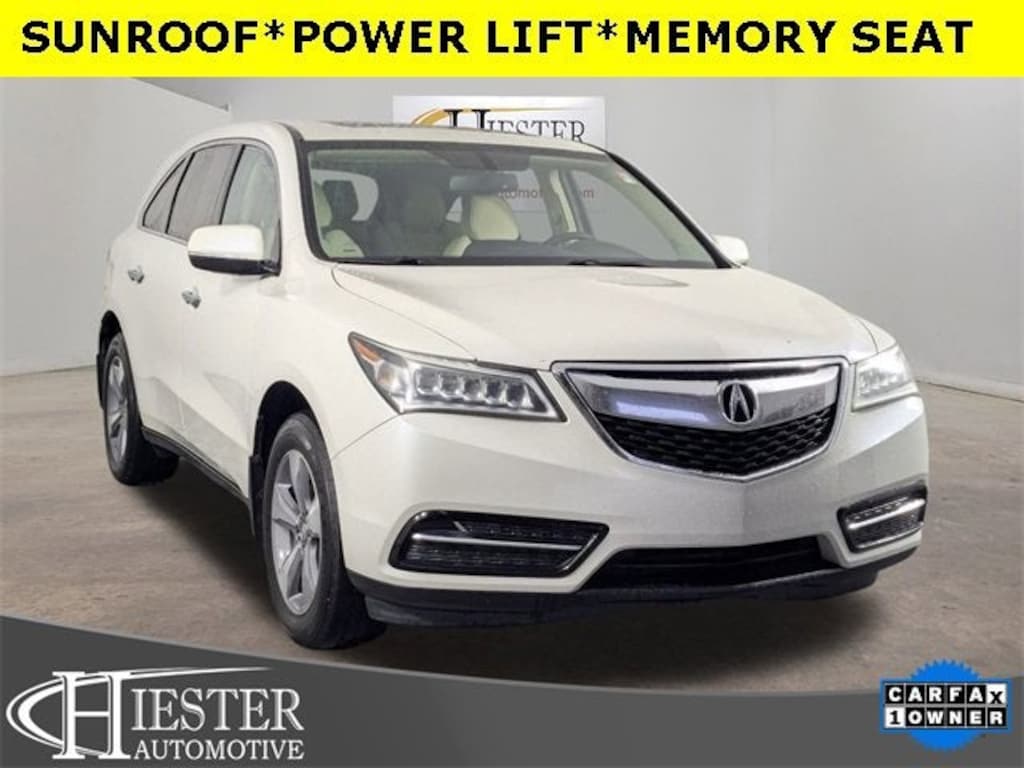 White Diamond Pearl 2014 Acura MDX 3.5L FWD 6-Speed Automatic 3.5L V6 SOHC i-VTEC 24VONE OWNER, POWER SUNROOF/MOONROOF, THIRD ROW SEATING, HEATED SEATS, REAR BACKUP CAMERA, LEATHER, PASSED OUR RIGOROUS SERVICE INSPECTION, FAST AND EASY FINANCING, ***SAVE MORE WHEN YOU TRADE WITH HIESTER CHEVROLET!***, Parchment Leather, Power Liftgate, 3rd row seats: split-bench, 4-Wheel Disc Brakes, 4.25 Axle Ratio, 8 Speakers, ABS brakes, Adaptive suspension, Air Conditioning, Alloy wheels, AM/FM radio: XM, Anti-whiplash front head restraints, Auto tilt-away steering wheel, Auto-dimming Rear-View mirror, Automatic temperature control, Brake assist, Bumpers: body-color, CD player, Compass, Delay-off headlights, Driver door bin, Driver vanity mirror, Dual front impact airbags, Dual front side impact airbags, Electronic Stability Control, Exterior Parking Camera Rear, Four wheel independent suspension, Front anti-roll bar, Front Bucket Seats, Front Center Armrest w/Storage, Front dual zone A/C, Front reading lights, Garage door transmitter: HomeLink, Heated door mirrors, Heated front seats, Heated Front Sport Seats, Illuminated entry, Knee airbag, Leather Shift Knob, Leather-Trimmed Interior, Low tire pressure warning, Memory seat, Occupant sensing airbag, Outside temperature display, Overhead airbag, Overhead console, Panic alarm, Passenger door bin, Passenger vanity mirror, Power door mirrors, Power driver seat, Power moonroof, Power passenger seat, Power steering, Power windows, Radio: AM/FM Acura Premium Sound System, Rear air conditioning, Rear anti-roll bar, Rear reading lights, Rear seat center armrest, Rear window defroster, Rear window wiper, Remote keyless entry, Security system, Speed control, Speed-sensing steering, Speed-Sensitive Wipers, Split folding rear seat, Spoiler, Steering wheel memory, Steering wheel mounted audio controls, Tachometer, Telescoping steering wheel, Tilt steering wheel, Traction control, Trip computer, Turn signal indicator mirrors, Variably intermittent wipers, Parchment Leather, Power Liftgate.****Thank you for choosing John Hiester Chevrolet. Proudly serving Fuquay Varina, Holly Springs, Cary, Apex, Raleigh, Durham, Fayetteville, Sanford, Pinehurst, Southern Pines, Pittsboro, Lillington, Angier, Dunn, Erwin, Benson, and surrounding areas. The team is excited and dedicated to making sure every customer has an unparalleled buying experience. Elevate your driving experience today! Ask us about our pre-owned vehicles that come with our Dealership for Life benefits. With over 1000 exceptional vehicles to choose from and the ability to acquire every used make and model, we are confident you, your family and friends will be 100% satisfied with the service, selection, and deals. Many of our customers love the off-site test drives we offer and at home deliveries. ****Please call us at 919-346-6312*** and experience world class customer service. Get off your Kiester and come to Hiester! All pricing and details are believed to be accurate, but we do not warrant or guarantee such accuracy. Price excludes Tax, Title and $799 processing fee. See dealer for details.20/28 City/Highway MPGAwards:* 2014 IIHS Top Safety Pick+*Insurance Institute for Highway Safety.Reviews:* Looking for a no-compromises luxury SUV with comfortable accommodations for seven, exceptional urban maneuverability and a sticker price that wonât break the bank? The 2014 Acura MDX wonât disappoint. Above all, the MDXâs reputation for long-term reliability, low maintenance costs and upstanding resale value equates to one of the most rewarding ownership experiences in the business. Source: KBB.com* Capable handling; good fuel economy; quick acceleration; quiet ride; excellent crash test safety scores; long list of standard and available features. Source: Edmunds