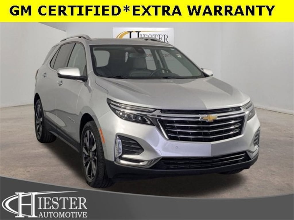 Silver Ice Metallic 2022 Chevrolet Equinox Premier FWD 6-Speed Automatic Electronic with Overdrive 1.5L DOHC*GM CERTIFIED*, ACCIDENT FREE CARFAX, LIFETIME ENGINE GUARANTEE, POWER SUNROOF/MOONROOF, APPLE CARPLAY/ANDROID AUTO, HEATED/VENTILATED SEATS, REAR BACKUP CAMERA, Bluetooth® HANDS FREE, NAVIGATION/GPS, LEATHER, PASSED OUR RIGOROUS SERVICE INSPECTION, FAST AND EASY FINANCING, ***SAVE MORE WHEN YOU TRADE WITH HIESTER CHEVROLET!***, GM Certified Certified, 8-Way Power Front Passenger Seat Adjuster, Adaptive Cruise Control, Automatic Front & Rear Parking Assist, Bose Premium 7-Speaker Audio System Feature, Confidence & Convenience II Package, Driver Confidence III Package, Driver Convenience II Package, HD Surround Vision, Heated Rear Outboard Seating Positions, Infotainment II Package, Preferred Equipment Group 1LZ, Radio: Chevrolet Infotainment 3 Plus System w/Navi, Ventilated Driver Seat, Ventilated Front Passenger Seat, 18 Aluminum Wheels, 19 Aluminum Wheels, 2 Rear USB Charging-Only Ports, 2 USB Data Ports, 2 USB Data Ports w/SD Card Reader, 2-Way Power Driver Lumbar Control Seat Adjuster, 3.50 Final Drive Axle Ratio, 4-Wheel Disc Brakes, 6 Speaker Audio System Feature, 6 Speakers, 8-Way Power Driver Seat Adjuster, ABS brakes, Air Conditioning, Alloy wheels, AM/FM radio: SiriusXM, Auto High-beam Headlights, Auto-dimming door mirrors, Auto-dimming Rear-View mirror, Automatic temperature control, Bluetooth® For Phone, Brake assist, Bumpers: body-color, Compass, Delay-off headlights, Driver door bin, Driver vanity mirror, Dual front impact airbags, Dual front side impact airbags, Electronic Stability Control, Emergency communication system: OnStar and Chevrolet connected services capable, Four wheel independent suspension, Front anti-roll bar, Front Bucket Seats, Front Center Armrest, Front dual zone A/C, Front fog lights, Front Passenger 4-Way Manual Seat Adjuster, Front reading lights, Fully automatic headlights, Garage door transmitter, Heated door mirrors, Heated Driver & Front Passenger Seats, Heated front seats, Heated steering wheel, Illuminated entry, Low tire pressure warning, Memory seat, Not Equipped w/Fr Heated or Ventilated Seats, Not Equipped w/Heated Rear Outboard Seats, Occupant sensing airbag, Outside temperature display, Overhead airbag, Overhead console, Panic alarm, Passenger door bin, Passenger vanity mirror, Perforated Leather-Appointed Seat Trim, Power door mirrors, Power driver seat, Power Liftgate, Power steering, Power Sunroof, Power windows, Premium audio system: Chevrolet Infotainment 3 Plus, Radio data system, Radio: Chevrolet Infotainment 3 Plus System, Rear anti-roll bar, Rear reading lights, Rear seat center armrest, Rear window defroster, Rear window wiper, Remote keyless entry, Roof rack: rails only, Security system, SiriusXM Radio, Speed control, Speed-sensing steering, Split folding rear seat, Spoiler, Steering wheel mounted audio controls, Tachometer, Telescoping steering wheel, Tilt steering wheel, Traction control, Trip computer, Turn signal indicator mirrors, Variably intermittent wipers, Wireless Apple CarPlay/Wireless Android Auto, LANE KEEP ASSIST WITH LANE DEPARTURE WARNING, LANE CHANGE ALERT WITH SIDE BLIND ZONE ALERT, FORWARD COLLISION ALERT, REAR CROSS TRAFFIC ALERT, FOLLOWING DISTANCE INDICATOR, 8-Way Power Front Passenger Seat Adjuster, Adaptive Cruise Control, Automatic Front & Rear Parking Assist, Bose Premium 7-Speaker Audio System Feature, Confidence & Convenience II Package, Driver Confidence III Package, Driver Convenience II Package, HD Surround Vision, Heated Rear Outboard Seating Positions, Infotainment II Package, Preferred Equipment Group 1LZ, Radio: Chevrolet Infotainment 3 Plus System w/Navi, Ventilated Driver Seat, Ventilated Front Passenger Seat.Certification Program Details: GM Certified Pre-Owned Details: * Powertrain Limited Warranty: 72 Month/100,000 Mile (whichever comes first) from original in-service date * 24 months/24,000 miles (whichever