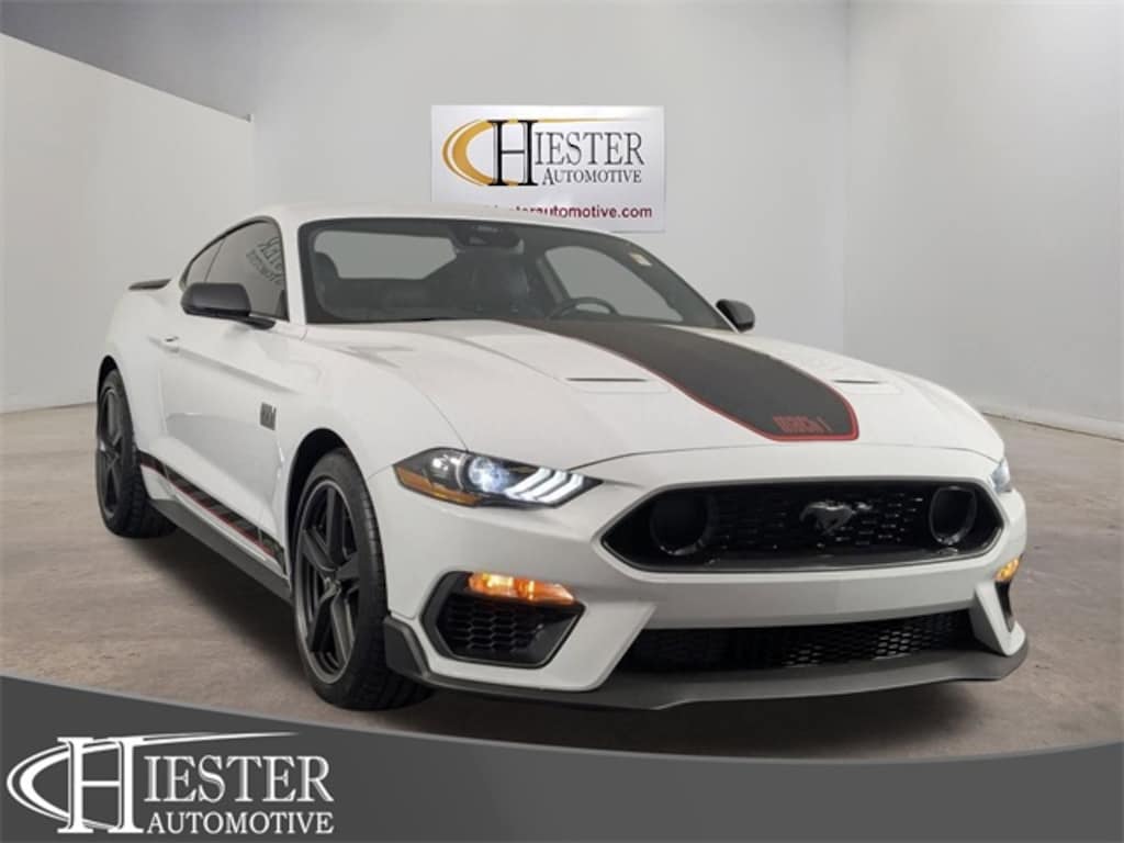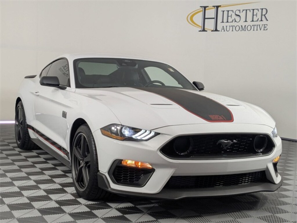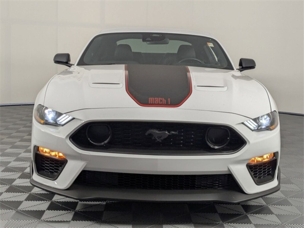 CLEAN CARFAX, ONE OWNER, LOCAL TRADE, BALANCE OF FACTORY WARRANTY, FAST AND EASY FINANCING, THE NEW PRICE OUTLET, Aluminum Foot Pedals, Climate Controlled Heated/Cooled Front Seats, Cloth Bucket Seats w/Color Accent, Equipment Group 700A, Heated Steering Wheel, Memory Driver Seat, Mirrors & Ambient Lighting, Seat Back Map Pockets, 4-Wheel Disc Brakes, 9 Speakers, ABS brakes, Adaptive suspension, Air Conditioning, Alloy wheels, AM/FM radio: SiriusXM, AM/FM Stereo, Auto High-beam Headlights, Auto-dimming Rear-View mirror, Automatic temperature control, Brake assist, Bumpers: body-color, Cloth Bucket Seats, Compass, Delay-off headlights, Driver door bin, Driver vanity mirror, Dual front impact airbags, Dual front side impact airbags, Ebony/Red Hood & Side Stripe, Electronic Stability Control, Emergency communication system: 911 Assist, Exterior Parking Camera Rear, Four wheel independent suspension, Front anti-roll bar, Front Bucket Seats, Front Center Armrest, Front dual zone A/C, Front reading lights, Fully automatic headlights, Garage door transmitter, Heated door mirrors, Illuminated entry, Knee airbag, Low tire pressure warning, Occupant sensing airbag, Outside temperature display, Overhead airbag, Overhead console, Panic alarm, Passenger door bin, Passenger vanity mirror, Power door mirrors, Power driver seat, Power passenger seat, Power steering, Power windows, Premium Floor Mats w/Accent Stitch, Radio data system, Rain sensing wipers, Rear anti-roll bar, Rear window defroster, Remote keyless entry, Security system, SiriusXM Radio, Speed control, Speed-sensing steering, Speed-Sensitive Wipers, Split folding rear seat, Spoiler, Steering wheel mounted audio controls, SYNC 3 Communications & Entertainment System, Tachometer, Telescoping steering wheel, Tilt steering wheel, Traction control, Trip computer, Turn signal indicator mirrors, Variably intermittent wipers, Voice-Activated Touch-Screen Navigation System, Voltmeter, Wheels: 19" x 9.5" Fr & 19" x 10" Rr Aluminum, Aluminum Foot Pedals, Climate Controlled Heated/Cooled Front Seats, Cloth Bucket Seats w/Color Accent, Equipment Group 700A, Heated Steering Wheel, Memory Driver Seat, Mirrors & Ambient Lighting, Seat Back Map Pockets. Oxford White 2022 Ford Mustang Mach 1 RWD 10-Speed Automatic 5.0L V8 Ti-VCT 15/23 City/Highway MPG Odometer is 9326 miles below market average!