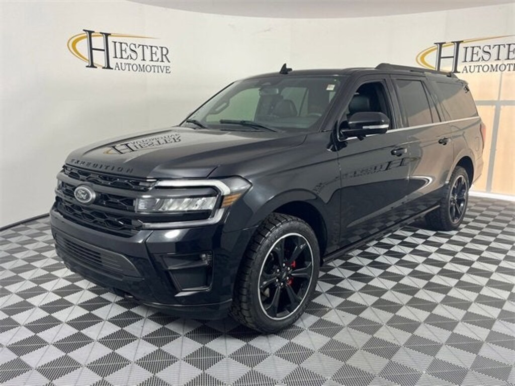 Agate Black Metallic 2023 Ford Expedition Max Limited 4WD 10-Speed Automatic 3.5L V6ONE OWNER ACCIDENT FREE CARFAX, LIFETIME ENGINE GUARANTEE, 4WD/AWD, POWER SUNROOF/MOONROOF, THIRD ROW SEATING, HEATED/VENTILATED SEATS, REAR BACKUP CAMERA, Bluetooth® HANDS FREE, NAVIGATION/GPS, LEATHER, PASSED OUR RIGOROUS SERVICE INSPECTION, FAST AND EASY FINANCING, ***SAVE MORE WHEN YOU TRADE WITH HIESTER CHEVROLET!***, 1st & 2nd Row Floor Mats w/Logo, 26mm Engine Radiator, 3.73 Axle Ratio, 360-Degree Camera w/Trailer Reverse Guidance, Black Headlamp and Fog Lamp Bezels, Black Limited Tailgate Badge, Black Roof Rack Side Rails, Body Color Door Handles, Dual Exhaust System, Ebony Black Bar and Mesh Grille, Ebony Black Power Deployable Running Boards, Ebony Black Tailgate Applique, Enhanced Active Noise Control, Equipment Group 304A Stealth Performance Package, Expedition Lettering on Hood, Heated/Ventilated Lthr Front Captain's Chairs (A), Heavy-Duty Trailer Tow Package, Integrated Trailer Brake Controller, LED Taillamp w/Black Bezels, Power Liftgate, Power-Folding Sideview Mirrors w/Autofold, Pro Trailer Backup Assist, Radio: B&O Unleashed Sound System by Bang & Olufsen, Red Brake Calipers, SiriusXM w/360L, Sport Center Console, Sport-Tuned Suspension, Stealth Performance Edition Package, SYNC 4 w/Enhanced Voice Recognition, 12 Speakers, 15.5 LCD Capacitive Touchscreen, 360-Degree Camera w/Split View, 3rd row seats: split-bench, 4-Wheel Disc Brakes, ABS brakes, Adjustable pedals, Air Conditioning, Alloy wheels, AM/FM radio: SiriusXM with 360L, Auto High-beam Headlights, Auto-dimming door mirrors, Auto-dimming Rear-View mirror, Automatic temperature control, Brake assist, Bumpers: body-color, Compass, Connected Built-In Navigation, Delay-off headlights, Driver door bin, Driver vanity mirror, Dual front impact airbags, Dual front side impact airbags, Electronic Stability Control, Emergency communication system: SYNC 4 911 Assist, Exterior Parking Camera Rear, Four wheel independent suspension, Front anti-roll bar, Front Bucket Seats, Front Center Armrest, Front dual zone A/C, Front fog lights, Front reading lights, Fully automatic headlights, Garage door transmitter, Hands-Free Foot-Activated Liftgate Removal (DISC), Heated & Ventilated Leather Front Captain's Chairs, Heated door mirrors, Heated front seats, Heated rear seats, Heated steering wheel, Illuminated entry, Instrument Panel Cluster, Leather steering wheel, Low tire pressure warning, Memory seat, Navigation system: Connected Navigation, Occupant sensing airbag, Outside temperature display, Overhead airbag, Overhead console, Panic alarm, Passenger door bin, Passenger vanity mirror, Pedal memory, Power door mirrors, Power driver seat, Power moonroof, Power passenger seat, Power steering, Power windows, Radio data system, Radio: B&O Sound System by Bang & Olufsen, Rain sensing wipers, Rear air conditioning, Rear anti-roll bar, Rear reading lights, Rear window defroster, Rear window wiper, Reclining 3rd row seat, Remote keyless entry, Reverse Brake Assist, Second Row Power Windows Removal, Security system, Speed control, Speed-sensing steering, Speed-Sensitive Wipers, Split folding rear seat, Spoiler, Steering wheel memory, Steering wheel mounted audio controls, SYNC 4A w/Enhanced Voice Recognition, Tachometer, Telescoping steering wheel, Tilt steering wheel, Traction control, Trip computer, Turn signal indicator mirrors, Variably intermittent wipers, Ventilated front seats, Voltmeter, 1st & 2nd Row Floor Mats w/Logo, 26mm Engine Radiator, 3.73 Axle Ratio, 360-Degree Camera w/Trailer Reverse Guidance, Black Headlamp and Fog Lamp Bezels, Black Limited Tailgate Badge, Black Roof Rack Side Rails, Body Color Door Handles, Dual Exhaust System, Ebony Black Bar and Mesh Grille, Ebony Black Power Deployable Running Boards, Ebony Black Tailgate Applique, Enhanced Active Noise Control, Equipment Group 304A Stealth Performance Package, Expedition Lettering on Hood, Heated/Ventilated Lthr Fr