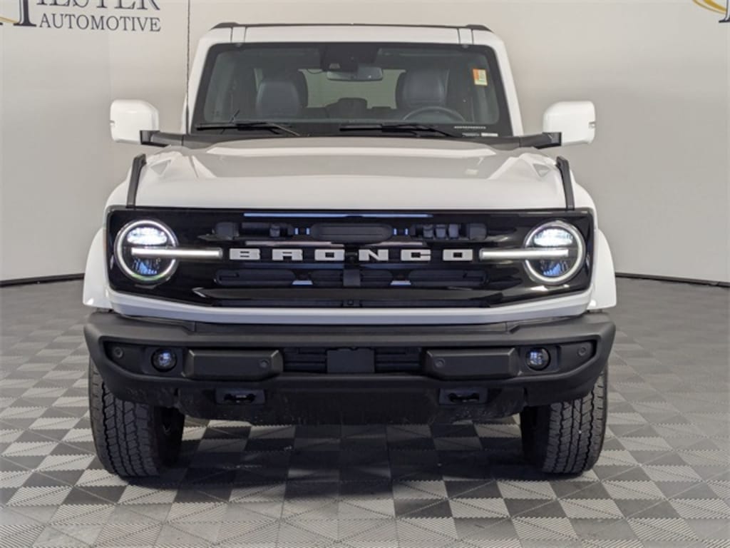 CLEAN CARFAX, ONE OWNER, BALANCE OF FACTORY WARRANTY, LIFETIME ENGINE GUARANTEE, 4WD, FAST AND EASY FINANCING, THE NEW PRICE OUTLET, 10 Speakers w/Subwoofer, 360-Degree Camera, Adaptive Cruise Control, Additional Sound Deadening, Equipment Group 314A High/Lux Package, Evasive Steering Assist, Front Parking Sensors, Heated Steering Wheel, Information on Demand Panel, Navigation system: Connected Navigation, Radio: B&O Sound System by Bang & Olufsen, Sideview Mirrors, Universal Garage Door Opener, Wireless Charging Pad, 18" Bright Machined Aluminum Wheels, 3.73 Axle Ratio, 4-Wheel Disc Brakes, 7 Speakers, ABS brakes, Air Conditioning, Alloy wheels, AM/FM radio: SiriusXM with 360L, AM/FM Stereo, Auto High-beam Headlights, Auto-dimming Rear-View mirror, Automatic temperature control, Brake assist, Carbonized Gray Molded-In-Color Hard Top, Compass, Connected Navigation, Delay-off headlights, Driver door bin, Driver vanity mirror, Dual front impact airbags, Dual front side impact airbags, Electronic Stability Control, Emergency communication system: 911 Assist, Exterior Parking Camera Rear, Front anti-roll bar, Front Bucket Seats, Front Center Armrest, Front dual zone A/C, Front fog lights, Front License Plate Bracket, Front reading lights, Front Row Top Panels Storage Bag, Front wheel independent suspension, Fully automatic headlights, Hard Top Sound Deadening Headliner, Heated door mirrors, Heated front seats, Heated Leather-Trimmed/Vinyl Bucket Seats, Illuminated entry, Integrated roll-over protection, Leather Shift Knob, Low tire pressure warning, Occupant sensing airbag, Outside temperature display, Overhead airbag, Overhead console, Panic alarm, Passenger door bin, Passenger vanity mirror, Power door mirrors, Power driver seat, Power passenger seat, Power steering, Power windows, Radio data system, Rear seat center armrest, Rear-Window Defroster & Washer, Remote keyless entry, Security system, SiriusXM Radio w/360L, Speed control, Split folding rear seat, Steering wheel mounted audio controls, SYNC 4, Tachometer, Telescoping steering wheel, Tilt steering wheel, Traction control, Trip computer, Variably intermittent wipers, Voltmeter, 10 Speakers w/Subwoofer, 360-Degree Camera, Adaptive Cruise Control, Additional Sound Deadening, Equipment Group 314A High/Lux Package, Evasive Steering Assist, Front Parking Sensors, Heated Steering Wheel, Information on Demand Panel, Navigation system: Connected Navigation, Radio: B&O Sound System by Bang & Olufsen, Sideview Mirrors, Universal Garage Door Opener, Wireless Charging Pad. Oxford White 2024 Ford Bronco Outer Banks 4WD 10-Speed Automatic 2.3L EcoBoost I-4 20/21 City/Highway MPG Odometer is 3707 miles below market average!