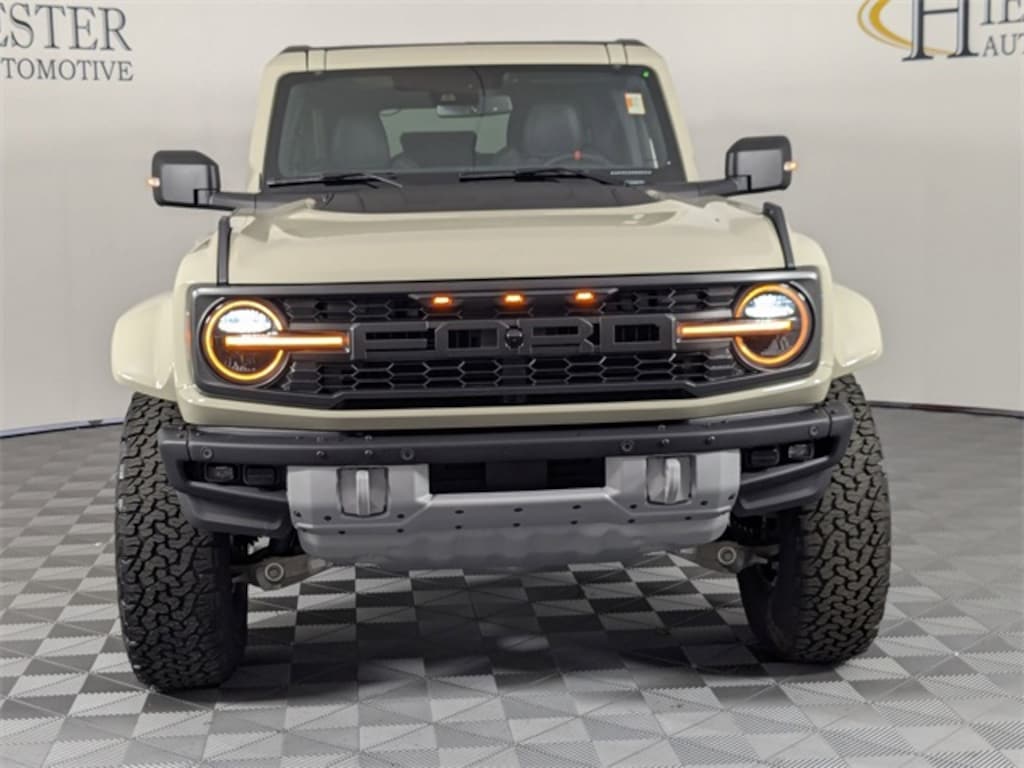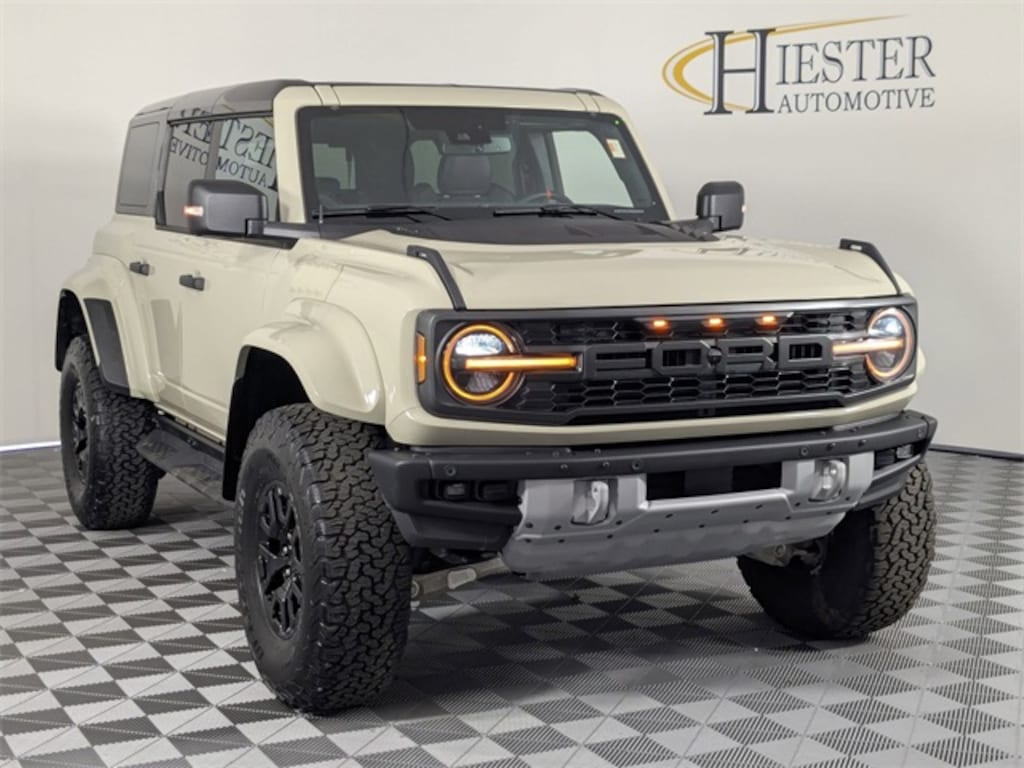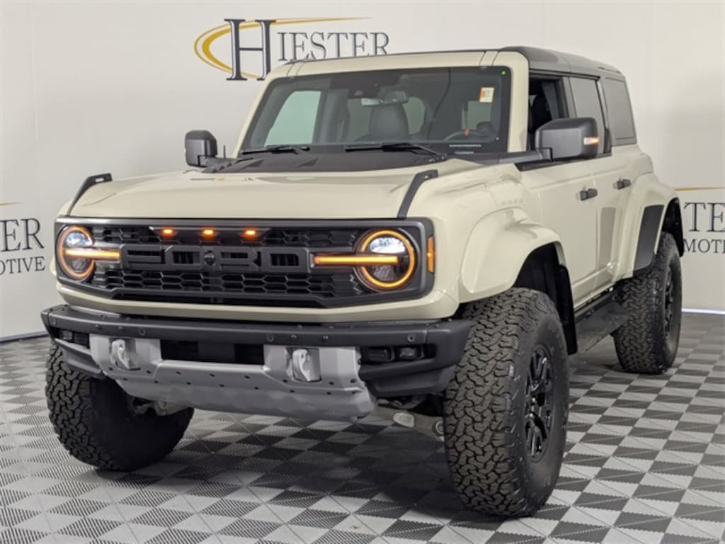 CLEAN CARFAX, ONE OWNER, LOCAL TRADE, BALANCE OF FACTORY WARRANTY, 4WD, FAST AND EASY FINANCING, THE NEW PRICE OUTLET, Equipment Group 374A Lux Package, Navigation system: Connected Navigation, 12 Speakers, 4-Wheel Disc Brakes, ABS brakes, Air Conditioning, Alloy wheels, AM/FM radio: SiriusXM with 360L, Auto High-beam Headlights, Auto-dimming Rear-View mirror, Automatic temperature control, Brake assist, Compass, Connected Navigation, Convertible HardTop, Convertible roof lining, Delay-off headlights, Driver door bin, Driver vanity mirror, Dual front impact airbags, Dual front side impact airbags, Electronic Stability Control, Emergency communication system: 911 Assist, Exterior Parking Camera Rear, Front anti-roll bar, Front Bucket Seats, Front Center Armrest, Front dual zone A/C, Front fog lights, Front License Plate Bracket, Front reading lights, Front wheel independent suspension, Fully automatic headlights, Garage door transmitter, Glass rear window, Hard Top Sound Deadening Headliner, Heated door mirrors, Heated front seats, Heated steering wheel, Illuminated entry, Integrated roll-over protection, Interior Carbon Fiber Pack, Leather Shift Knob, Low tire pressure warning, Marine Grade Vinyl Bucket Seats, Occupant sensing airbag, Outside temperature display, Overhead airbag, Overhead console, Panic alarm, Passenger door bin, Passenger vanity mirror, Power door mirrors, Power steering, Power windows, Radio data system, Radio: B&O Sound System by Bang & Olufsen, Rear anti-roll bar, Rear seat center armrest, Rear window defroster, Rear window wiper, Rear-Window Defroster & Washer, Remote keyless entry, Security system, Shadow Black Painted Hard Top, SiriusXM w/360L, Speed control, Split folding rear seat, Steering wheel mounted audio controls, SYNC 4, Tachometer, Telescoping steering wheel, Tilt steering wheel, Traction control, Trip computer, Turn signal indicator mirrors, Variably intermittent wipers, Voltmeter, Wheels: 17" Black High Gloss-Painted Aluminum, Equipment Group 374A Lux Package, Navigation system: Connected Navigation. Desert Sand 2025 Ford Bronco Raptor 4WD 10-Speed Automatic 3.0L EcoBoost V6 15/16 City/Highway MPG