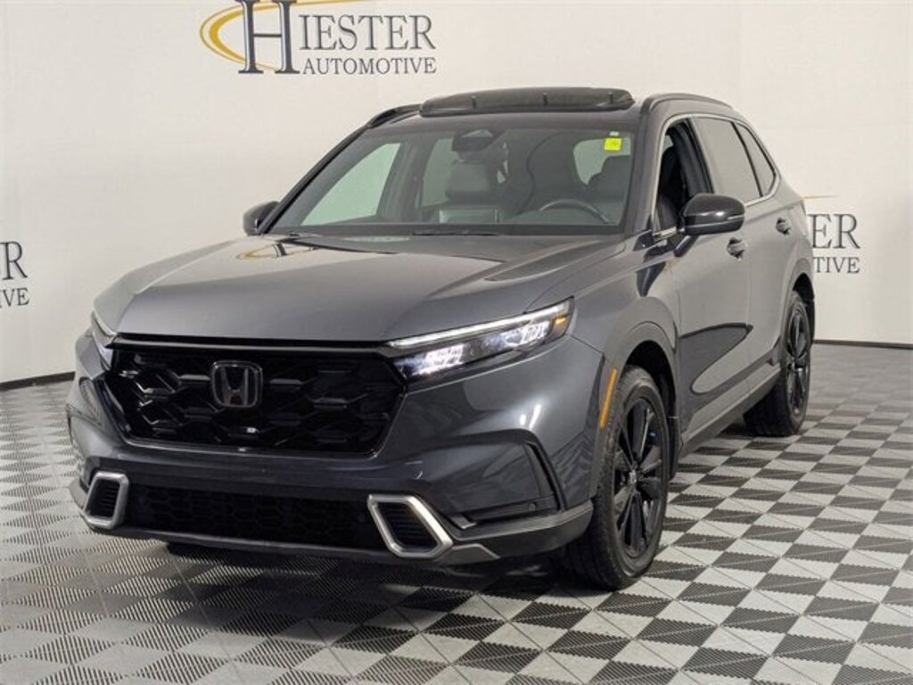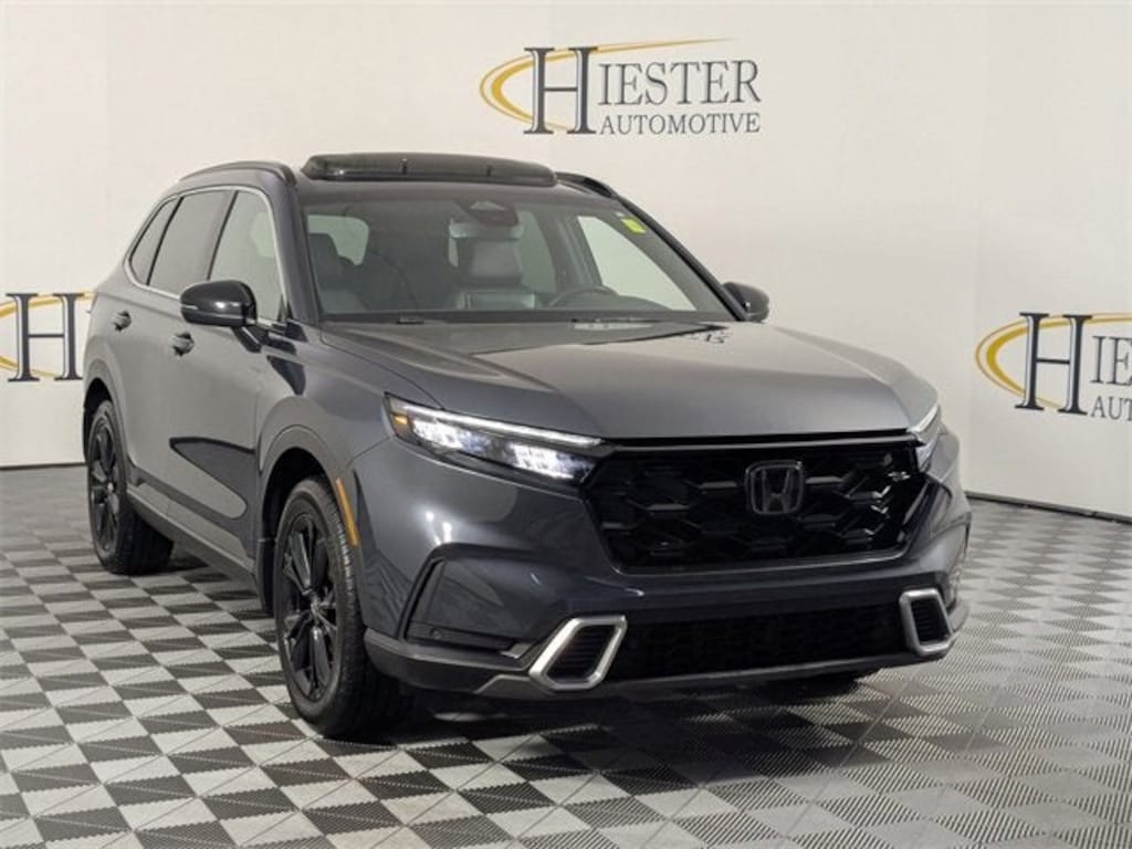 4WD/AWD, FAST AND EASY FINANCING, ***SAVE MORE WHEN YOU TRADE WITH HIESTER CHEVROLET OF LILLINGTON!***, 2.0L I4 DOHC 16V, Navigation system: Honda Satellite-Linked Navigation System, 12 Speakers, 4-Wheel Disc Brakes, 4.438 Axle Ratio, ABS brakes, Adaptive Cruise Control: Adaptive Cruise Control (ACC) with Low-Speed Follow, Air Conditioning, Alloy wheels, AM/FM radio: SiriusXM, Auto High-beam Headlights, Auto-dimming Rear-View mirror, Automatic temperature control, Blind Spot Information (BSI) System warning, Brake assist, Bumpers: body-color, Compass, Delay-off headlights, Driver door bin, Driver vanity mirror, Dual front impact airbags, Dual front side impact airbags, Electronic Stability Control, Exterior Parking Camera Rear, Four wheel independent suspension, Front anti-roll bar, Front Bucket Seats, Front Center Armrest, Front dual zone A/C, Front reading lights, Fully automatic headlights, Heated door mirrors, Heated Front Bucket Seats w/Driver Memory, Heated front seats, Heated steering wheel, Illuminated entry, Knee airbag, Leather Seat Trim, Leather Shift Knob, Leather steering wheel, Low tire pressure warning, Memory seat, Occupant sensing airbag, Outside temperature display, Overhead airbag, Overhead console, Panic alarm, Passenger door bin, Passenger vanity mirror, Power door mirrors, Power driver seat, Power Liftgate, Power moonroof, Power passenger seat, Power steering, Power windows, Radio data system, Radio: Bose Premium Sound System w/Navigation, Rain sensing wipers, Rear anti-roll bar, Rear reading lights, Rear seat center armrest, Rear side impact airbag, Rear window defroster, Rear window wiper, Remote keyless entry, Security system, Speed control, Speed-sensing steering, Speed-Sensitive Wipers, Split folding rear seat, Spoiler, Steering wheel mounted audio controls, Telescoping steering wheel, Tilt steering wheel, Traction control, Trip computer, Turn signal indicator mirrors, Variably intermittent wipers, Wheels: 19 Berlina Black Alloy, Wireless Apple CarPlay/Wireless Android Auto, 2.0L I4 DOHC 16V, Navigation system: Honda Satellite-Linked Navigation System. Urban Gray Pearl 2023 Honda CR-V Hybrid Sport Touring AWD eCVT 2.0L I4 DOHC 16V 40/34 City/Highway MPG
