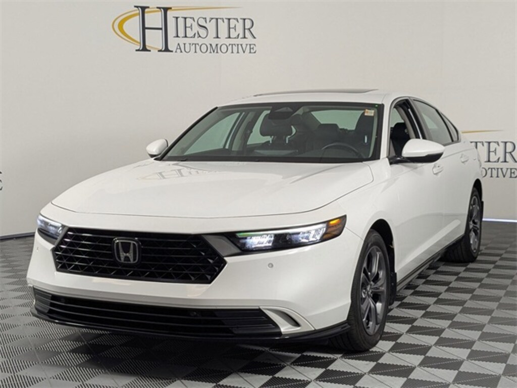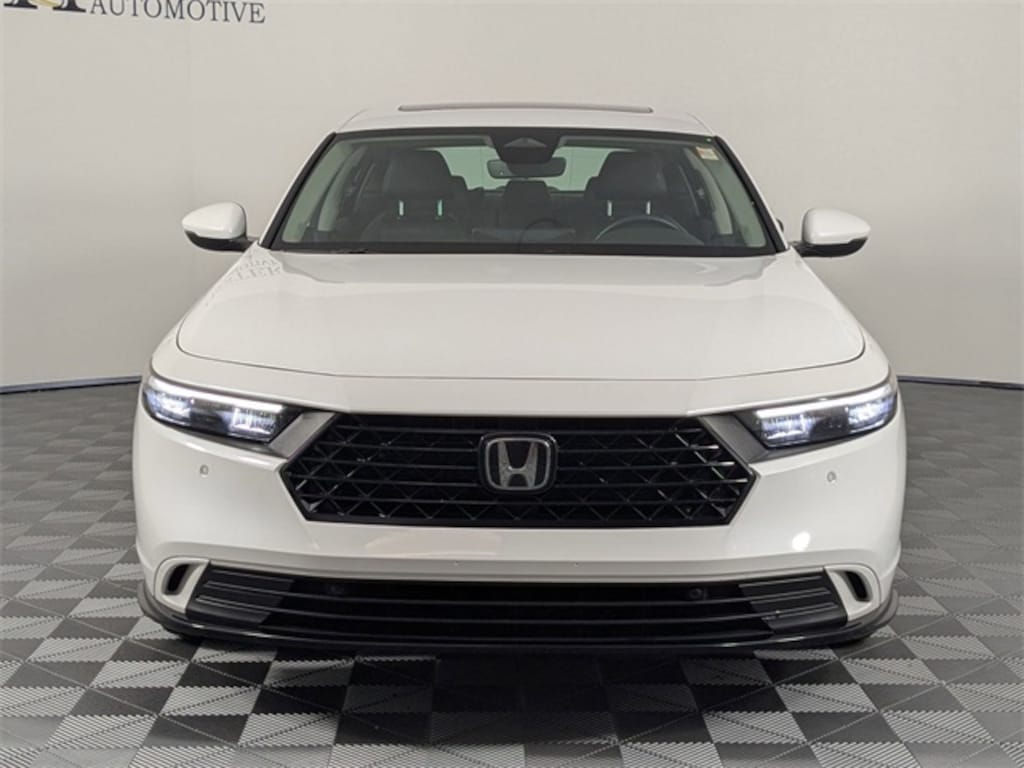 CLEAN CARFAX, ONE OWNER, LOCAL TRADE, BALANCE OF FACTORY WARRANTY, FAST AND EASY FINANCING, THE NEW PRICE OUTLET, 2.0L 16V DOHC, 4-Wheel Disc Brakes, 8 Speakers, ABS brakes, Adaptive Cruise Control: Adaptive Cruise Control (ACC) with Low-Speed Follow, Air Conditioning, Alloy wheels, AM/FM radio, Apple CarPlay/Android Auto, Auto High-beam Headlights, Auto-dimming Rear-View mirror, Automatic temperature control, Blind Spot Information (BSI) System warning, Brake assist, Bumpers: body-color, Compass, Delay-off headlights, Driver door bin, Driver vanity mirror, Dual front impact airbags, Dual front side impact airbags, Electronic Stability Control, Emergency communication system: HondaLink, Exterior Parking Camera Rear, Four wheel independent suspension, Front anti-roll bar, Front Bucket Seats, Front Center Armrest, Front dual zone A/C, Front reading lights, Fully automatic headlights, Heated door mirrors, Heated Front Bucket Seats, Heated front seats, Illuminated entry, Knee airbag, Lane departure: Lane Keeping Assist System (LKAS) active, Leather Shift Knob, Leather steering wheel, Leather-Trimmed Seat Trim, Low tire pressure warning, Memory seat, Occupant sensing airbag, Outside temperature display, Overhead airbag, Overhead console, Panic alarm, Passenger door bin, Passenger vanity mirror, Power door mirrors, Power driver seat, Power moonroof, Power passenger seat, Power steering, Power windows, Radio data system, Radio: 180-Watt Audio System, Rear anti-roll bar, Rear reading lights, Rear seat center armrest, Rear side impact airbag, Rear window defroster, Remote keyless entry, Security system, Speed control, Speed-sensing steering, Speed-Sensitive Wipers, Split folding rear seat, Steering wheel mounted audio controls, Telescoping steering wheel, Tilt steering wheel, Traction control, Trip computer, Turn signal indicator mirrors, Variably intermittent wipers, Wheels: 17" x 7.5J Pewter Gray, 2.0L 16V DOHC. Platinum White Pearl 2024 Honda Accord Hybrid EX-L FWD eCVT 2.0L 16V DOHC 51/44 City/Highway MPG 51/44 City/Highway MPG