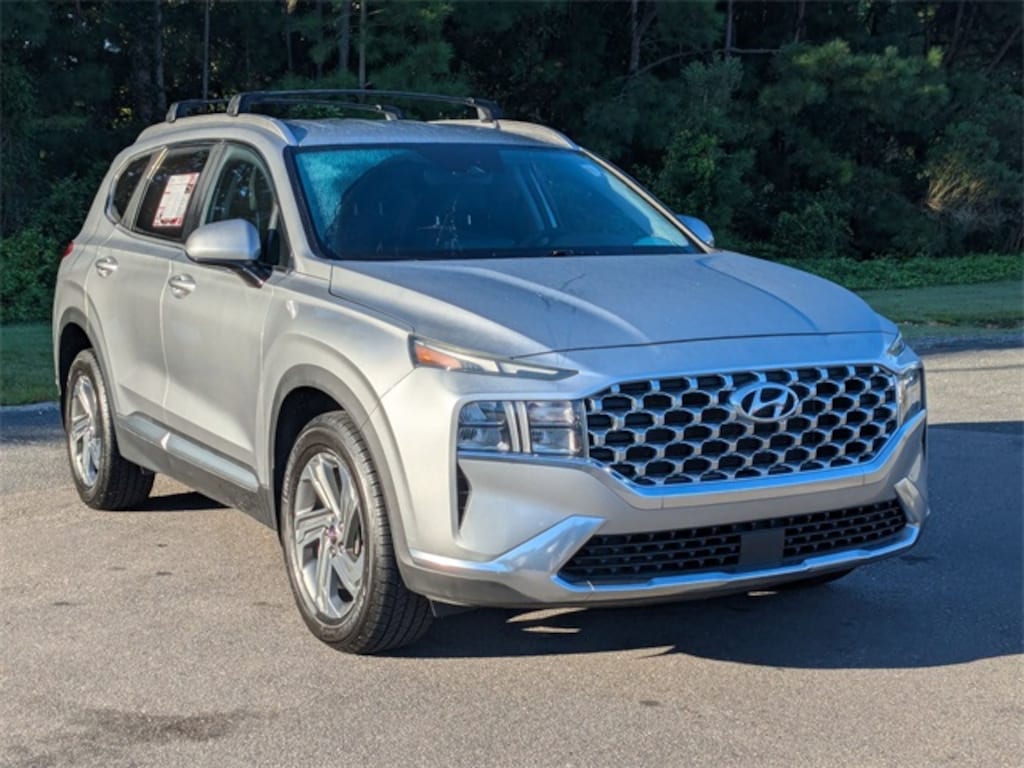 CLEAN CARFAX, BALANCE OF FACTORY WARRANTY, LIFETIME ENGINE GUARANTEE, FAST AND EASY FINANCING, THE NEW PRICE OUTLET, Black Cloth, Option Group 01, 18" x 7.5J Alloy Wheels, 4-Wheel Disc Brakes, 6 Speakers, ABS brakes, Air Conditioning, Alloy wheels, AM/FM radio: SiriusXM, Apple CarPlay & Android Auto, Auto High-beam Headlights, Axle Ratio: 3.798, Brake assist, Bumpers: body-color, Cargo Net, Cargo Tray, Carpeted Floor Mats, Delay-off headlights, Driver door bin, Driver vanity mirror, Dual front impact airbags, Dual front side impact airbags, Electronic Stability Control, Emergency communication system, Exterior Parking Camera Rear, Four wheel independent suspension, Front anti-roll bar, Front Bucket Seats, Front Center Armrest, Front reading lights, Fully automatic headlights, Heated door mirrors, Heated Front Bucket Seats, Heated front seats, Illuminated entry, Low tire pressure warning, Mudguards, Occupant sensing airbag, Outside temperature display, Overhead airbag, Overhead console, Panic alarm, Passenger door bin, Passenger vanity mirror, Power door mirrors, Power driver seat, Power steering, Power windows, Radio: AM/FM/MP3 Display Audio, Rear anti-roll bar, Rear seat center armrest, Rear window defroster, Rear window wiper, Remote keyless entry, Security system, Speed control, Speed-sensing steering, Split folding rear seat, Spoiler, Steering wheel mounted audio controls, Tachometer, Telescoping steering wheel, Tilt steering wheel, Traction control, Trip computer, Variably intermittent wipers, YES Essentials Stain-Resistant Cloth Seat Trim, Black Cloth, Option Group 01. Shimmering Silver Pearl 2021 Hyundai Santa Fe SEL FWD 8-Speed Automatic with SHIFTRONIC 2.5L I4 25/28 City/Highway MPG 25/28 City/Highway MPG Odometer is 22029 miles below market average!