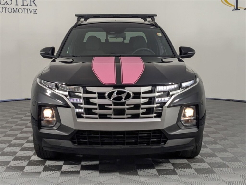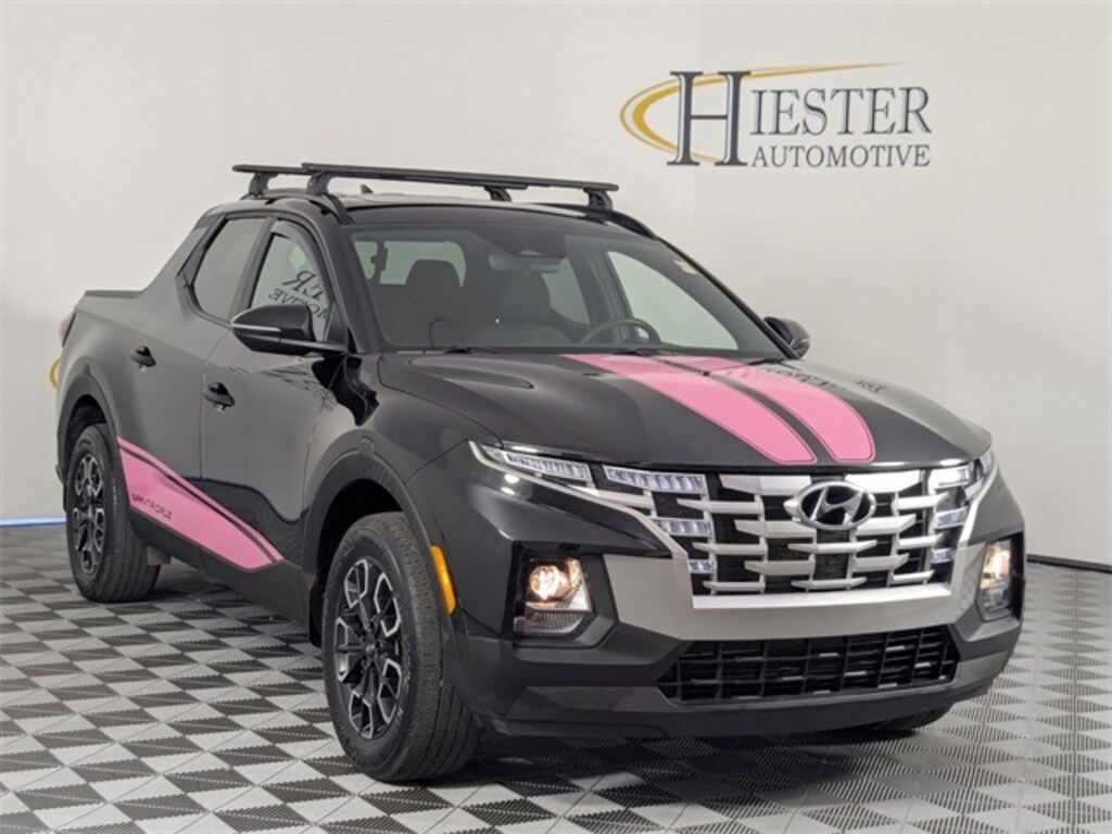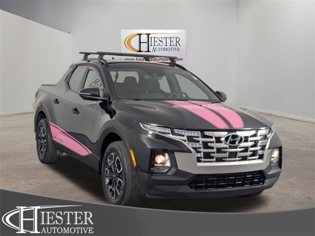 10.25" Digital Instrument Cluster, 115V AC Power Inverter in Bed, 18" x 7.5J Alloy Wheels, 3.648 Axle Ratio, 4-Wheel Disc Brakes, 6 Speakers, ABS brakes, Activity Package, Air Conditioning, Alloy wheels, AM/FM radio: SiriusXM, Apple CarPlay & Android Auto, Auto High-beam Headlights, Auto-leveling suspension, Bed Cargo Net, Bed Mat, Brake assist, Bumpers: body-color, Cargo Package, Conventional Power Sunroof, Cross Rails, Delay-off headlights, Driver door bin, Driver vanity mirror, Dual C-Channel Utility Tracks on Bed Side, Dual front impact airbags, Dual front side impact airbags, Electronic Stability Control, Emergency communication system: Blue Link Connected Car Service (3-year complimentary subscription), Envelop Cargo Net, Exterior Parking Camera Rear, First Aid Kit, Fitted Liners, Four wheel independent suspension, Front anti-roll bar, Front Bucket Seats, Front Center Armrest, Front reading lights, Fully automatic headlights, Heated door mirrors, Heated Front Bucket Seats, Heated front seats, Illuminated entry, Integrated Tonneau Cover, LED Bed Lighting, LED Front & Rear Map Lights, Low tire pressure warning, Mudguards, Occupant sensing airbag, Option Group 02, Outside temperature display, Overhead airbag, Overhead console, Panic alarm, Passenger door bin, Passenger vanity mirror, Power door mirrors, Power driver seat, Power steering, Power windows, Radio data system, Radio: AM/FM Audio System, Rear anti-roll bar, Rear Sliding Glass Window w/Rear Defroster, Rear step bumper, Rear window defroster, Remote keyless entry, Roof Side Rails, Security system, Speed control, Speed-sensing steering, Split folding rear seat, Spoiler, Stain & Odor Resistant Cloth Seat Trim, Steering wheel mounted audio controls, Tachometer, Telescoping steering wheel, Tilt steering wheel, Traction control, Trip computer, Turn signal indicator mirrors, Variably intermittent wipers, Wheel Locks, Winter Package, Wireless Phone Charger. Phantom Black 2022 Hyundai Santa Cruz SEL AWD 8-Speed Automatic with SHIFTRONIC 2.5L I4 21/27 City/Highway MPG 21/27 City/Highway MPG
