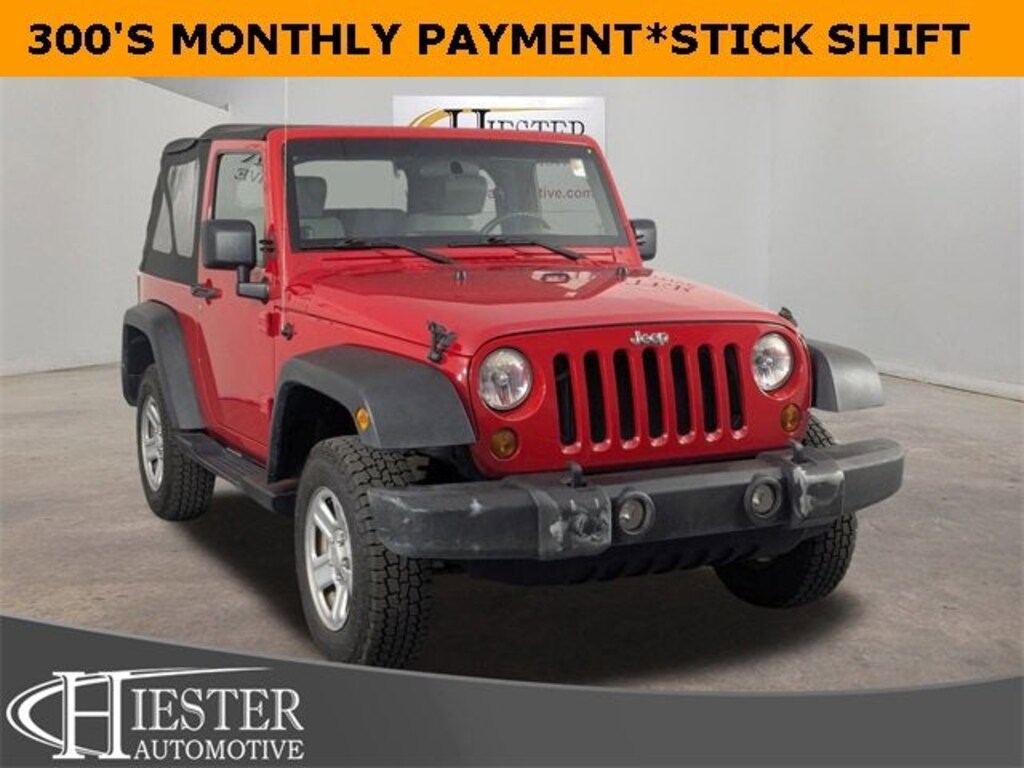 Flame Red Clearcoat 2010 Jeep Wrangler Sport 4WD 6-Speed Manual 3.8L V6 SMPIACCIDENT FREE CARFAX, 4WD/AWD, PASSED OUR RIGOROUS SERVICE INSPECTION, FAST AND EASY FINANCING, ***SAVE MORE WHEN YOU TRADE WITH HIESTER CHEVROLET!***, 4WD, Quick Order Package 23B, 16 x 7.0 Luxury Styled Steel Wheels, 3.21 Rear Axle Ratio, 4-Wheel Disc Brakes, 6 Speakers, ABS brakes, Air Conditioning, AM/FM radio, Audio Jack Input for Mobile Devices, Brake assist, CD player, Cloth Bucket Seats, Compass, Driver door bin, Dual front impact airbags, Easy Folding SoftTop, Electronic Stability Control, Front anti-roll bar, Front Bucket Seats, Front Center Armrest, Front fog lights, Integrated roll-over protection, Low tire pressure warning, Normal Duty Suspension, Occupant sensing airbag, Outside temperature display, Passenger door bin, Power steering, Radio: Media Center 130 CD/MP3, Rear anti-roll bar, Tachometer, Tilt steering wheel, Traction control, Trip computer, Variably intermittent wipers, 4WD, Quick Order Package 23B.****Thank you for choosing John Hiester Chevrolet. Proudly serving Fuquay Varina, Holly Springs, Cary, Apex, Raleigh, Durham, Fayetteville, Sanford, Pinehurst, Southern Pines, Pittsboro, Lillington, Angier, Dunn, Erwin, Benson, and surrounding areas. The team is excited and dedicated to making sure every customer has an unparalleled buying experience. Elevate your driving experience today! Ask us about our pre-owned vehicles that come with our Dealership for Life benefits. With over 1000 exceptional vehicles to choose from and the ability to acquire every used make and model, we are confident you, your family and friends will be 100% satisfied with the service, selection, and deals. Many of our customers love the off-site test drives we offer and at home deliveries. ****Please call us at 919-346-6312*** and experience world class customer service. Get off your Kiester and come to Hiester! All pricing and details are believed to be accurate, but we do not warrant or guarantee such accuracy. Price excludes Tax, Title and $799 processing fee. See dealer for details.15/19 City/Highway MPG Odometer is 34930 miles below market average!