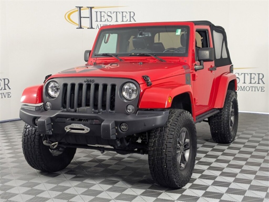 Well equipped with: Connectivity Group (Tire Pressure Monitoring Display, Uconnect Voice Command w/Bluetooth, and Vehicle Information Center), Freedom Edition Package, Freedom Package Decals, Power Convenience Group (Auto-Dimming Mirror w/Reading Lamp, Front 1-Touch Down Power Windows, Power Heated Mirrors, Power Locks, Remote Keyless Entry, and Security Alarm), Quick Order Package 24F Freedom Edition (115V Auxiliary Power Outlet, Air Conditioning, BF Goodrich Brand Tires, Black Jeep Grille Badge, Black/Chrome Screws Fuel Filler Door, Body Color Fender Flares, Dana 44/226MM Rear Axle, Deep Tint Sunscreen Windows, Heavy Duty Suspension w/Gas Shocks, Iron Gray Interior Accents, Jeep Trail Rated Kit, Leather Seat w/Cloth (Sedoso Fabric), Mid Gloss Granite Crystal Grille, MOPAR Black Tail Lamp Guards, MOPAR Grab Handles, MOPAR HD Rear Bumper, MOPAR Slush Mats, MOPAR Winch-Capable HD Front Bumper, Oscar Mike Badge, Pantone Trail Rated Badge, Premium Black Sunrider Soft Top, R1234YF A/C Refrigerant, Silver Interior Accents, Sunrider Soft Top, and Wheels: 17" x 7.5" Low Gloss Granite Crystal), ABS brakes, Compass, Electronic Stability Control, Low tire pressure warning, Traction control, 16" x 7.0" Luxury Styled Steel Wheels, 3.21 Rear Axle Ratio, 4-Wheel Disc Brakes, 8 Speakers, AM/FM radio, Audio Jack Input for Mobile Devices, Brake assist, CD player, Cloth Seats w/Adjustable Head Restraints, Driver door bin, Driver Height Adjuster Seat, Driver vanity mirror, Dual front impact airbags, Front anti-roll bar, Front Bucket Seats, Front Center Armrest w/Storage, Front fog lights, Integrated roll-over protection, Normal Duty Suspension, Occupant sensing airbag, Outside temperature display, Passenger door bin, Passenger vanity mirror, Power steering, Radio: 130, Rear anti-roll bar, Speed control, Steering wheel mounted audio controls, Tachometer, Tilt steering wheel, Trip computer, and Variably intermittent wipers. ACCIDENT FREE CARFAX, 4WD, LOCAL TRADE, FAST AND EASY FINANCING, THE NEW PRICE OUTLET, 115V Auxiliary Power Outlet, ABS brakes, Air Conditioning, Auto-Dimming Mirror w/Reading Lamp, BF Goodrich Brand Tires, Black Jeep Grille Badge, Black/Chrome Screws Fuel Filler Door, Body Color Fender Flares, Compass, Connectivity Group, Dana 44/226MM Rear Axle, Deep Tint Sunscreen Windows, Electronic Stability Control, Freedom Edition Package, Freedom Package Decals, Front 1-Touch Down Power Windows, Heavy Duty Suspension w/Gas Shocks, Iron Gray Interior Accents, Jeep Trail Rated Kit, Leather Seat w/Cloth (Sedoso Fabric), Low tire pressure warning, Mid Gloss Granite Crystal Grille, MOPAR Black Tail Lamp Guards, MOPAR Grab Handles, MOPAR HD Rear Bumper, MOPAR Slush Mats, MOPAR Winch-Capable HD Front Bumper, Oscar Mike Badge, Pantone Trail Rated Badge, Power Convenience Group, Power Heated Mirrors, Power Locks, Premium Black Sunrider Soft Top, Quick Order Package 24F Freedom Edition, R1234YF A/C Refrigerant, Remote Keyless Entry, Security Alarm, Silver Interior Accents, Sunrider Soft Top, Tire Pressure Monitoring Display, Traction control, Uconnect Voice Command w/Bluetooth, Vehicle Information Center, Wheels: 17" x 7.5" Low Gloss Granite Crystal, 16" x 7.0" Luxury Styled Steel Wheels, 3.21 Rear Axle Ratio, 4-Wheel Disc Brakes, 8 Speakers, AM/FM radio, Audio Jack Input for Mobile Devices, Brake assist, CD player, Cloth Seats w/Adjustable Head Restraints, Driver door bin, Driver Height Adjuster Seat, Driver vanity mirror, Dual front impact airbags, Front anti-roll bar, Front Bucket Seats, Front Center Armrest w/Storage, Front fog lights, Integrated roll-over protection, Normal Duty Suspension, Occupant sensing airbag, Outside temperature display, Passenger door bin, Passenger vanity mirror, Power steering, Radio: 130, Rear anti-roll bar, Speed control, Steering wheel mounted audio controls, Tachometer, Tilt steering wheel, Trip computer, Variably