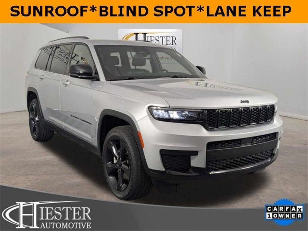 Silver Zynith 2022 Jeep Grand Cherokee L Altitude 4WD 8-Speed Automatic 3.6L V6 24V VVTONE OWNER, LIFETIME ENGINE GUARANTEE, 4WD/AWD, POWER SUNROOF/MOONROOF, THIRD ROW SEATING, APPLE CARPLAY/ANDROID AUTO, HEATED SEATS, REAR BACKUP CAMERA, Bluetooth® HANDS FREE, LEATHER, PASSED OUR RIGOROUS SERVICE INSPECTION, FAST AND EASY FINANCING, ***SAVE MORE WHEN YOU TRADE WITH HIESTER CHEVROLET!***, 115V Auxiliary Power Outlet, 3rd Row Charge-Only USB Ports, Altitude Appearance Package, Black Headliner, Delete Laredo Badge, Gloss Black Exterior Accents, Heated Front Seats, Heated Steering Wheel, Leather Trimmed Bucket Seats, Leather Wrapped Steering Wheel, Molded In Color Black/Gloss Black Roof Rails, Power Liftgate, Quick Order Package 22B Altitude, Rain Sensitive Windshield Wipers, Remote Start System, Selectable Tire Fill Alert, Wireless Charging Pad, 3.45 Rear Axle Ratio, 3rd row seats: split-bench, 4-Wheel Disc Brakes, 6 Speakers, ABS brakes, Air Conditioning, Alloy wheels, AM/FM radio, Anti-whiplash front head restraints, Automatic temperature control, Brake assist, Bumpers: body-color, Cloth Seats, Compass, Delay-off headlights, Driver door bin, Driver vanity mirror, Dual front impact airbags, Dual front side impact airbags, Electronic Stability Control, Emergency communication system, Four wheel independent suspension, Front anti-roll bar, Front Bucket Seats, Front Center Armrest w/Storage, Front dual zone A/C, Front reading lights, Fully automatic headlights, Heated door mirrors, Illuminated entry, Knee airbag, Low tire pressure warning, Manual Fold Seatbacks, Normal Duty Suspension, Occupant sensing airbag, Outside temperature display, Overhead airbag, Overhead console, Panic alarm, ParkView Rear Back-Up Camera, Passenger door bin, Passenger vanity mirror, Power door mirrors, Power driver seat, Power steering, Power Sunroof, Power windows, Radio data system, Radio: Uconnect 5 w/8.4 Display, Rear air conditioning, Rear anti-roll bar, Rear reading lights, Rear window defroster, Rear window wiper, Reclining 3rd row seat, Remote keyless entry, Security system, Speed control, Speed-Sensitive Wipers, Split folding rear seat, Spoiler, Steering wheel mounted audio controls, Tachometer, Telescoping steering wheel, Tilt steering wheel, Traction control, Trip computer, Variably intermittent wipers, Voltmeter, BlindSpot and CrossPath Detection, FullSpeed ForwardCollision Warning Plus, ParkSense Rear ParkAssist with Stop, Active LaneManagement System, Adaptive Cruise Control with Stop and Go, 115V Auxiliary Power Outlet, 3rd Row Charge-Only USB Ports, Altitude Appearance Package, Black Headliner, Delete Laredo Badge, Gloss Black Exterior Accents, Heated Front Seats, Heated Steering Wheel, Leather Trimmed Bucket Seats, Leather Wrapped Steering Wheel, Molded In Color Black/Gloss Black Roof Rails, Power Liftgate, Quick Order Package 22B Altitude, Rain Sensitive Windshield Wipers, Remote Start System, Selectable Tire Fill Alert, Wireless Charging Pad.****Thank you for choosing John Hiester Chevrolet. Proudly serving Fuquay Varina, Holly Springs, Cary, Apex, Raleigh, Durham, Fayetteville, Sanford, Pinehurst, Southern Pines, Pittsboro, Lillington, Angier, Dunn, Erwin, Benson, and surrounding areas. The team is excited and dedicated to making sure every customer has an unparalleled buying experience. Elevate your driving experience today! Ask us about our pre-owned vehicles that come with our Dealership for Life benefits. With over 1000 exceptional vehicles to choose from and the ability to acquire every used make and model, we are confident you, your family and friends will be 100% satisfied with the service, selection, and deals. Many of our customers love the off-site test drives we offer and at home deliveries. ****Please call us at 919-346-6312*** and experience world class customer service. Get off your Kiester and come to Hiester! All pricing and details are believed to be accurate, but we do not warrant or guarantee such accura