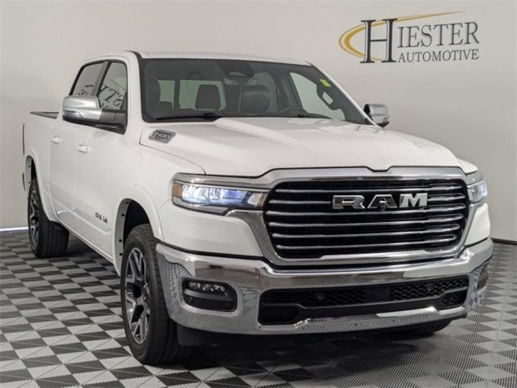 ONE OWNER ACCIDENT FREE CARFAX, BALANCE OF FACTORY WARRANTY, 4WD/AWD, FAST AND EASY FINANCING, ***SAVE MORE WHEN YOU TRADE WITH HIESTER CHEVROLET OF LILLINGTON!***, GPS Navigation, Navigation System, Quick Order Package 21H Laramie, 10 Speakers, 3 Rear Seat Head Restraints, 3.55 Rear Axle Ratio, 4 Way Front Headrests, 4-Wheel Disc Brakes, 4G LTE Wi-Fi Hot Spot, ABS brakes, Air Conditioning, Alloy wheels, AM/FM radio: SiriusXM with 360L, Apple CarPlay, Apple CarPlay/Android Auto, Audio memory, Auto High-beam Headlights, Auto Power-Folding Mirrors, Auto-dimming door mirrors, Auto-Dimming Exterior Driver Mirror, Auto-dimming Rear-View mirror, Automatic temperature control, Brake assist, Bumpers: chrome, Chrome Exterior Mirrors, Compass, Connected Travel & Traffic Services, Connectivity - US/Canada, Convex Wide-Angle Exterior Mirror Insert, Delay-off headlights, Driver door bin, Driver Seat Memory, Driver vanity mirror, Dual front impact airbags, Dual front side impact airbags, Electronic Stability Control, Exterior Mirrors Courtesy Lamps, Exterior Mirrors w/Heating Element, Exterior Mirrors w/Memory, Exterior Mirrors w/Supplemental Signals, Front anti-roll bar, Front Center Armrest w/Storage, Front dual zone A/C, Front fog lights, Front License Plate Bracket, Front reading lights, Front Seat Back Map Pockets, Front wheel independent suspension, Fully automatic headlights, Garage door transmitter, Google Android Auto, GPS Antenna Input, HD Radio, Heated door mirrors, Heated Front Seats, Heated front seats, Heated rear seats, Heated Steering Wheel, Heated steering wheel, Illuminated entry, Integrated Voice Command w/Bluetooth®, Leather steering wheel, Leather Trim 40/20/40 Bench Seat, Low tire pressure warning, Manufacturer's Statement of Origin, Memory seat, Occupant sensing airbag, Outside temperature display, Overhead airbag, Overhead console, Panic alarm, ParkView Rear Back-Up Camera, Passenger door bin, Passenger vanity mirror, Power 2-Way Driver Lumbar Adjust, Power 2-Way Passenger Lumbar Adjust, Power Adjust 8-Way Front Passenger Seat, Power door mirrors, Power driver seat, Power passenger seat, Power steering, Power windows, Radio data system, Radio: Uconnect 5 Nav w/12.0 Display, RAM Grille Badge - Chrome, Rear anti-roll bar, Rear reading lights, Rear seat center armrest, Rear step bumper, Remote keyless entry, Security system, SiriusXM w/360L, Speed control, Split folding rear seat, Steering wheel mounted audio controls, Tachometer, Telescoping steering wheel, Tilt steering wheel, Traction control, Trip computer, Turn signal indicator mirrors, USB Host Flip, Variably intermittent wipers, Ventilated Front Seats, Ventilated front seats, Voltmeter, Wheels: 20 x 9 Premium Paint/Polish, GPS Navigation, Navigation System, Quick Order Package 21H Laramie. Bright White Clearcoat 2025 Ram 1500 Laramie 4WD 8-Speed Automatic 3.0L I6 Priced below KBB Fair Purchase Price! 17/24 City/Highway MPG