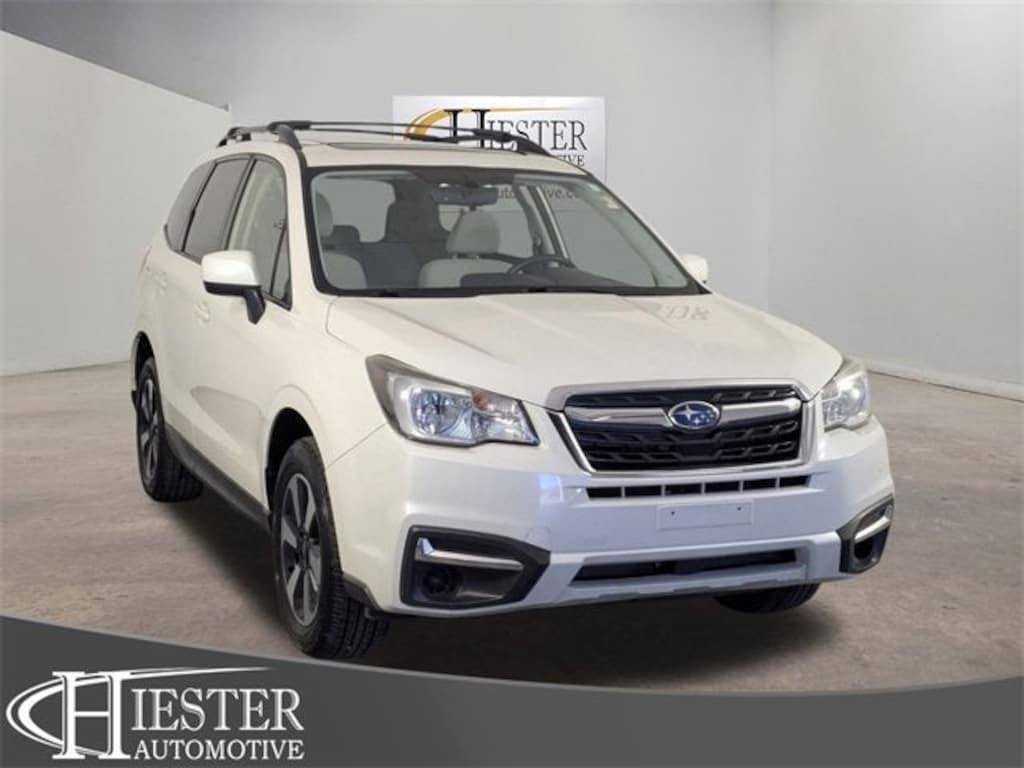 Crystal White Pearl 2018 Subaru Forester 2.5i Premium AWD Lineartronic CVT 2.5L 4-Cylinder DOHC 16V VVTACCIDENT FREE CARFAX, 4WD/AWD, POWER SUNROOF/MOONROOF, REAR BACKUP CAMERA, Bluetooth® HANDS FREE, PASSED OUR RIGOROUS SERVICE INSPECTION, FAST AND EASY FINANCING, ***SAVE MORE WHEN YOU TRADE WITH HIESTER CHEVROLET!***, 3.70 Axle Ratio, 4-Wheel Disc Brakes, 6 Speakers, ABS brakes, Air Conditioning, All-Weather Floor Mats, Alloy wheels, AM/FM radio: SiriusXM, Automatic temperature control, Brake assist, Bumpers: body-color, Cargo Cover - Manual Rear Gate, Cargo Tray, CD player, Driver door bin, Driver vanity mirror, Dual front impact airbags, Dual front side impact airbags, Electronic Stability Control, Emergency communication system: STARLINK, Exterior Parking Camera Rear, Four wheel independent suspension, Front anti-roll bar, Front Bucket Seats, Front Center Armrest, Front reading lights, Illuminated entry, Knee airbag, Low tire pressure warning, Occupant sensing airbag, Outside temperature display, Overhead airbag, Overhead console, Panic alarm, Passenger door bin, Passenger vanity mirror, Power door mirrors, Power driver seat, Power moonroof, Power steering, Power windows, Radio data system, Radio: Subaru Starlink 7.0 Multimedia Plus System, Rear anti-roll bar, Rear seat center armrest, Rear window defroster, Rear window wiper, Remote keyless entry, Roof rack: rails only, Security system, Speed control, Split folding rear seat, Spoiler, Steering wheel mounted audio controls, Tachometer, Telescoping steering wheel, Tilt steering wheel, Traction control, Trip computer, Variably intermittent wipers.****Thank you for choosing John Hiester Chevrolet. Proudly serving Fuquay Varina, Holly Springs, Cary, Apex, Raleigh, Durham, Fayetteville, Sanford, Pinehurst, Southern Pines, Pittsboro, Lillington, Angier, Dunn, Erwin, Benson, and surrounding areas. The team is excited and dedicated to making sure every customer has an unparalleled buying experience. Elevate your driving experience today! Ask us about our pre-owned vehicles that come with our Dealership for Life benefits. With over 1000 exceptional vehicles to choose from and the ability to acquire every used make and model, we are confident you, your family and friends will be 100% satisfied with the service, selection, and deals. Many of our customers love the off-site test drives we offer and at home deliveries. ****Please call us at 919-346-6312*** and experience world class customer service. Get off your Kiester and come to Hiester! All pricing and details are believed to be accurate, but we do not warrant or guarantee such accuracy. Price excludes Tax, Title and $799 processing fee. See dealer for details.26/32 City/Highway MPGAwards:* 2018 KBB.com 10 Best SUVs Under $25,000 * 2018 KBB.com 10 Best All-Wheel-Drive Vehicles Under $25,000 * 2018 KBB.com 10 Most Awarded Brands * 2018 KBB.com Brand Image Awards